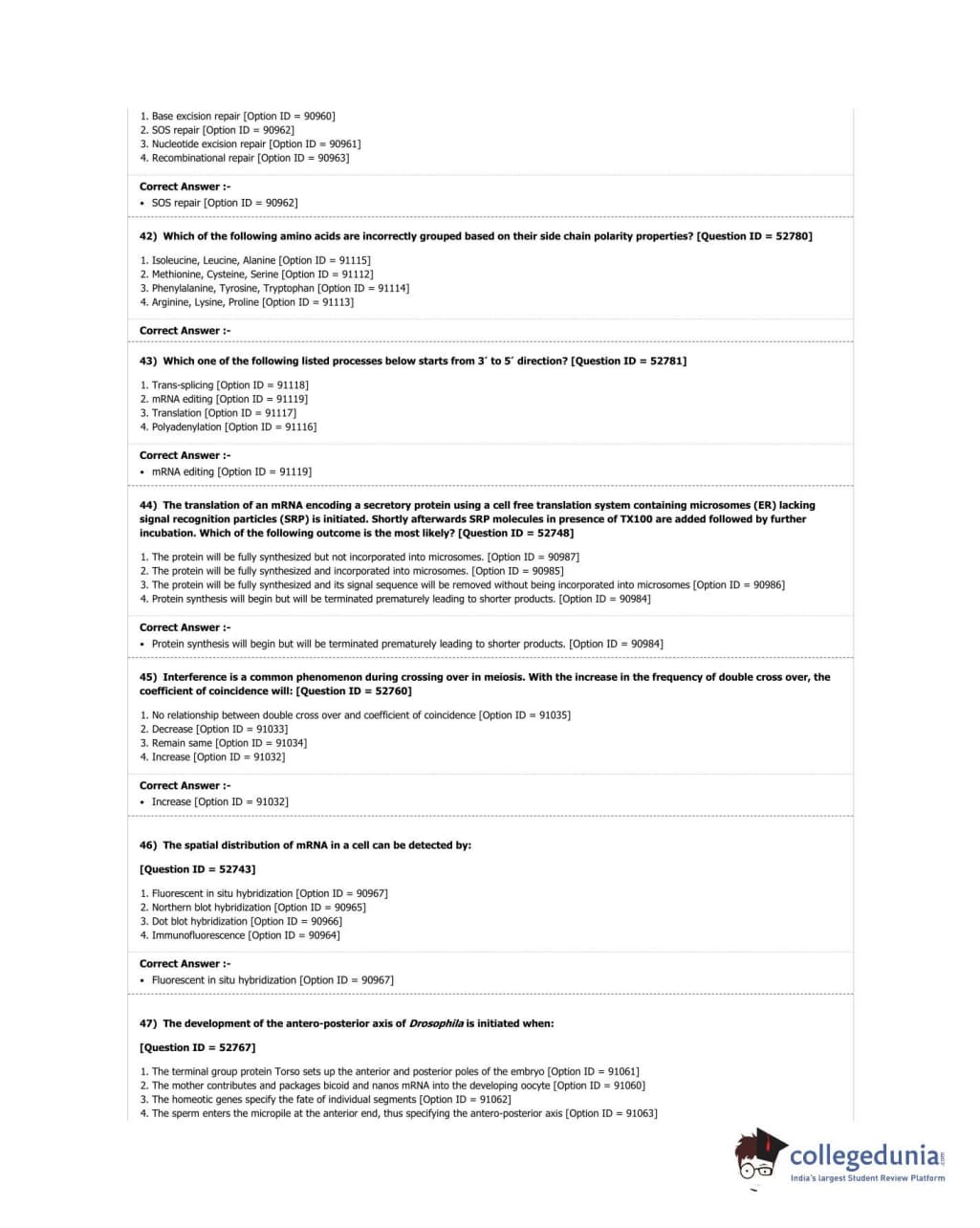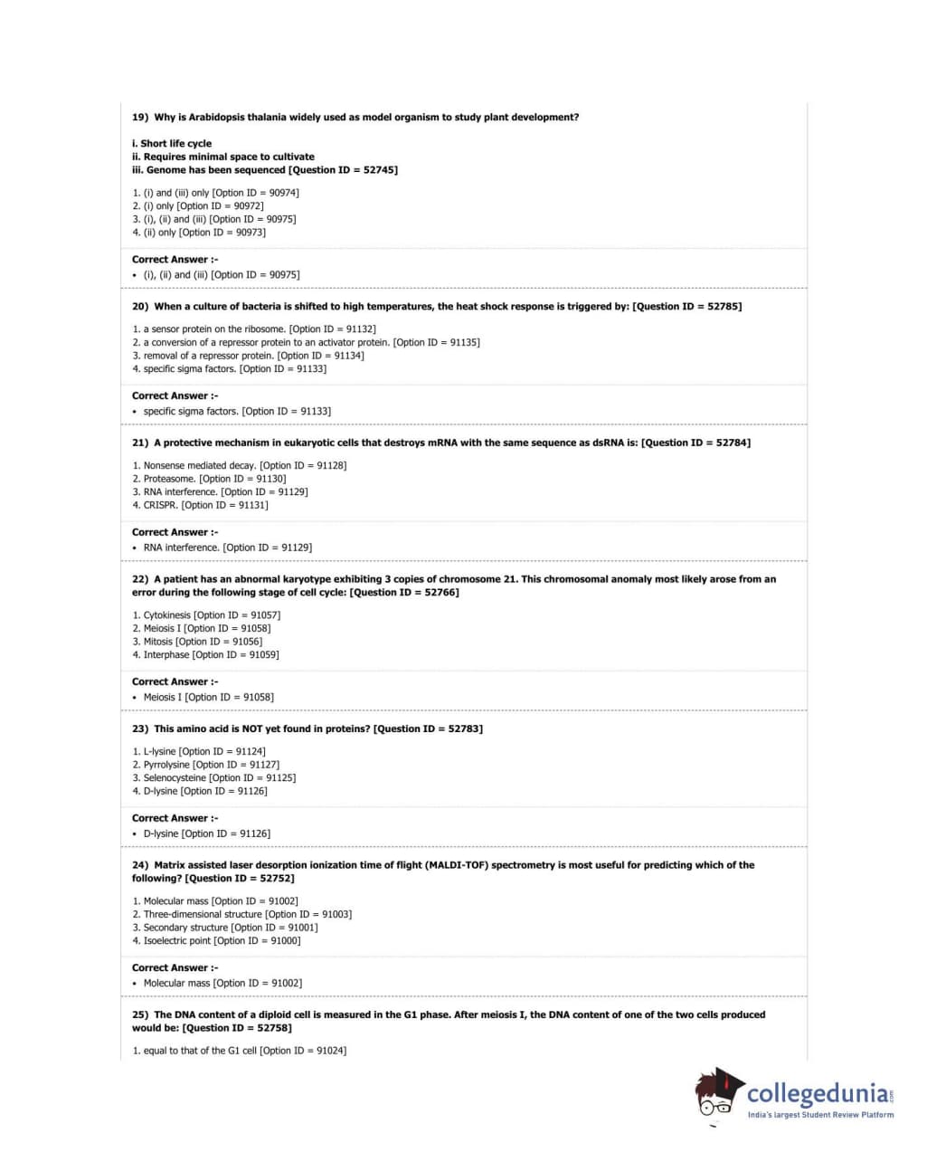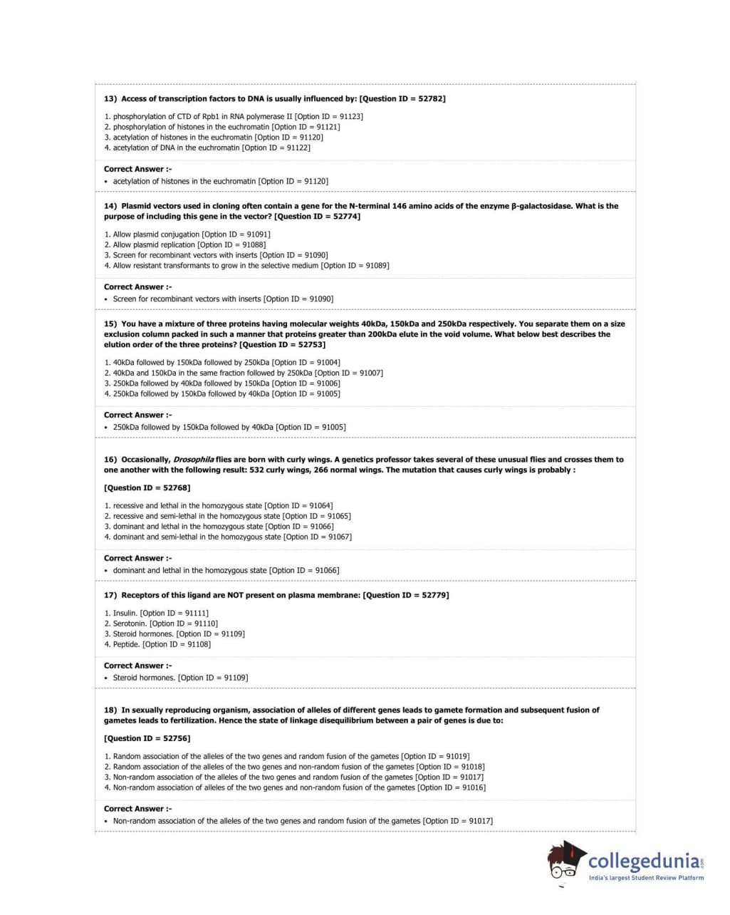 DUET 2018 M.Phil./Ph.D. in Genetics Question Paper with Answer Key PDF Shift 3