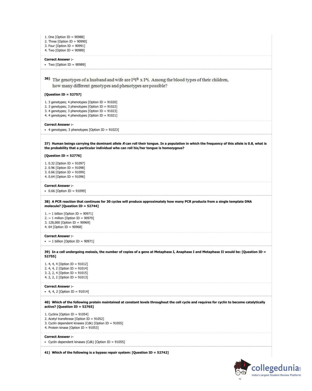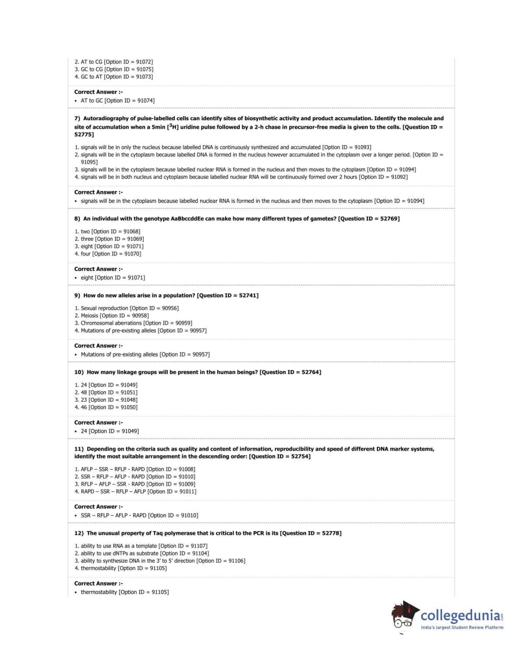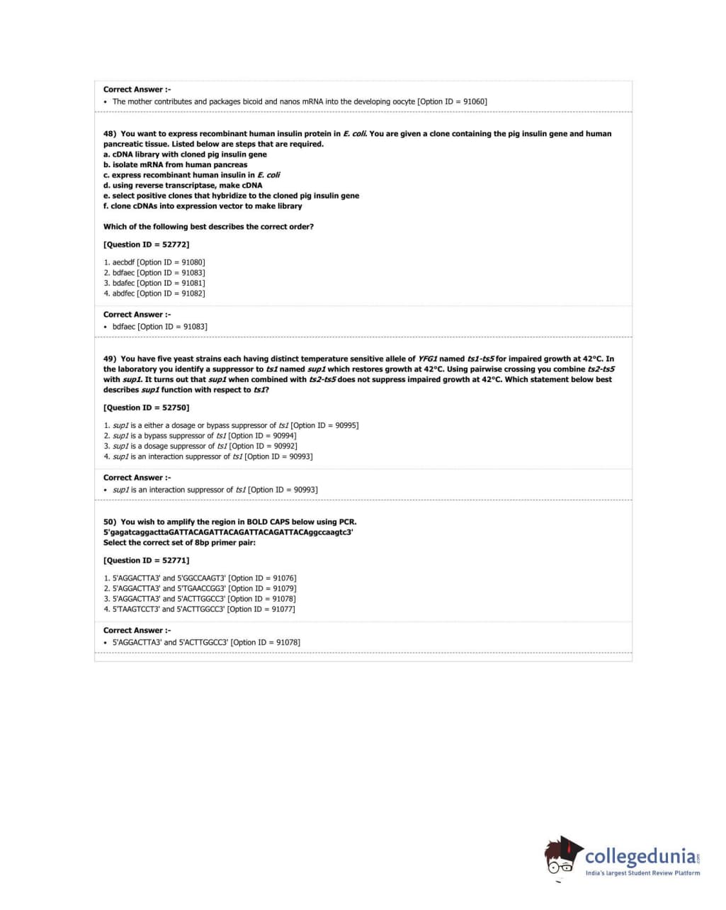 DUET 2018 M.Phil./Ph.D. in Genetics Question Paper with Answer Key PDF Shift 3