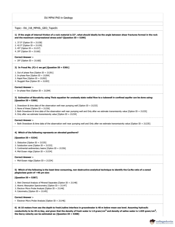 DUET 2018 M.Phil./Ph.D. in Geology Question paper with answer key pdf conducted on June 20, 2018 in Shift 1 is available for download. The exam was successfully organized by University of Delhi. The question paper comprised a total of 50 questions.