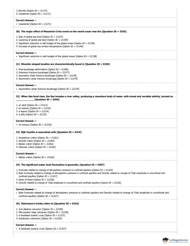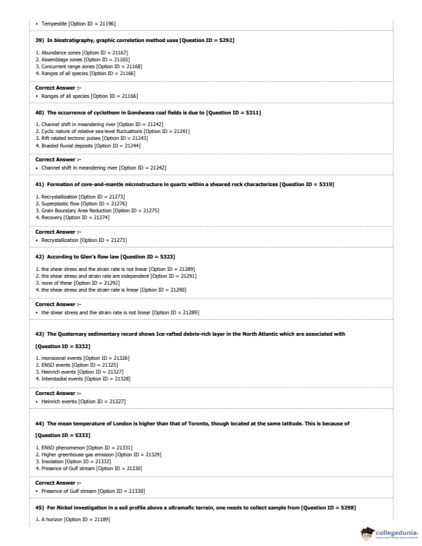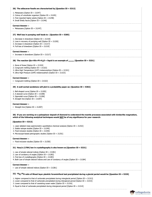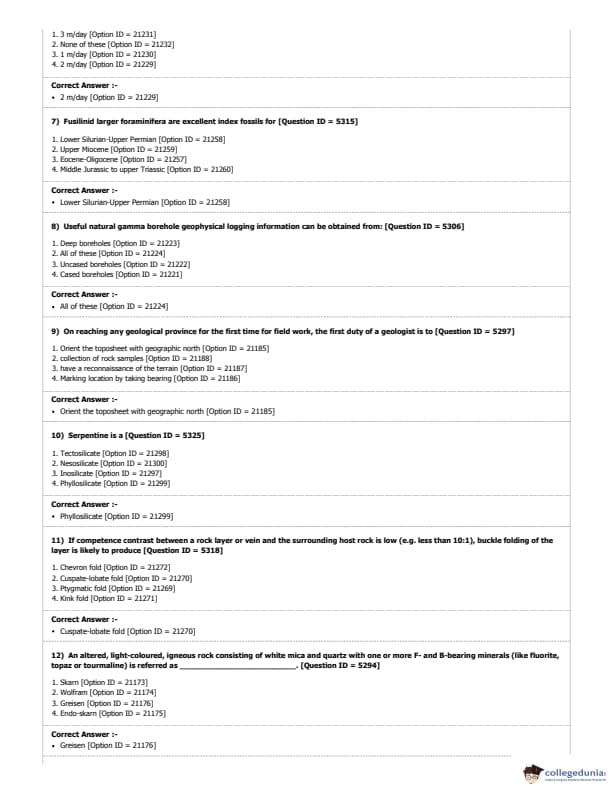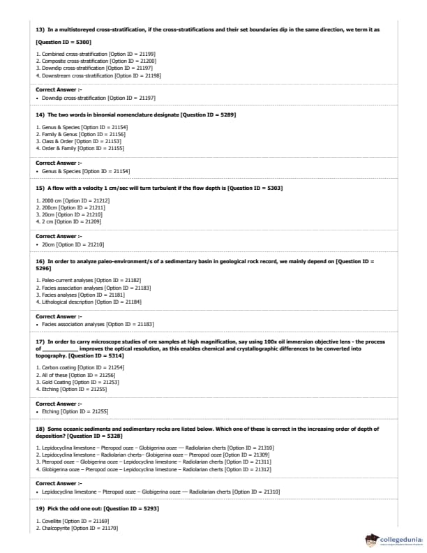 DUET 2018 M.Phil./Ph.D. in Geology Question Paper with Answer Key PDF Shift 1