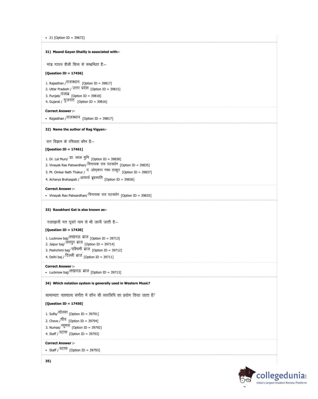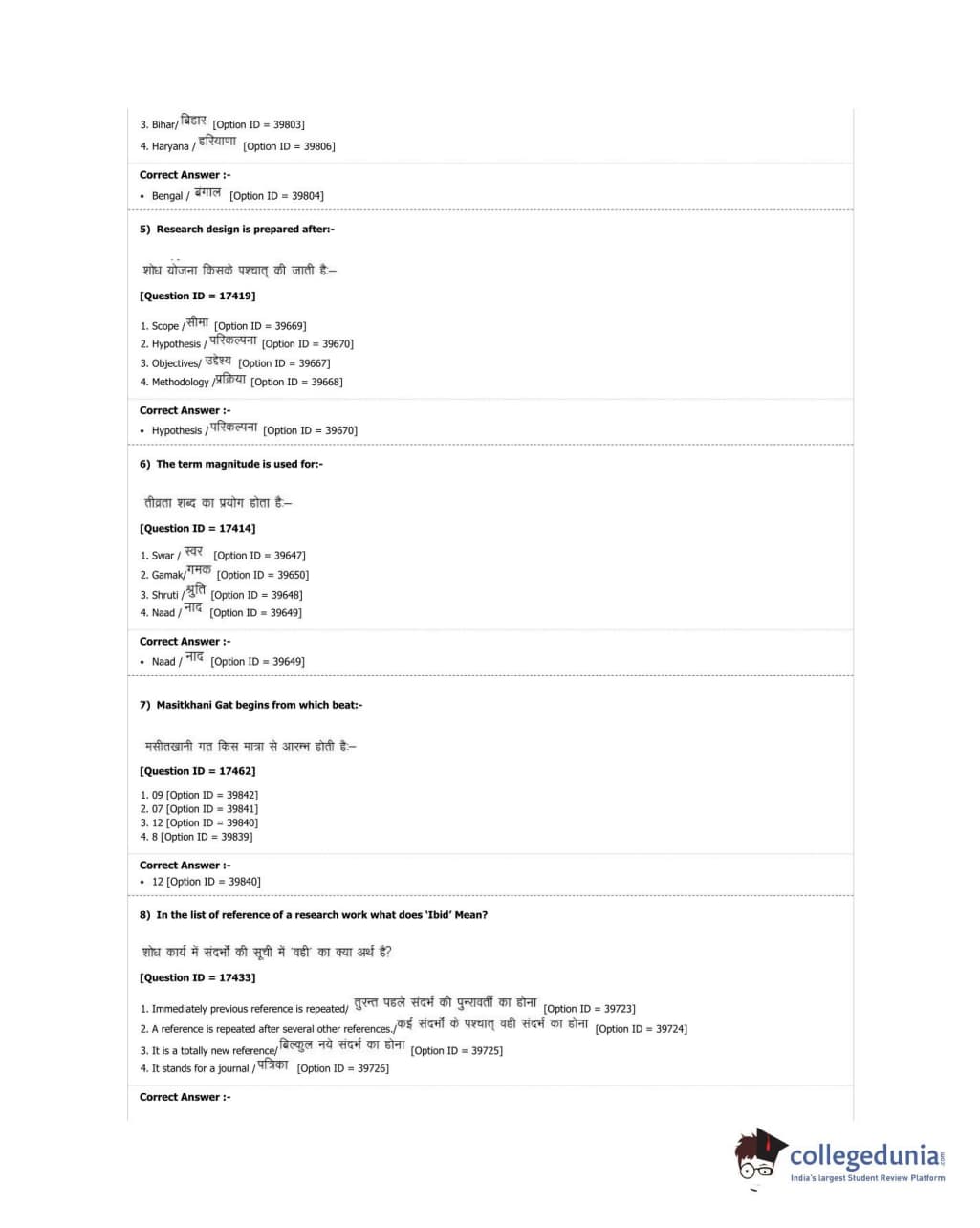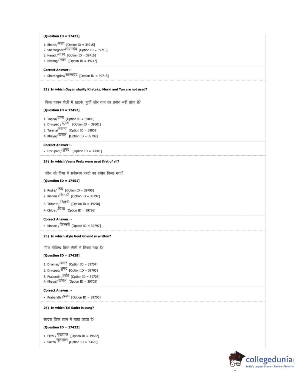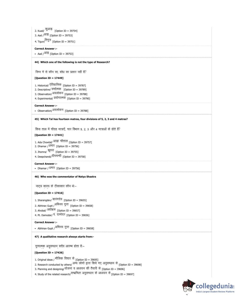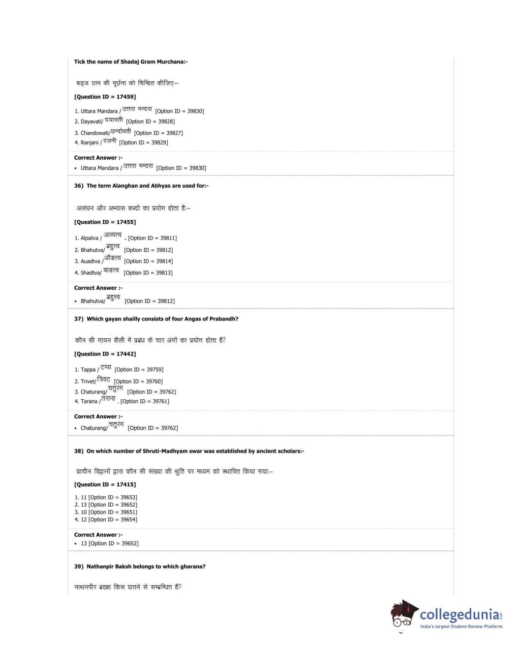 DUET 2018 M.Phil./Ph.D. in Hindustani Music Question Paper with Answer Key PDF Shift 1