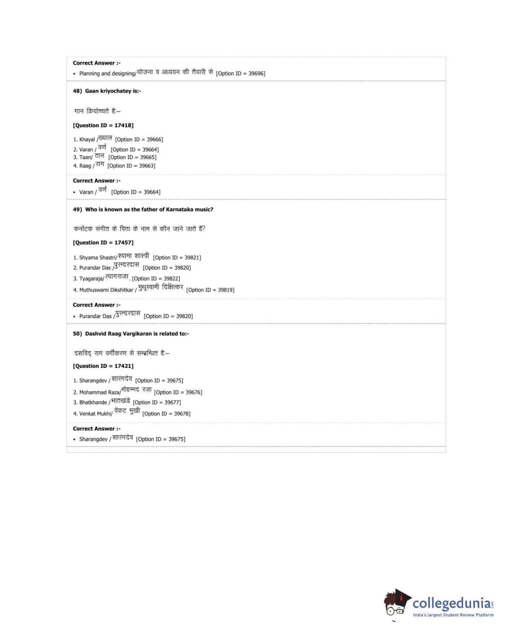 DUET 2018 M.Phil./Ph.D. in Hindustani Music Question paper with answer key pdf conducted on June 20, 2018 in Shift 1 is available for download. The exam was successfully organized by University of Delhi. The question paper comprised a total of 50 questions.