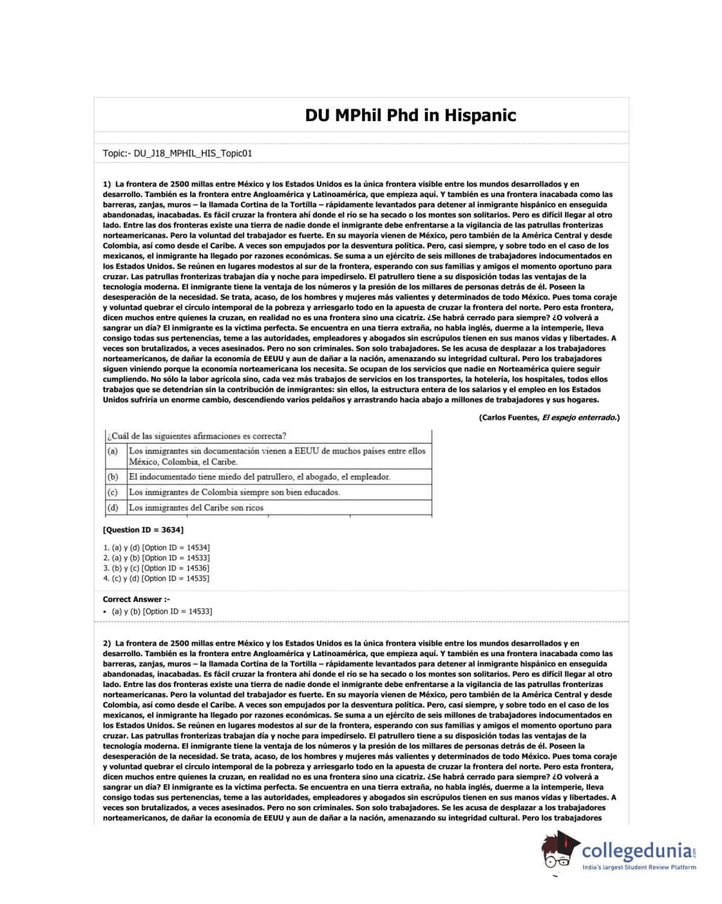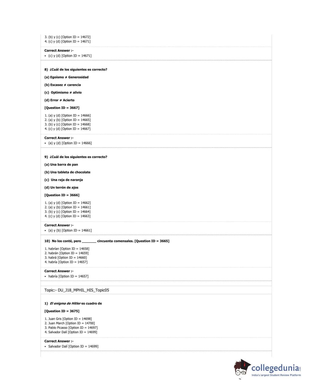 DUET 2018 M.Phil./Ph.D in Hispanic Question paper with answer key pdf conducted on June 17, 2018 in Shift 3 is available for download. The exam was successfully organized by University of Delhi. The question paper comprised a total of 50 questions.