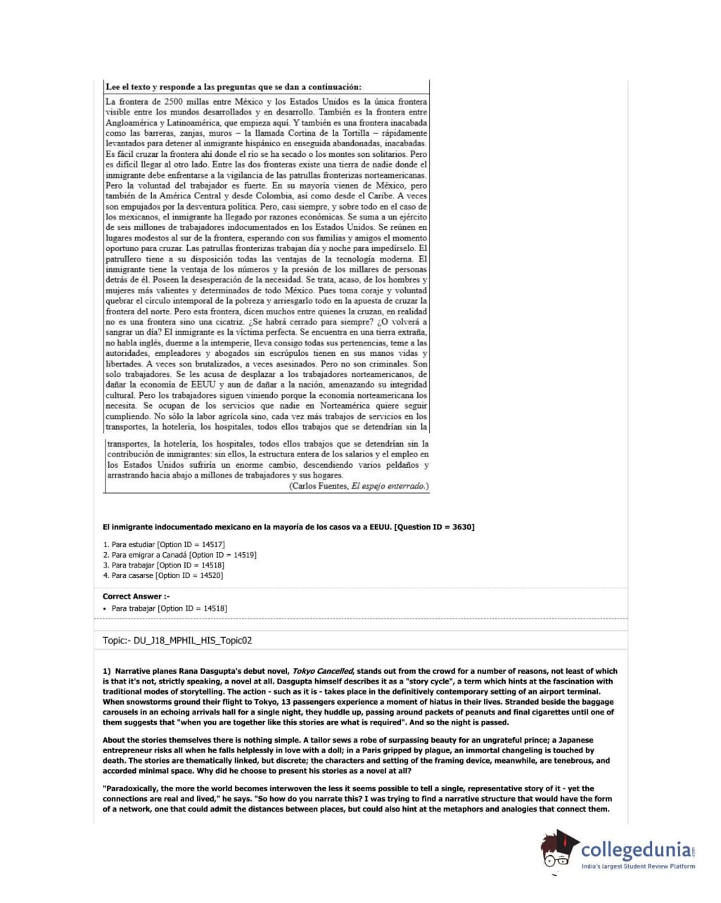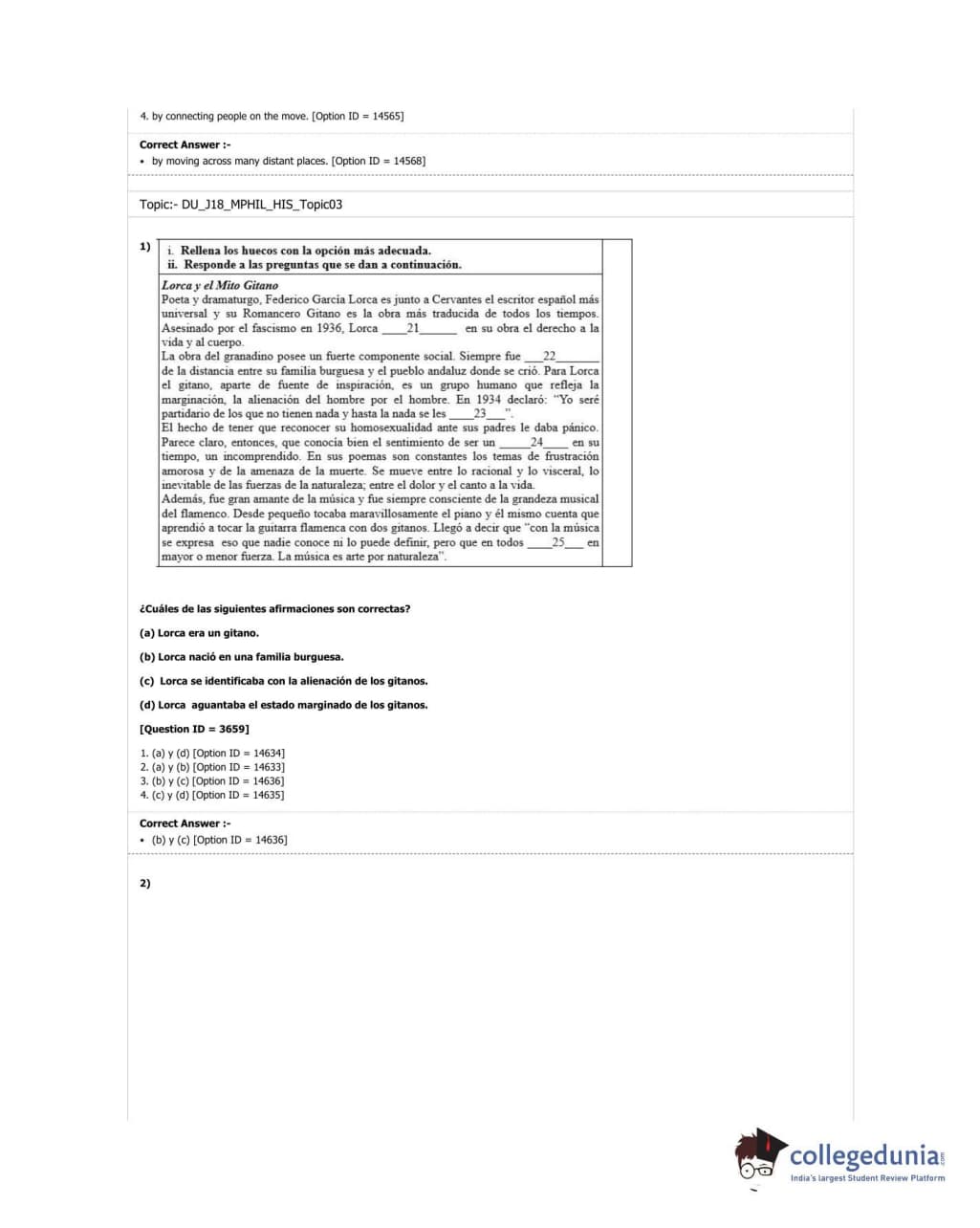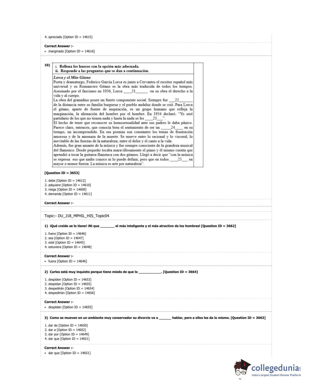 DUET 2018 M.Phil./Ph.D in Hispanic Question Paper with Answer Key PDF Shift 3