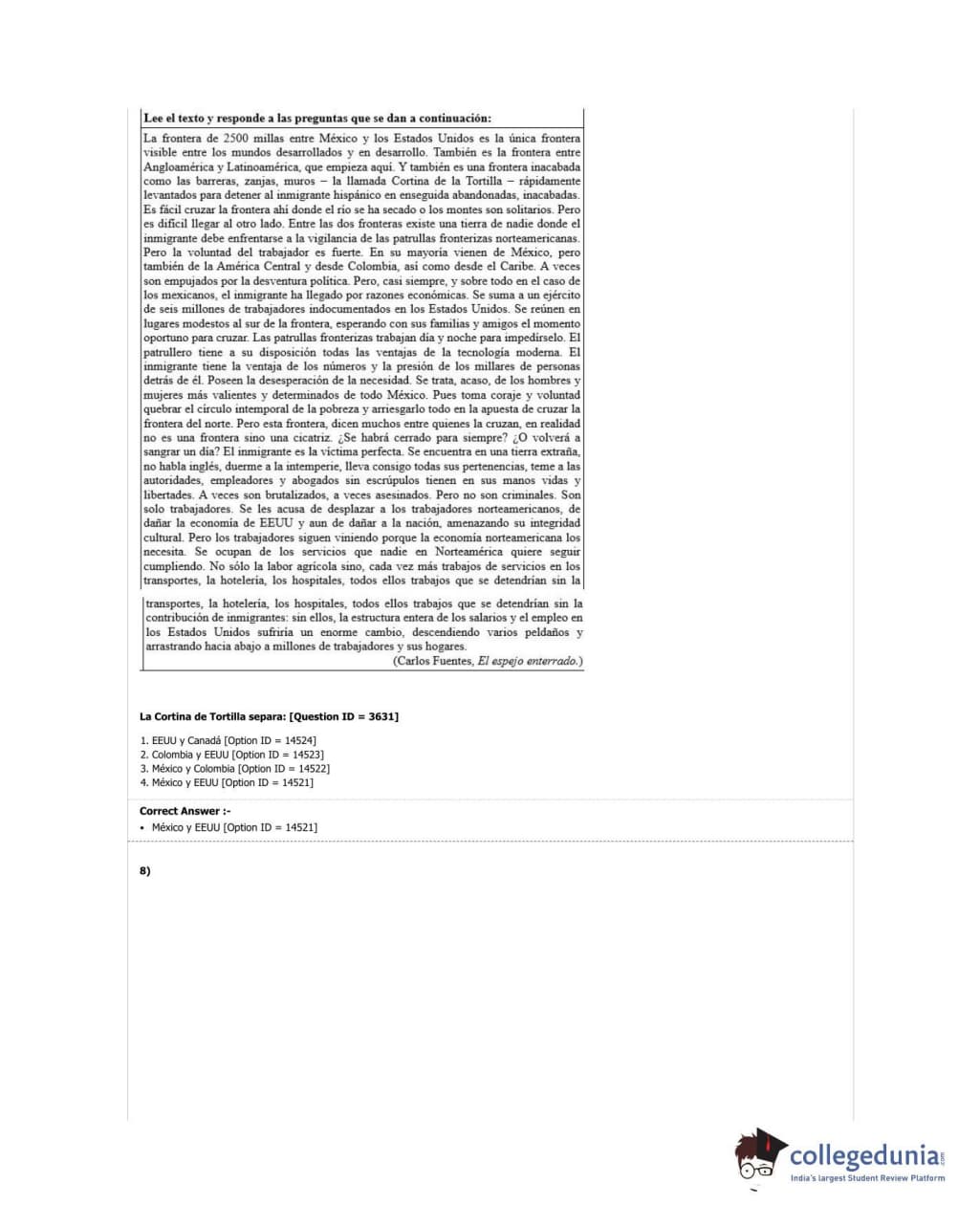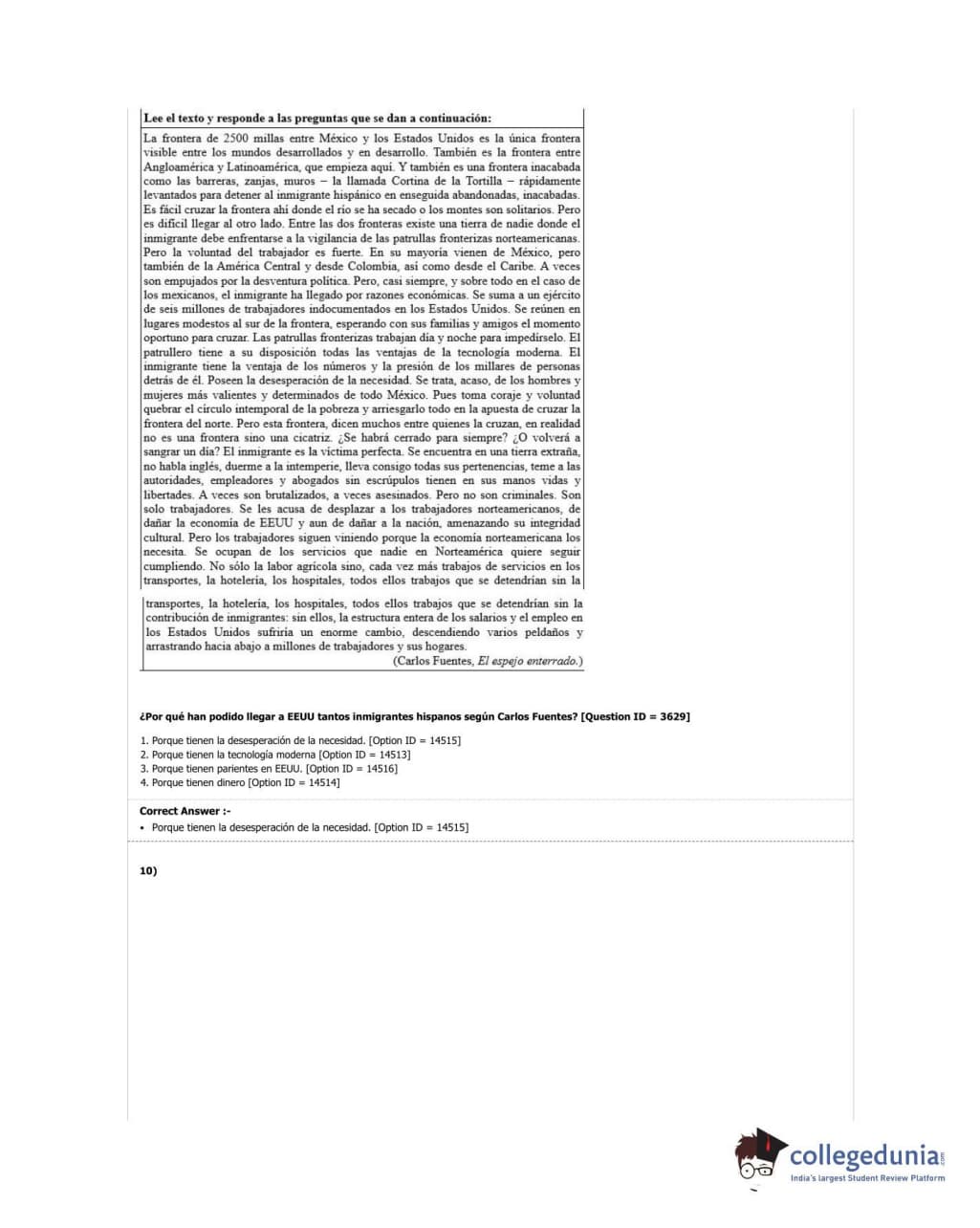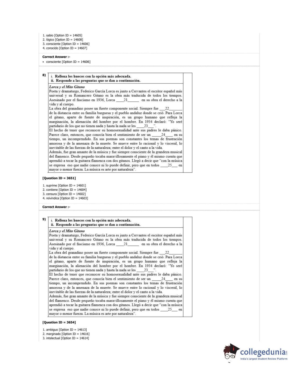 DUET 2018 M.Phil./Ph.D in Hispanic Question Paper with Answer Key PDF Shift 3