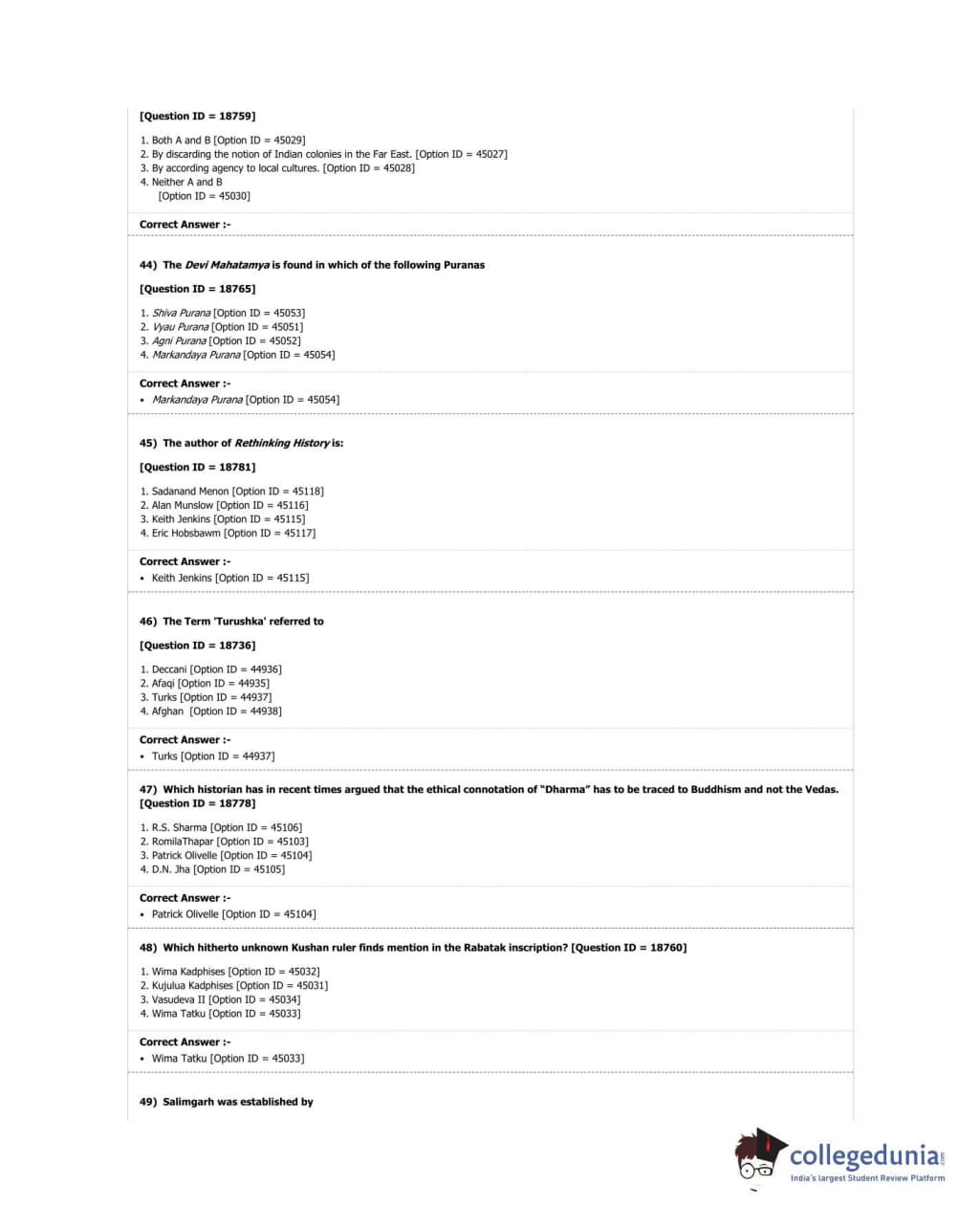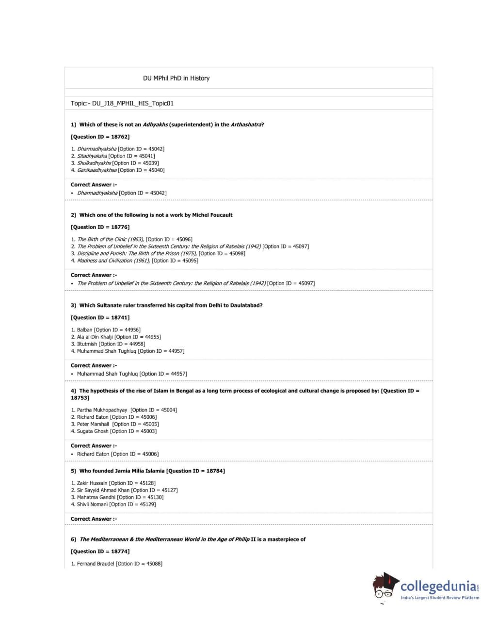 DUET 2018 M.Phil./Ph.D. in History Question paper with answer key pdf conducted on June 21, 2018 in Shift 2 is available for download. The exam was successfully organized by University of Delhi. The question paper comprised a total of 50 questions.