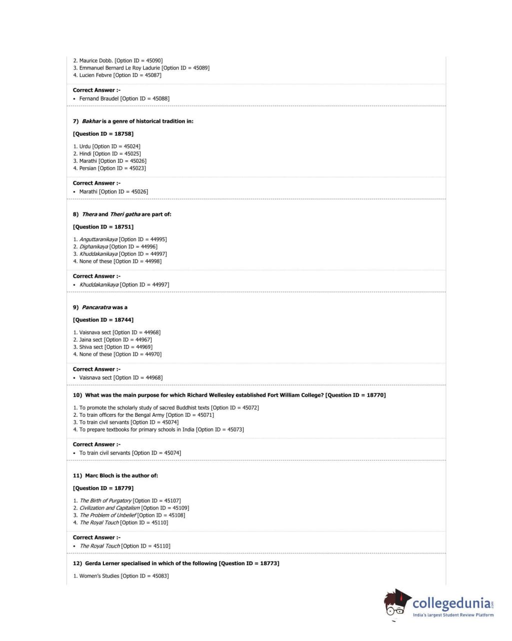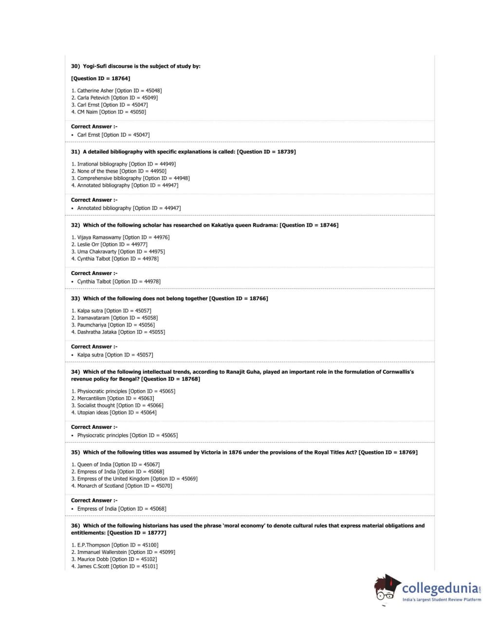 DUET 2018 M.Phil./Ph.D. in History Question Paper with Answer Key PDF Shift 2