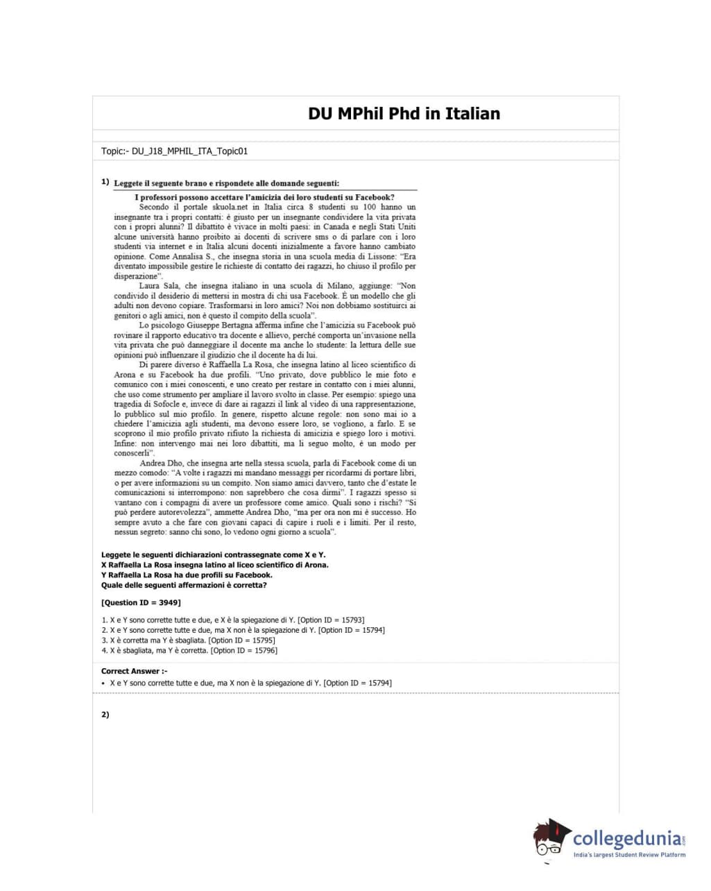 DUET 2018 M.Phil./Ph.D in Italian Question paper with answer key pdf conducted on June 17, 2018 in Shift 3 is available for download. The exam was successfully organized by University of Delhi. The question paper comprised a total of 50 questions.