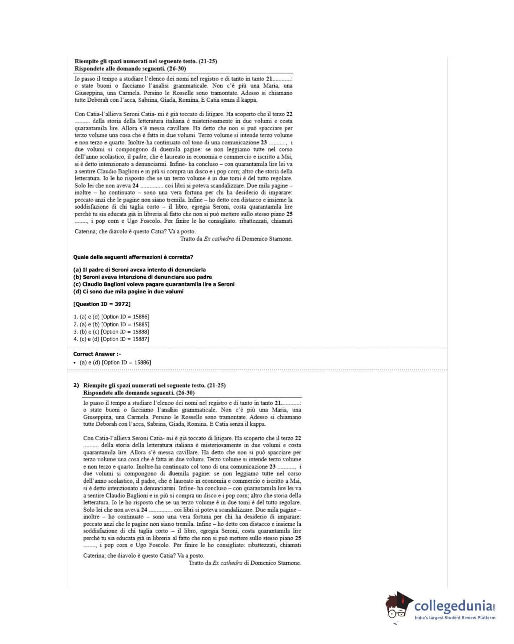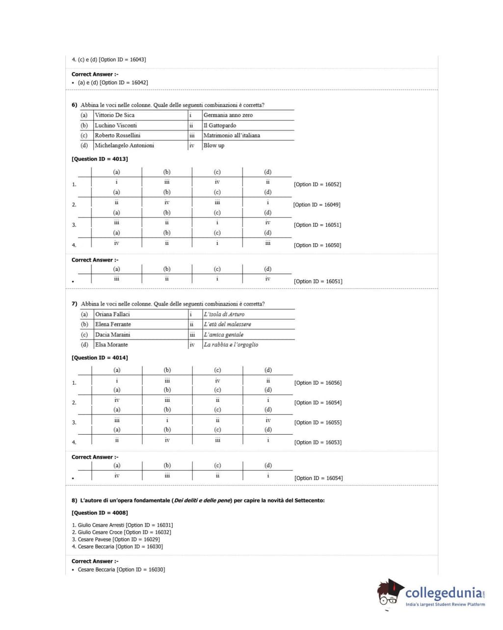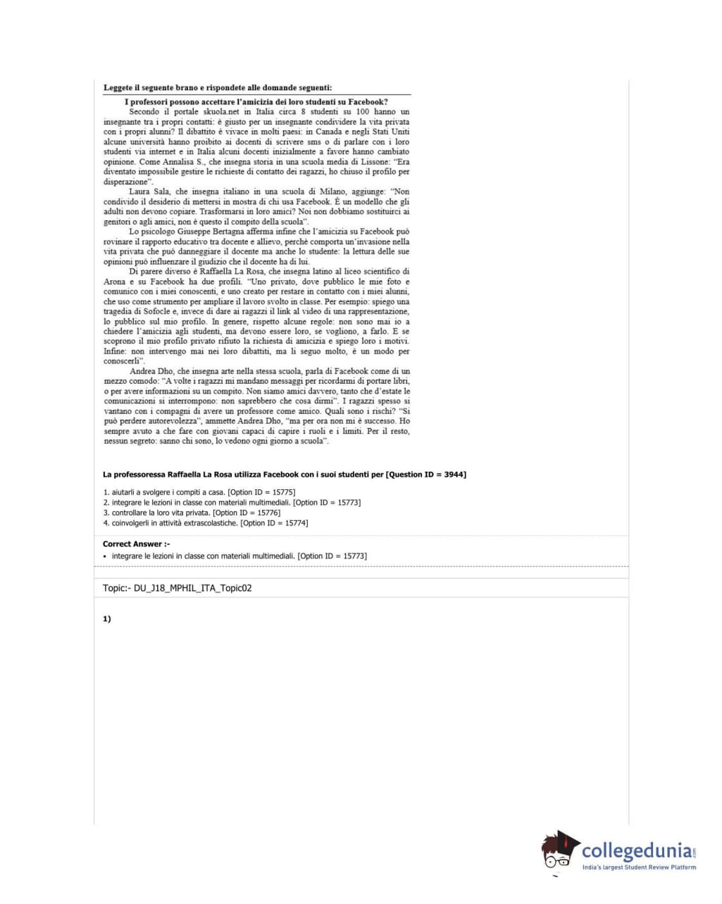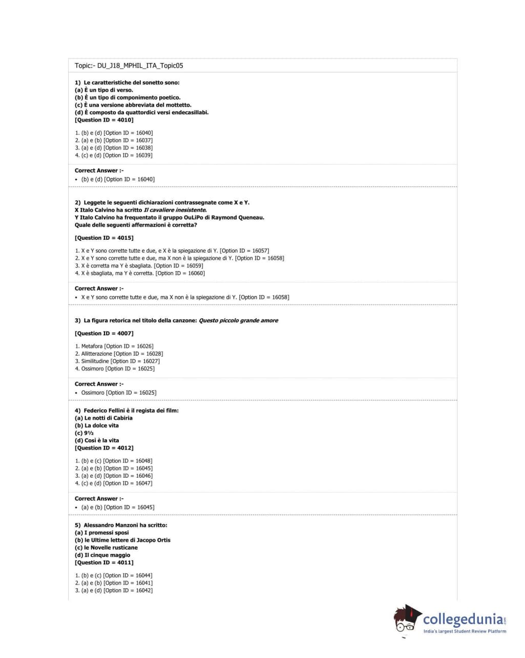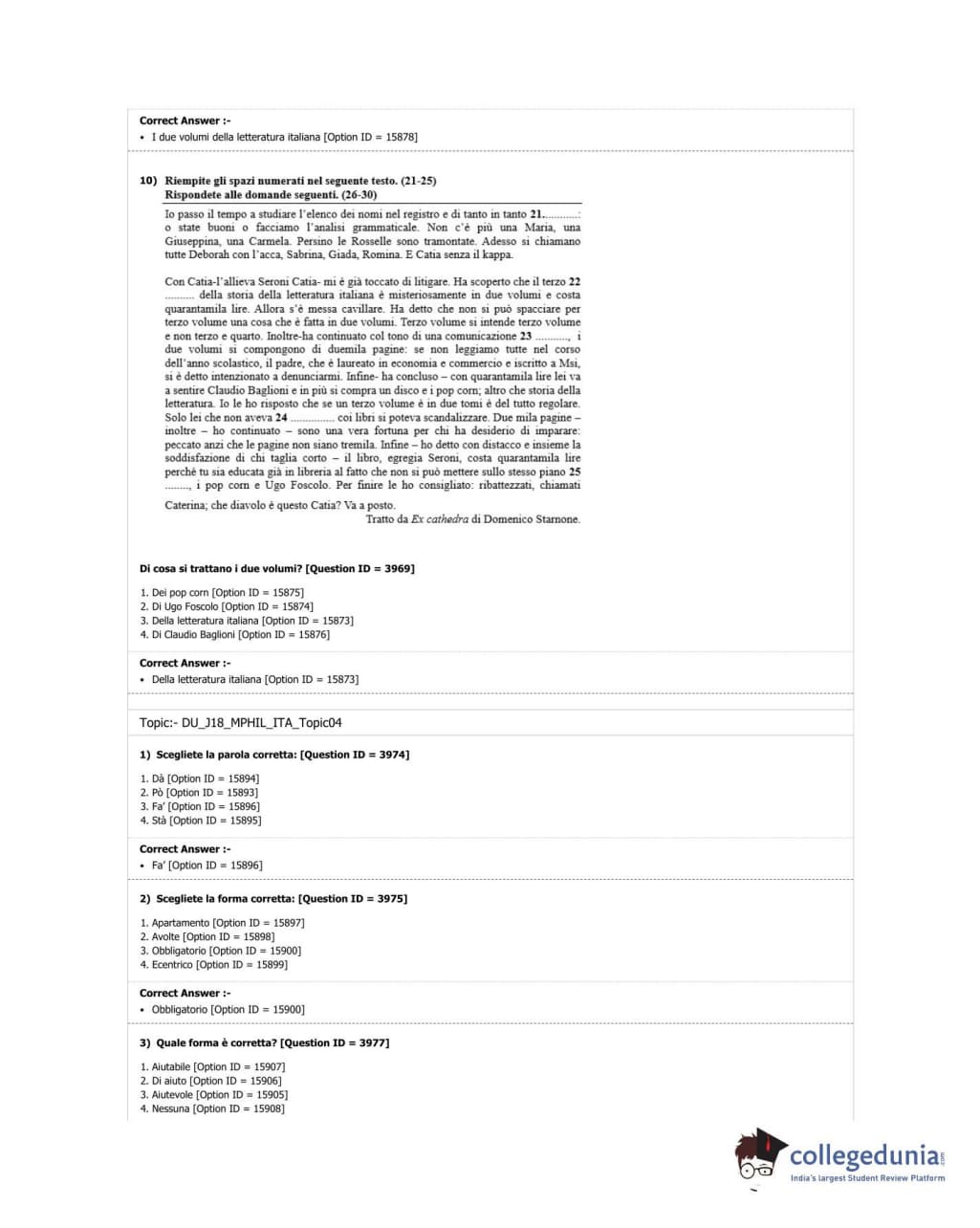 DUET 2018 M.Phil./Ph.D in Italian Question Paper with Answer Key PDF Shift 3