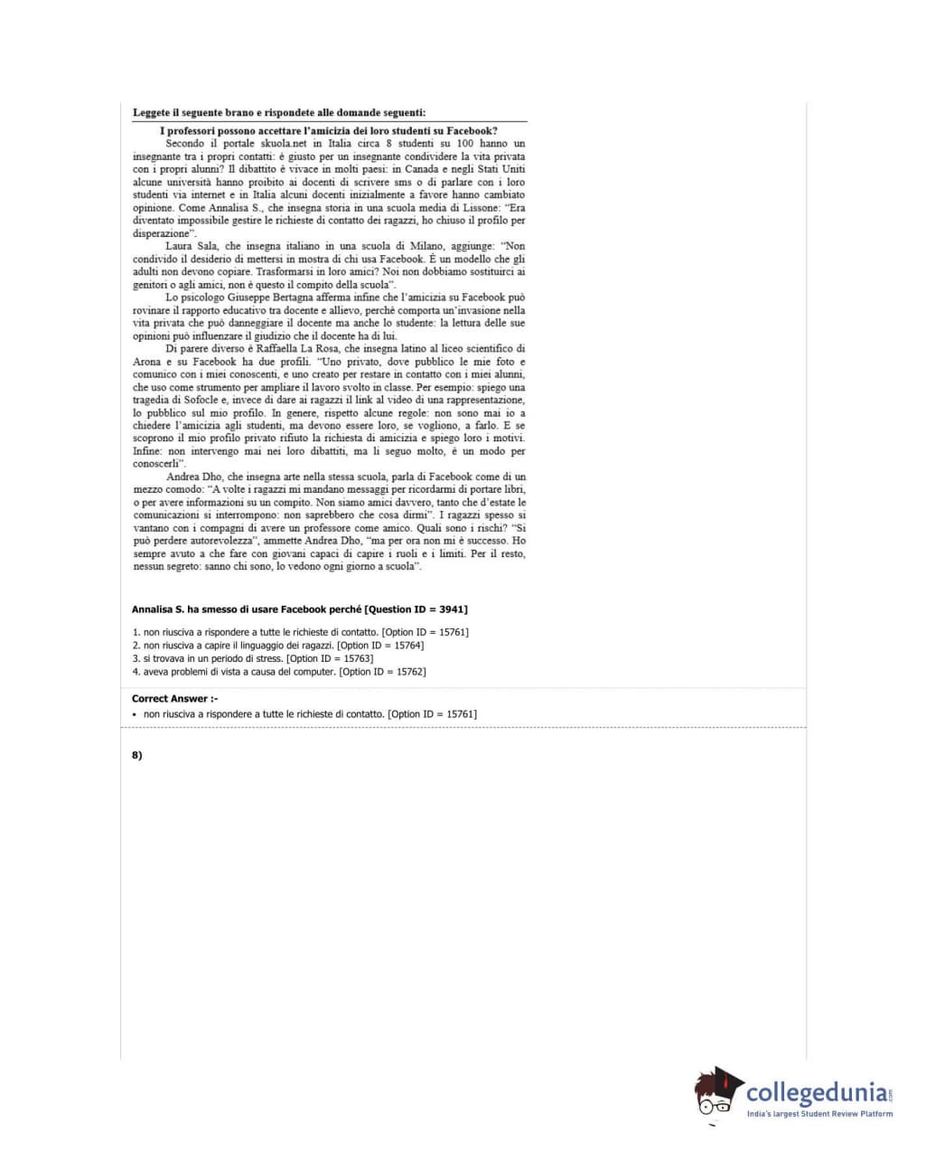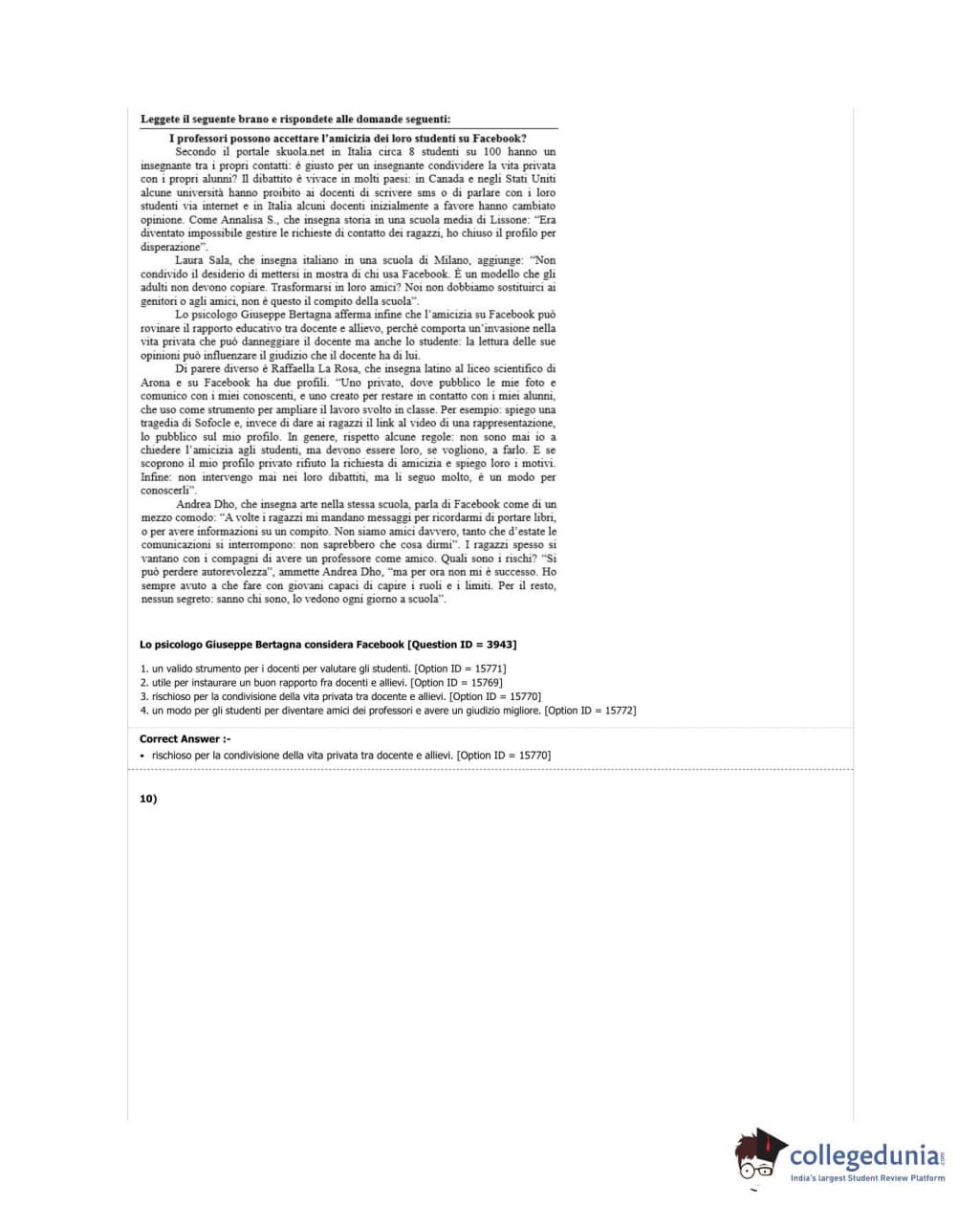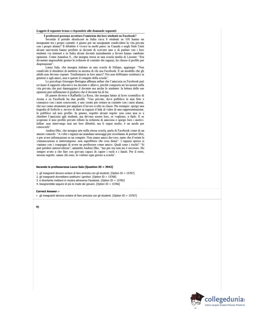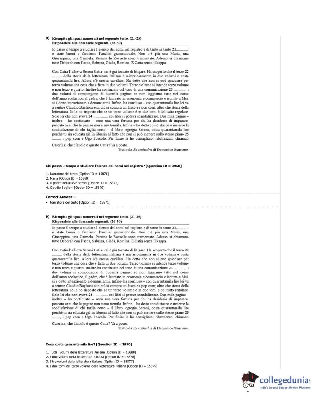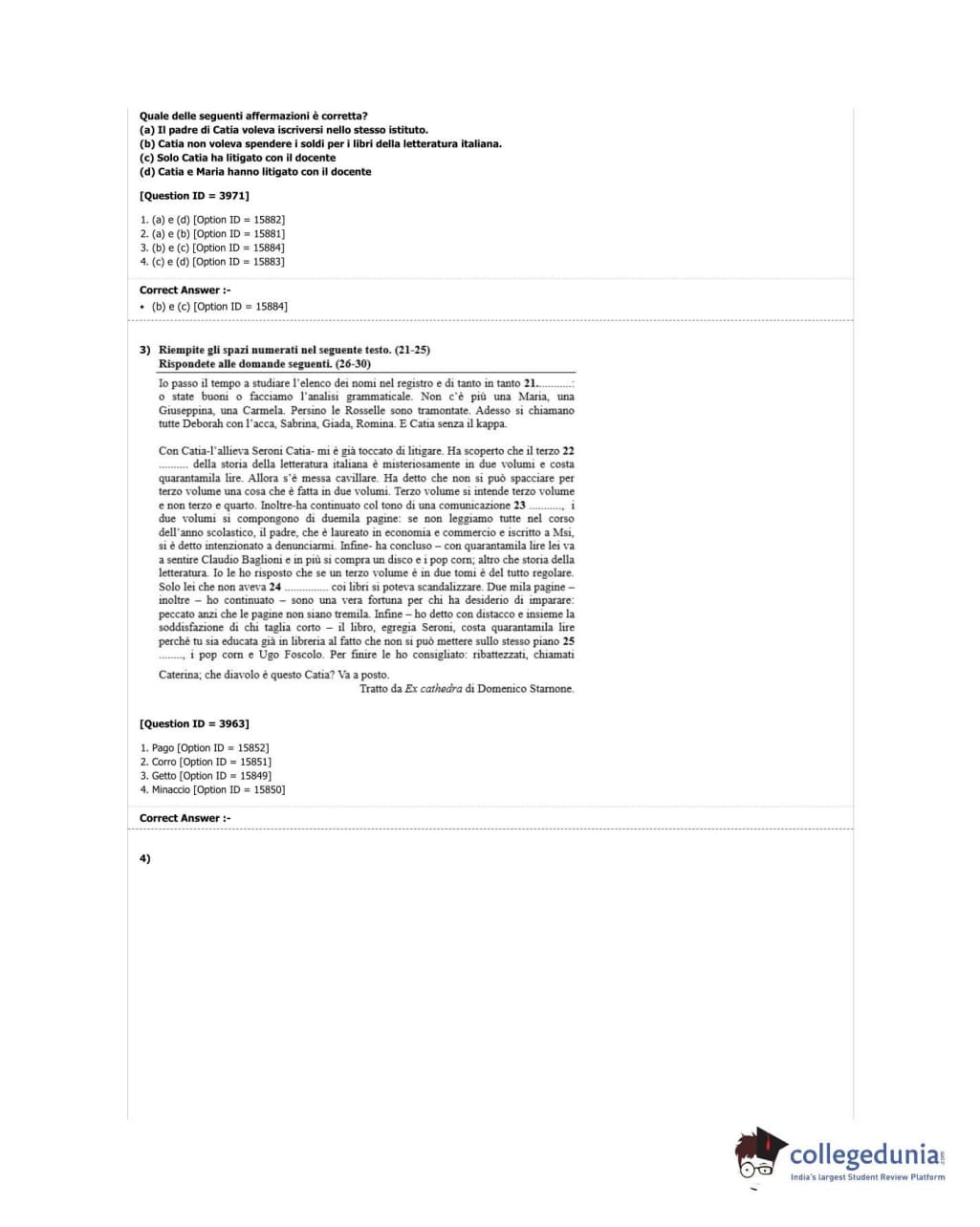 DUET 2018 M.Phil./Ph.D in Italian Question Paper with Answer Key PDF Shift 3