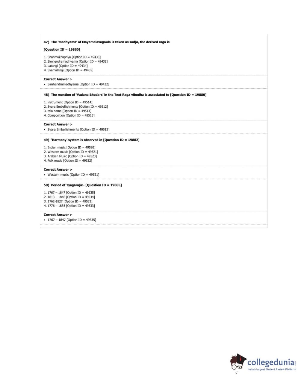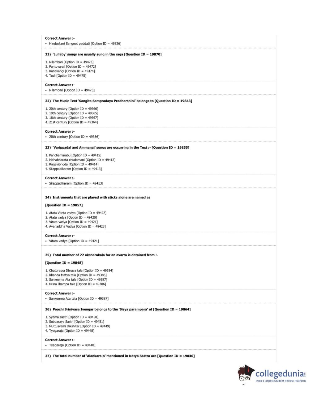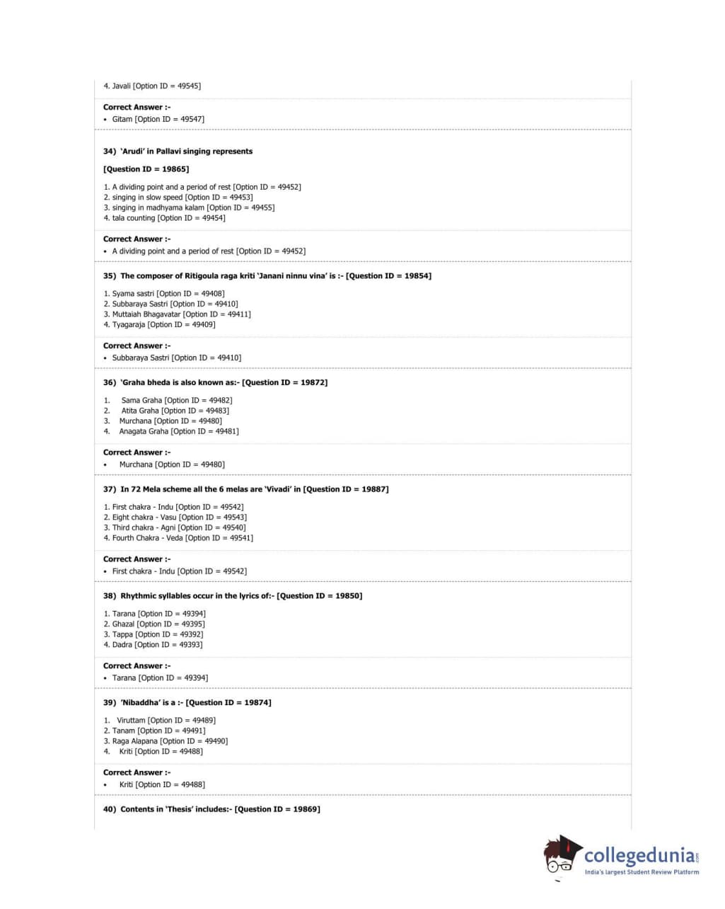 DUET 2018 M.Phil./Ph.D. in Karnatak Music Question Paper with Answer Key PDF Shift 3