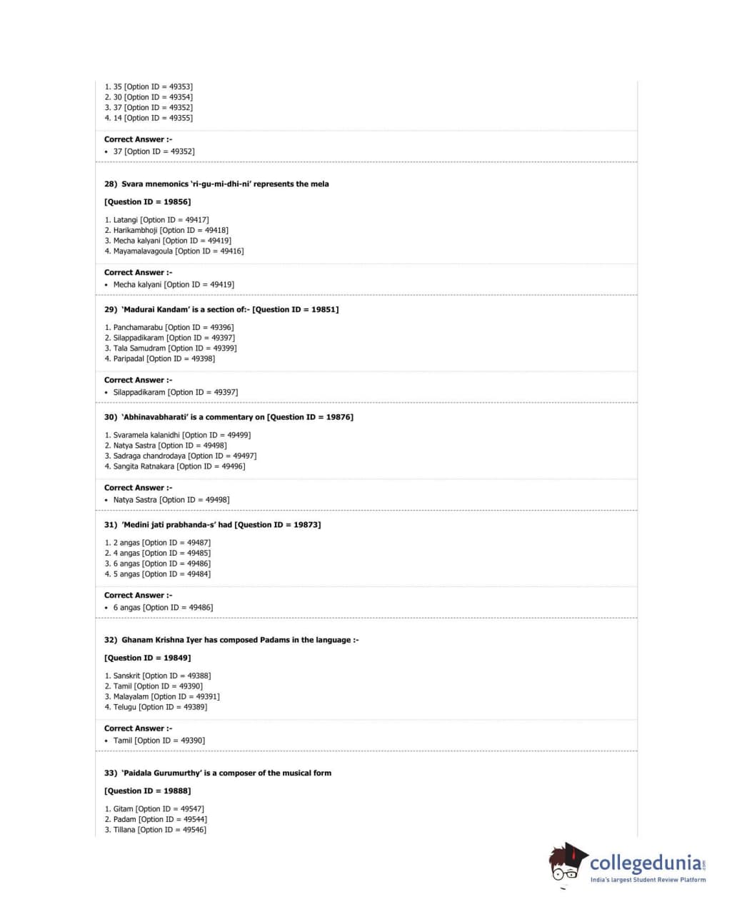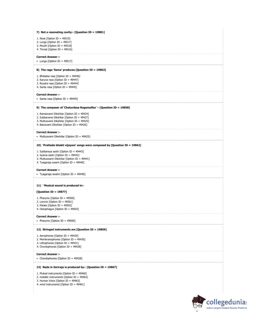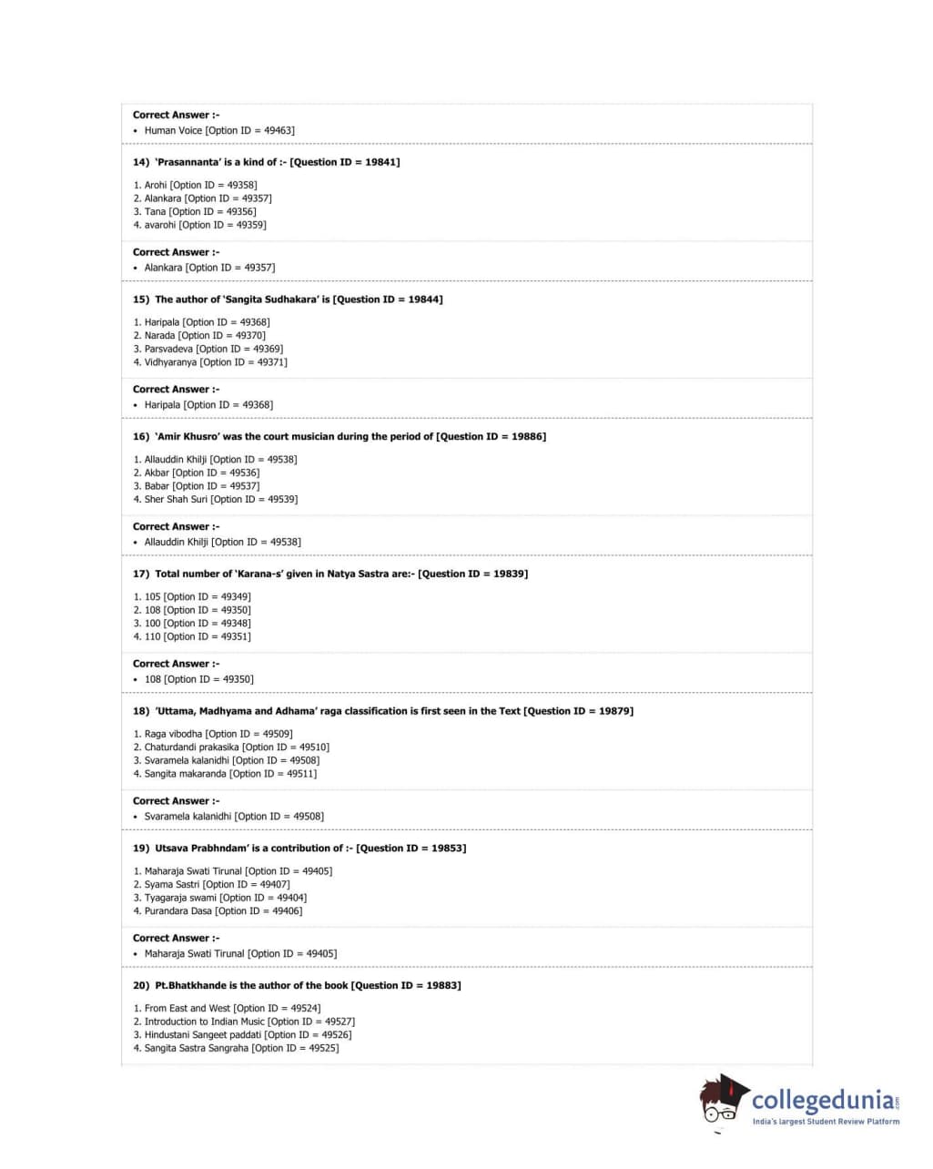 DUET 2018 M.Phil./Ph.D. in Karnatak Music Question Paper with Answer Key PDF Shift 3