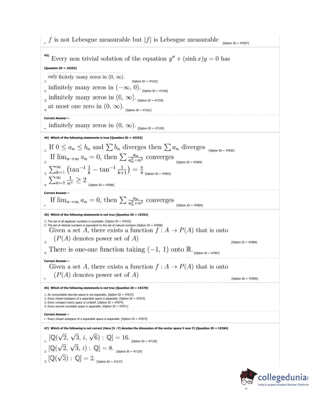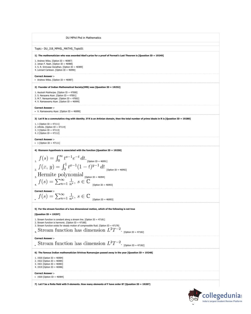 DUET 2018 M.Phil./Ph.D. in Mathematics Question paper with answer key pdf conducted on June 19, 2018 in Shift 3 is available for download. The exam was successfully organized by University of Delhi. The question paper comprised a total of 50 questions.