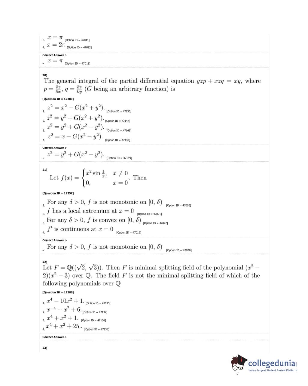 DUET 2018 M.Phil./Ph.D. in Mathematics Question Paper with Answer Key PDF Shift 3