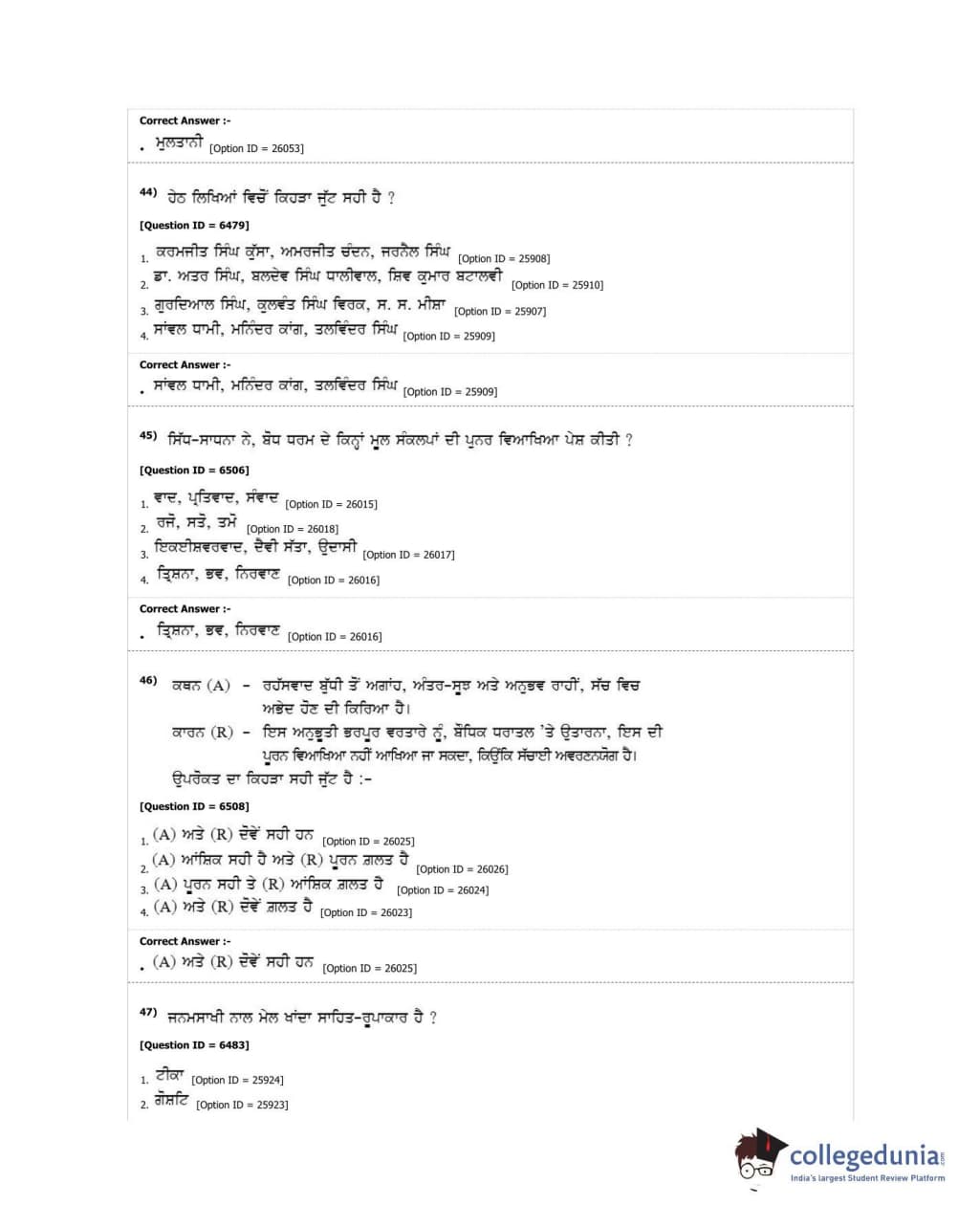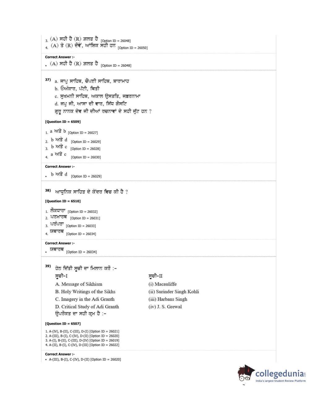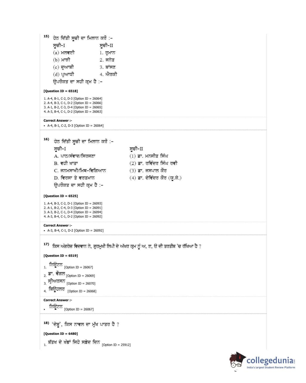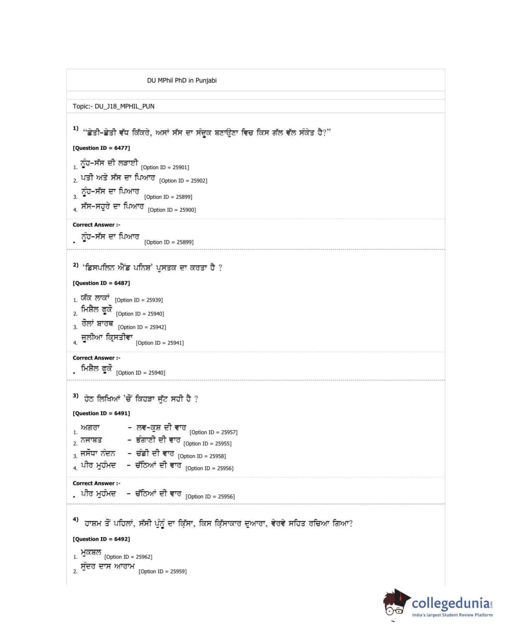 DUET 2018 M.Phil./Ph.D. in Punjabi Question Paper with Answer Key PDF Shift 1