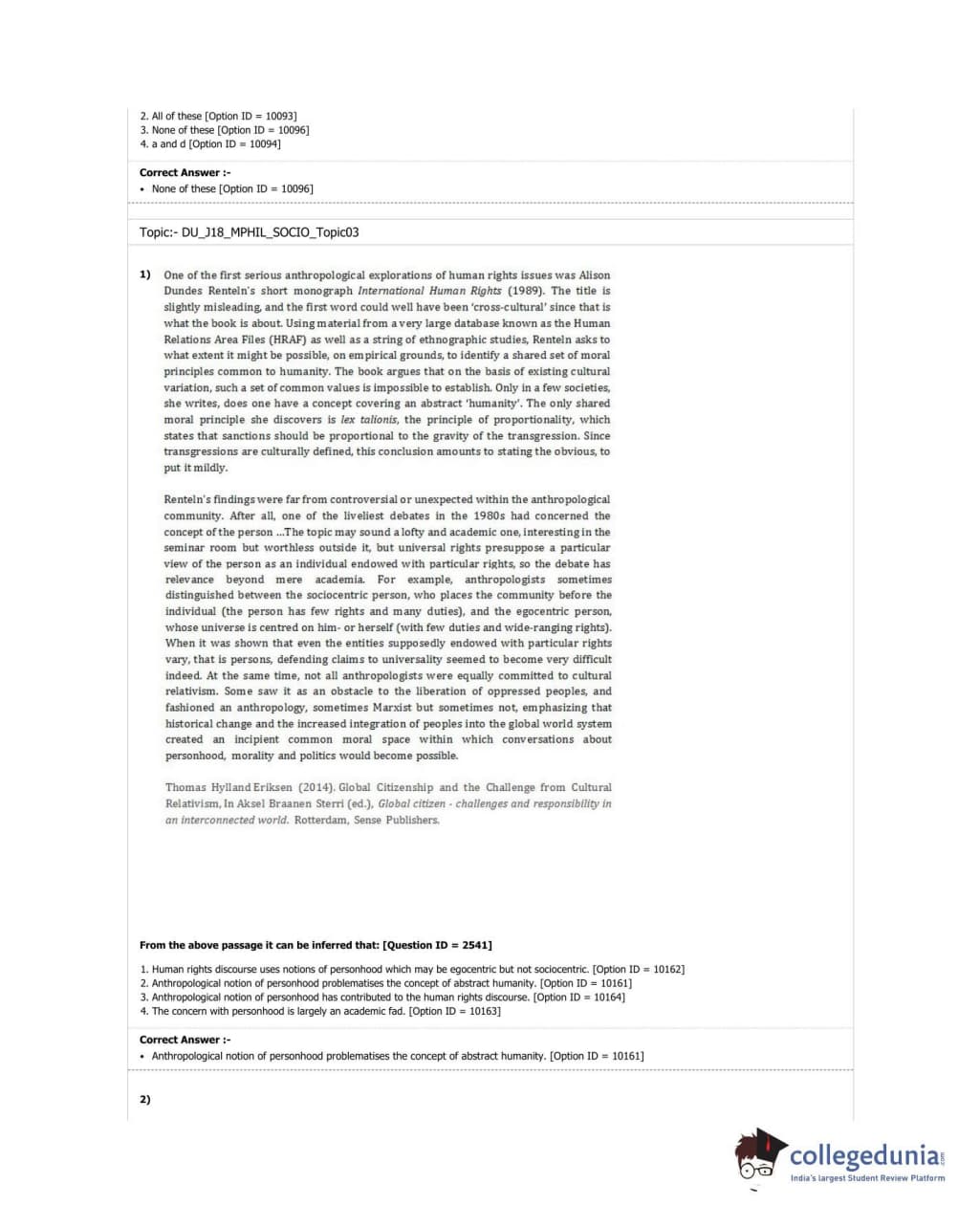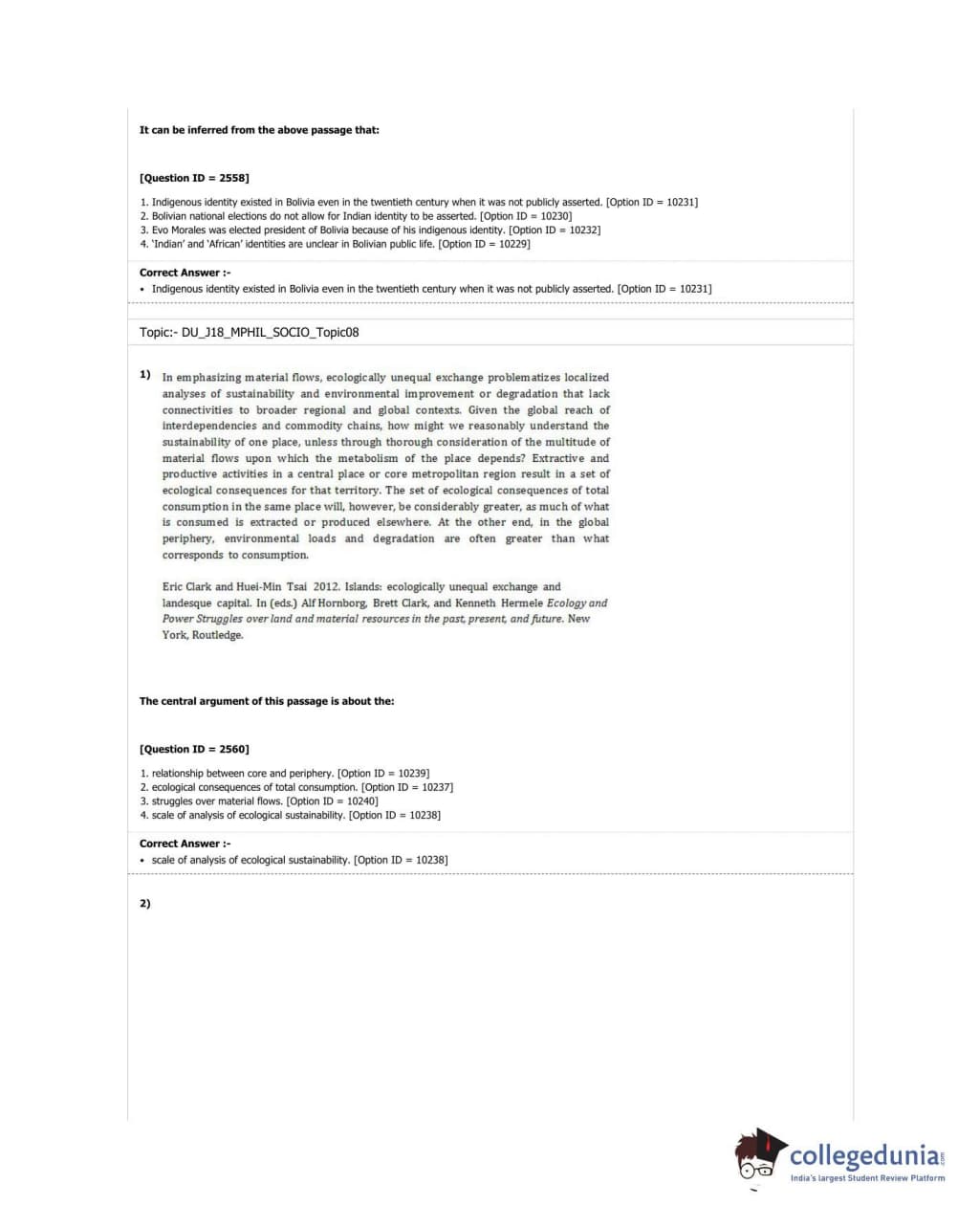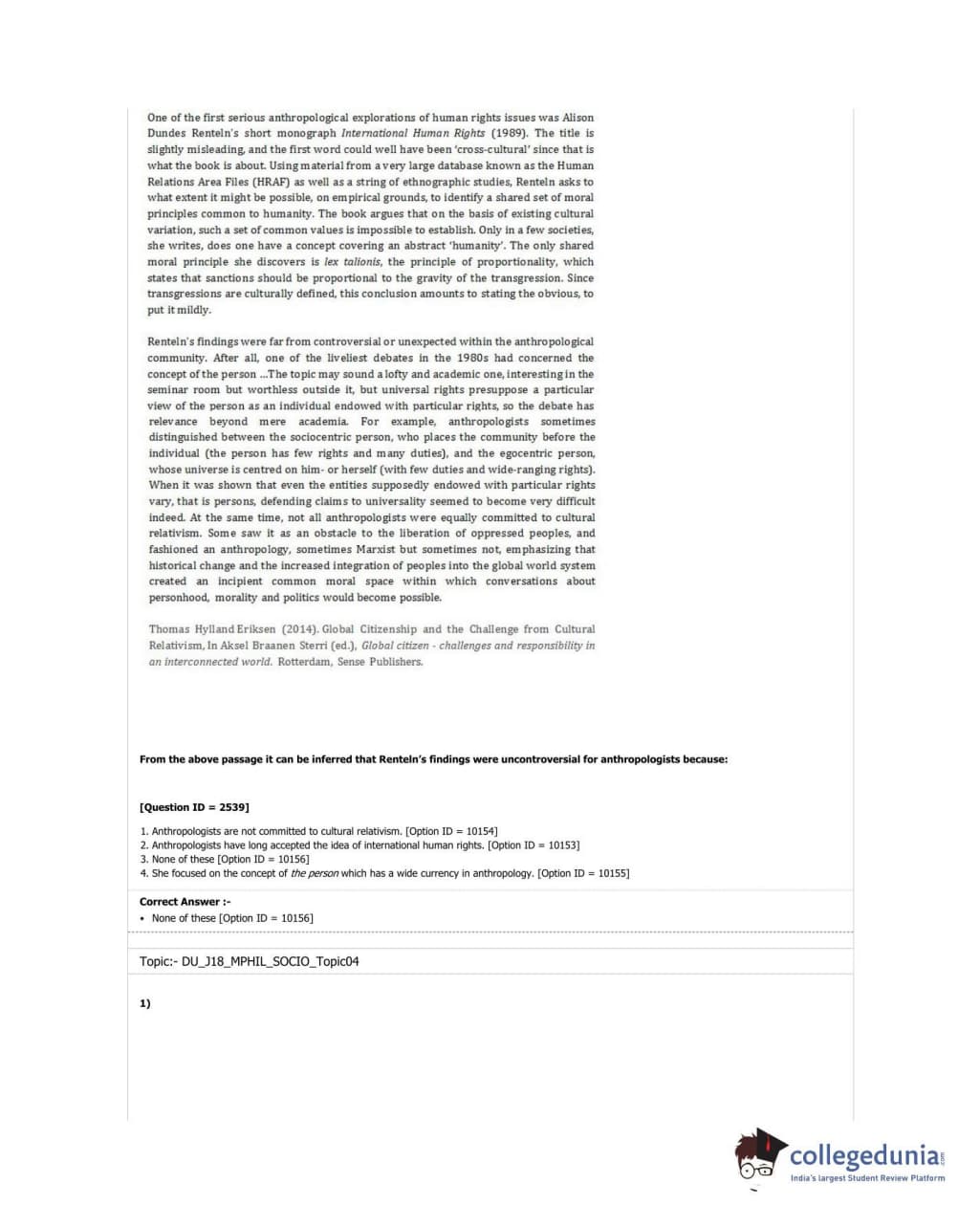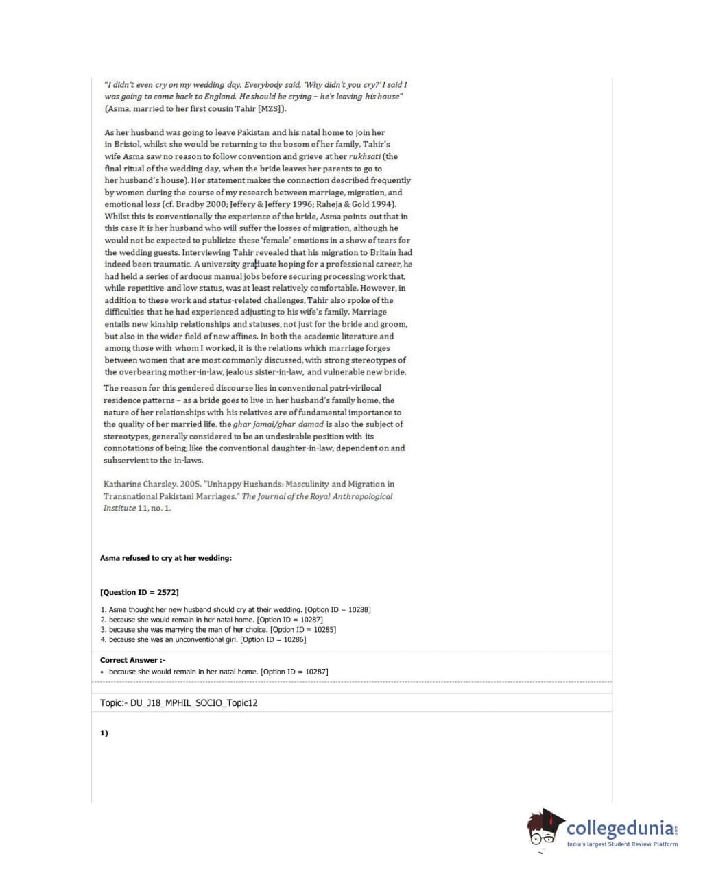 DUET 2018 M.Phil./Ph.D. in Sociology Question Paper with Answer Key PDF Shift 3