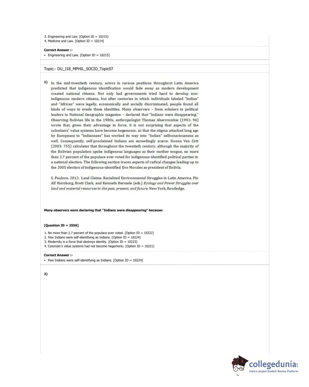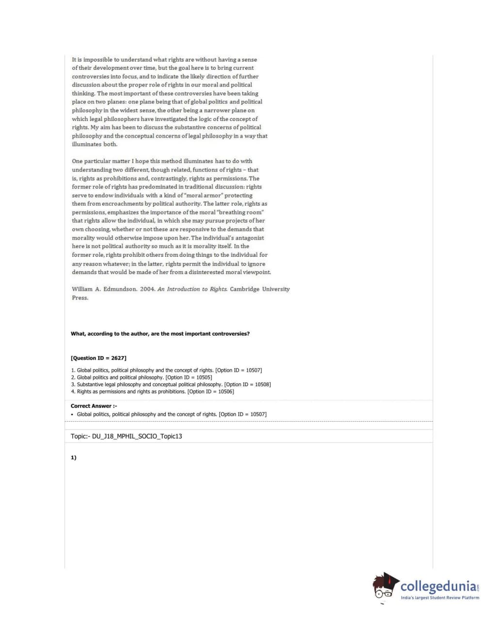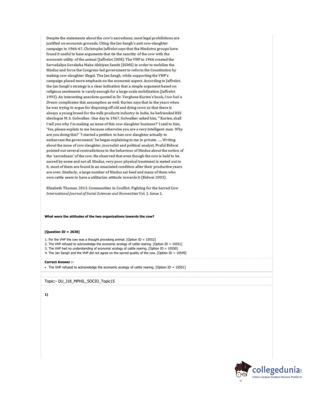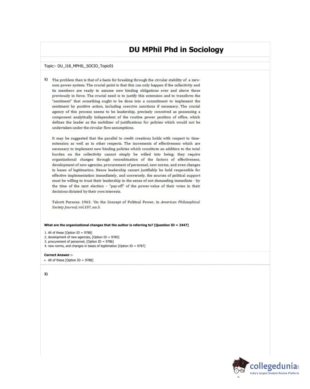 DUET 2018 M.Phil./Ph.D. in Sociology Question Paper with Answer Key PDF Shift 3