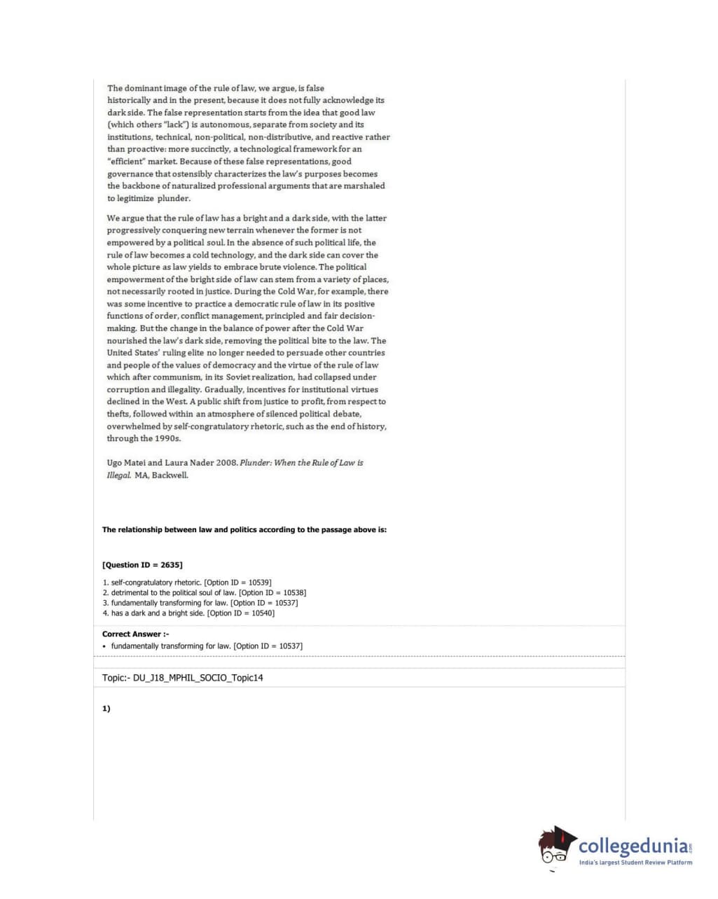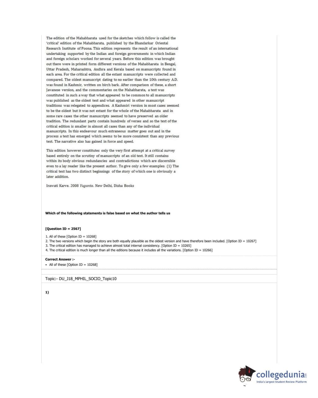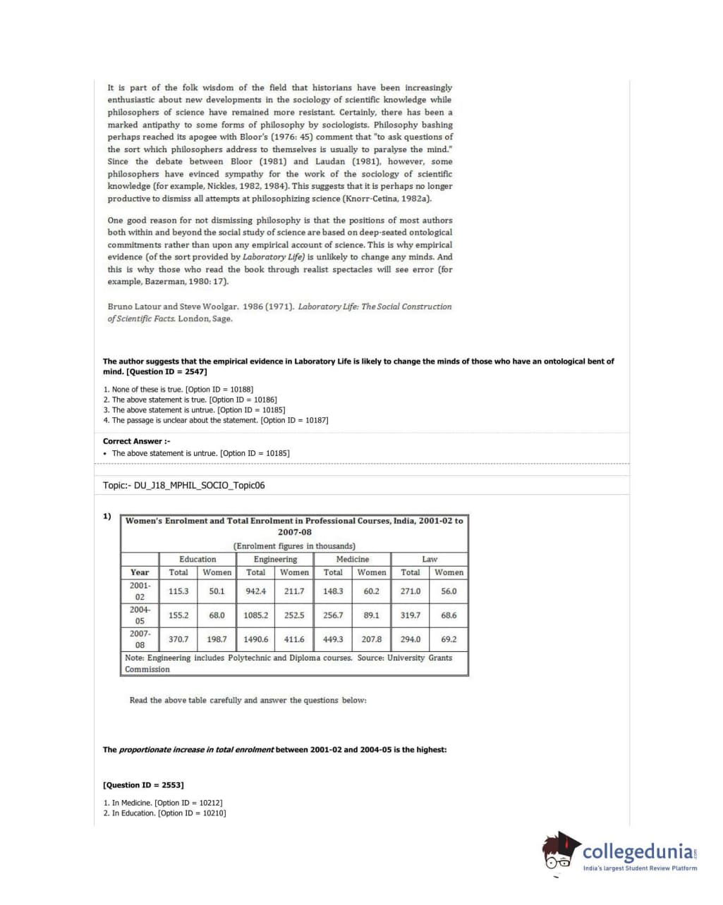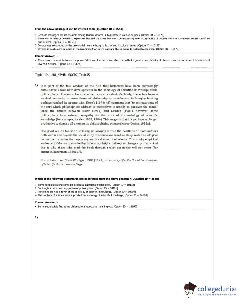 DUET 2018 M.Phil./Ph.D. in Sociology Question paper with answer key pdf conducted on June 17, 2018 in Shift 3 is available for download. The exam was successfully organized by University of Delhi. The question paper comprised a total of 50 questions.