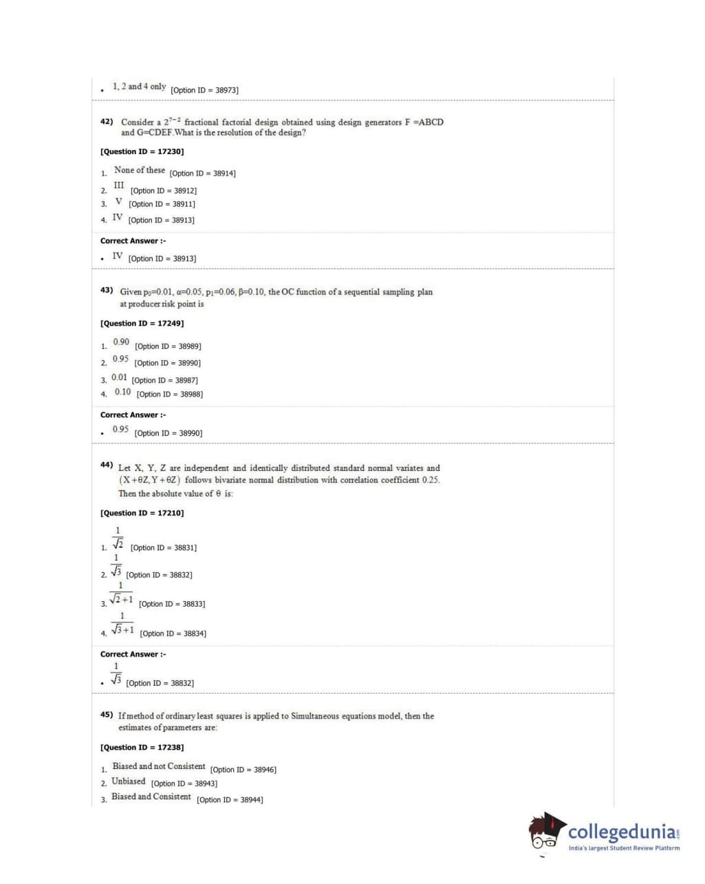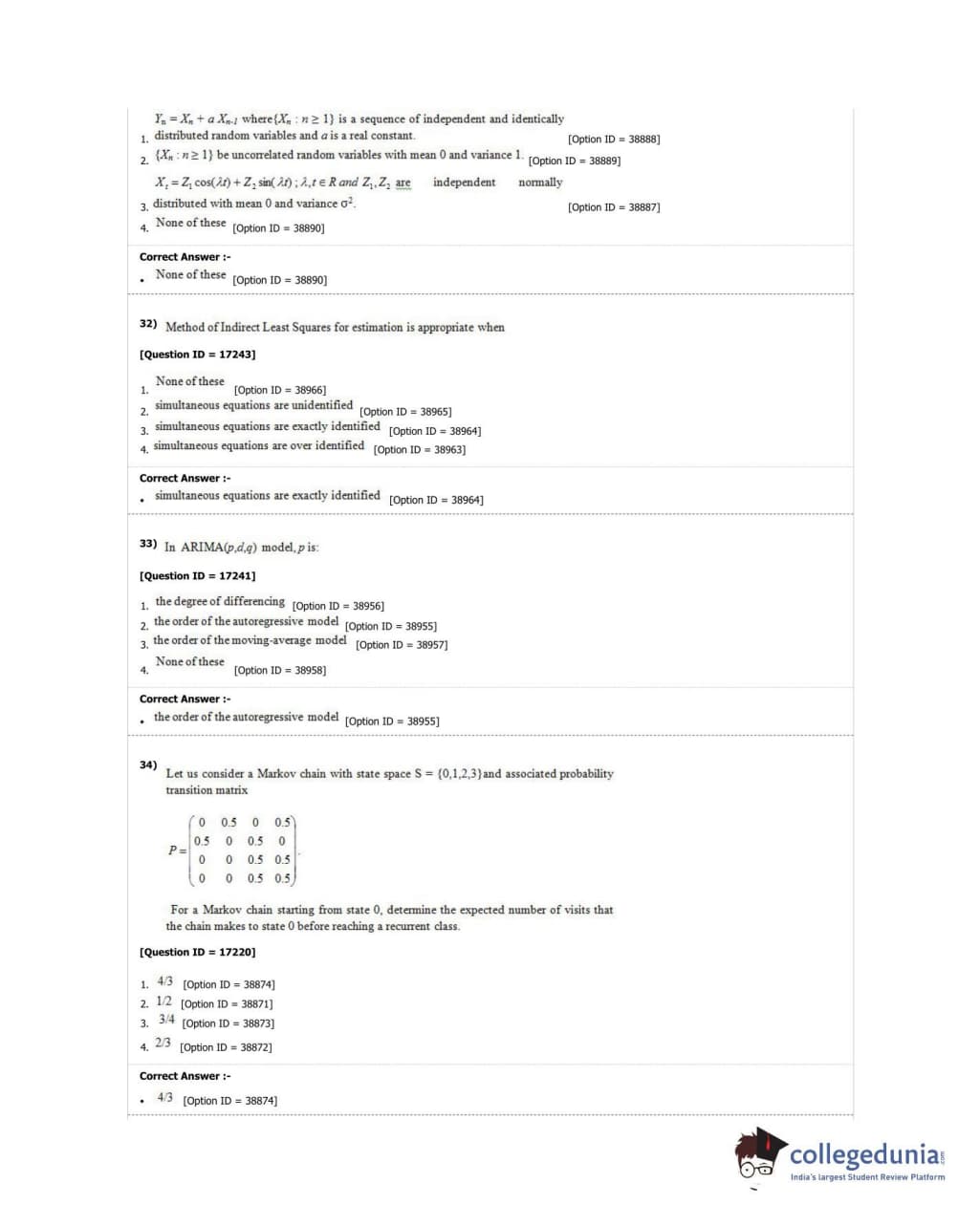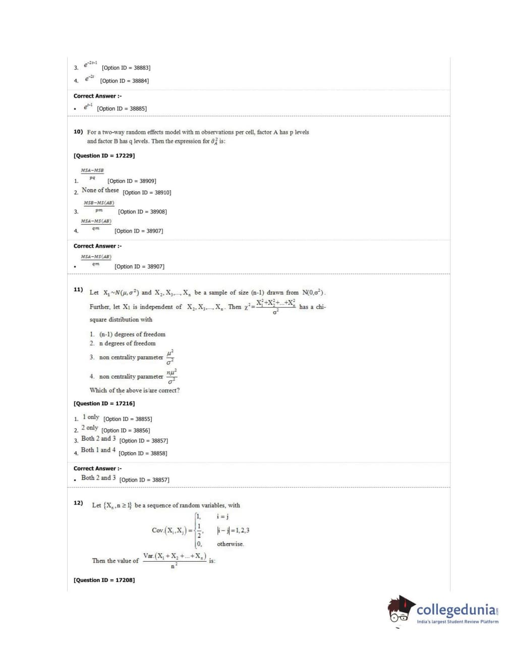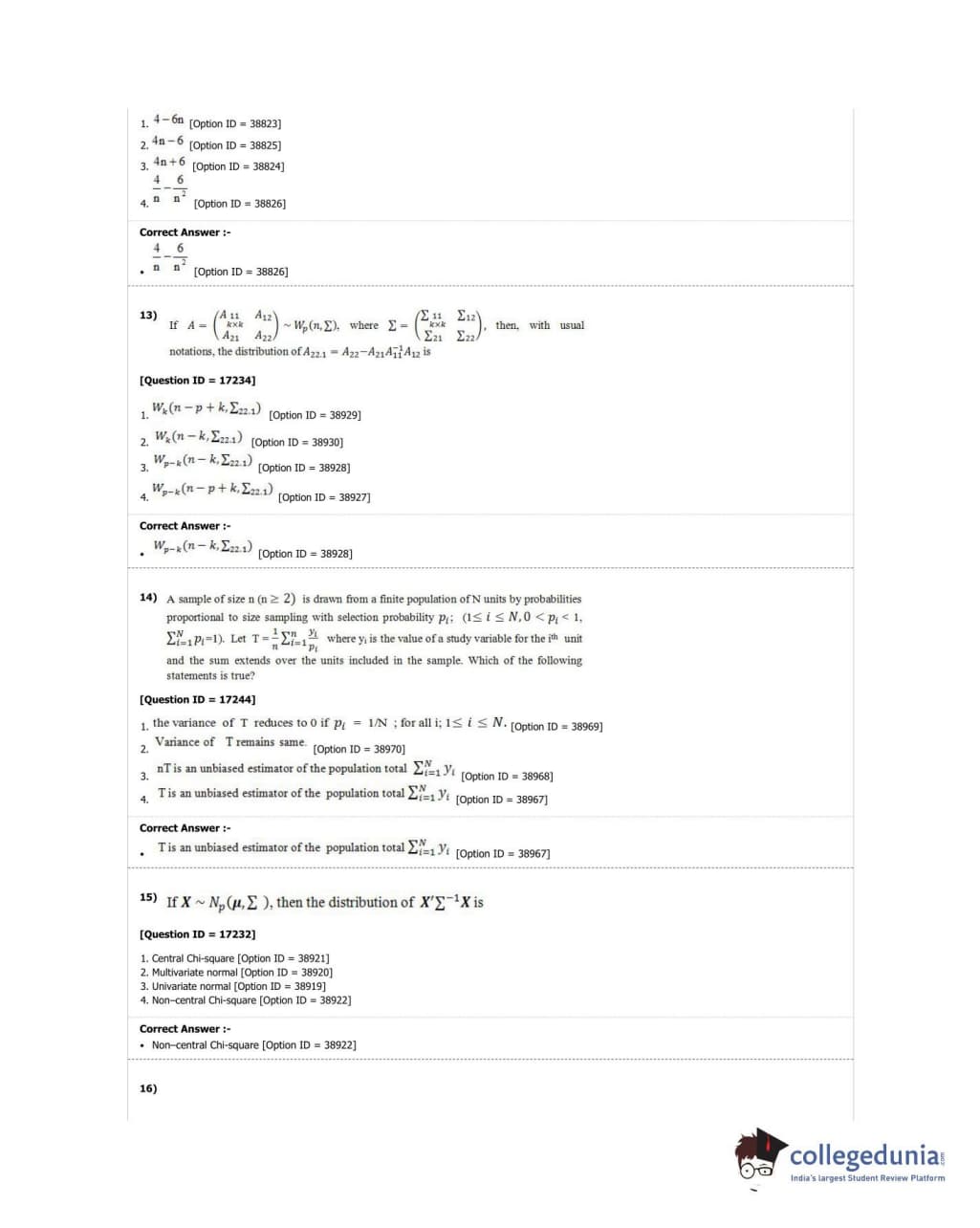 DUET 2018 M.Phil./Ph.D. in Statistics Question Paper with Answer Key PDF Shift 1