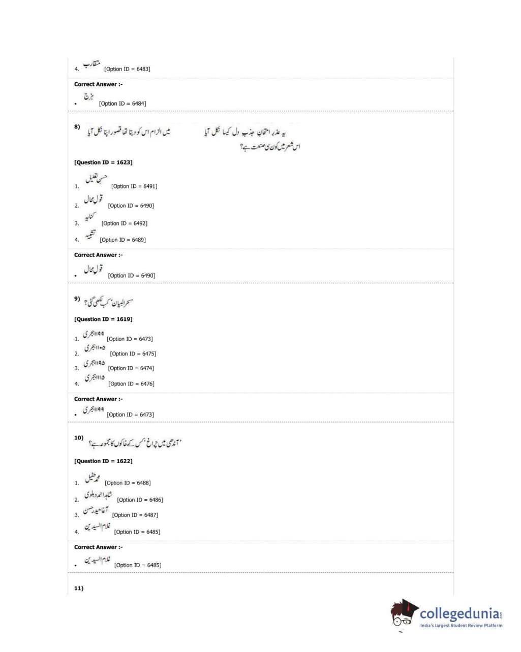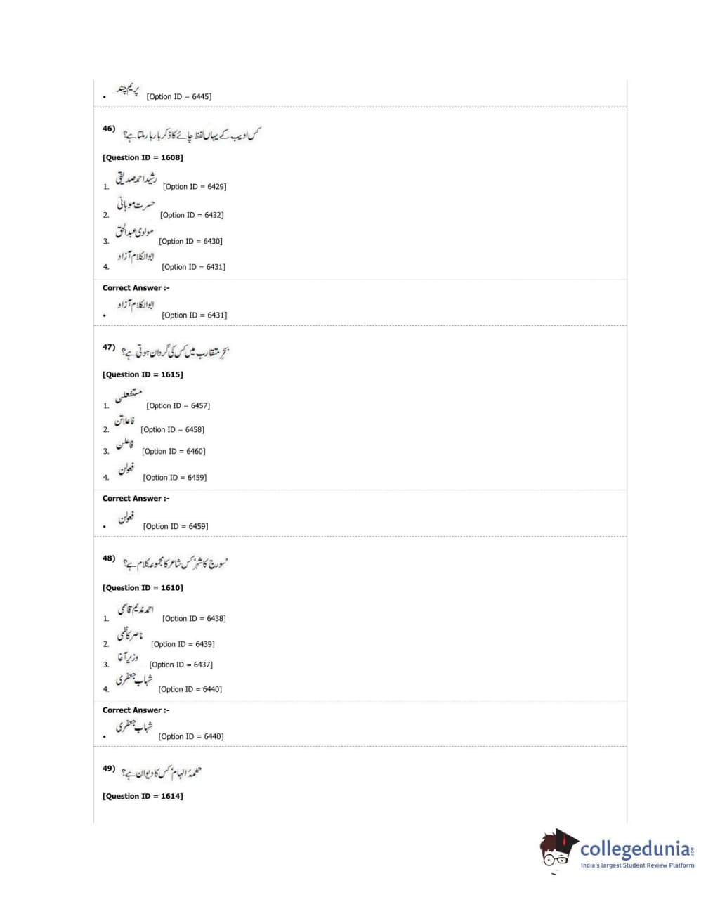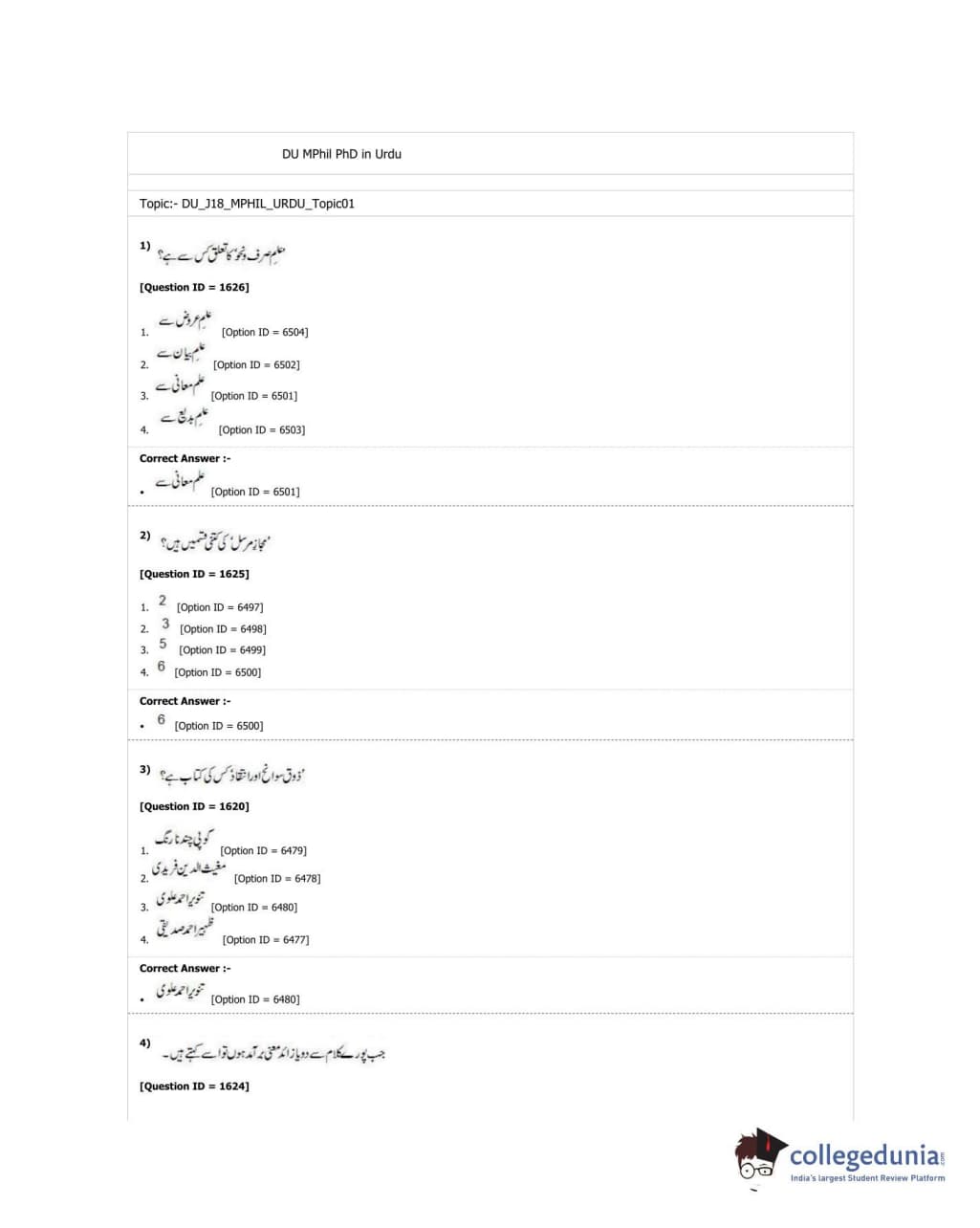 DUET 2018 M.Phil./Ph.D. in Urdu Question paper with answer key pdf conducted on June 21, 2018 in Shift 1 is available for download. The exam was successfully organized by University of Delhi. The question paper comprised a total of 50 questions.