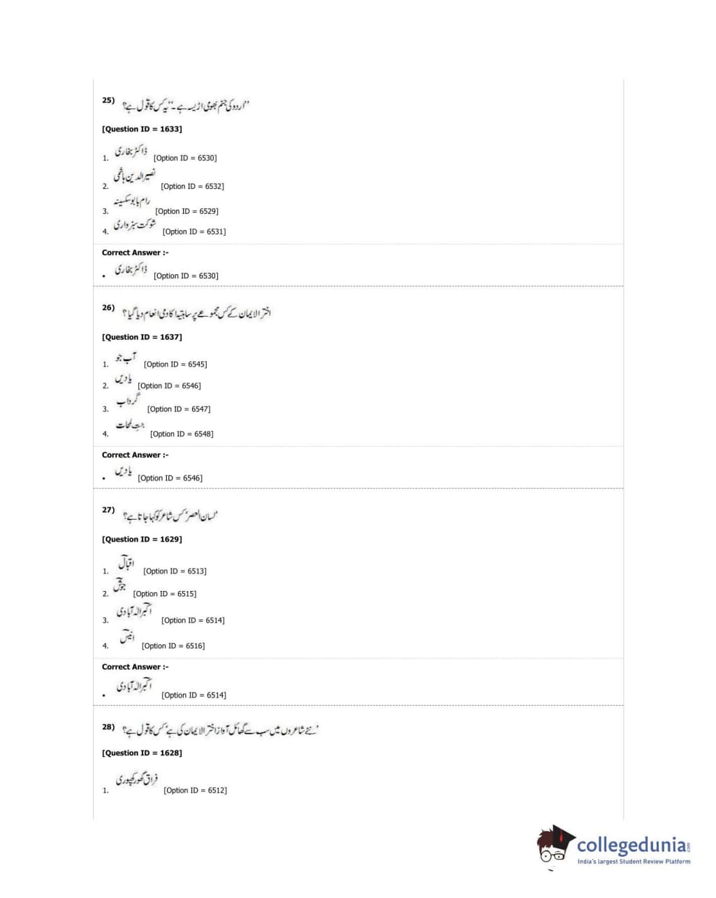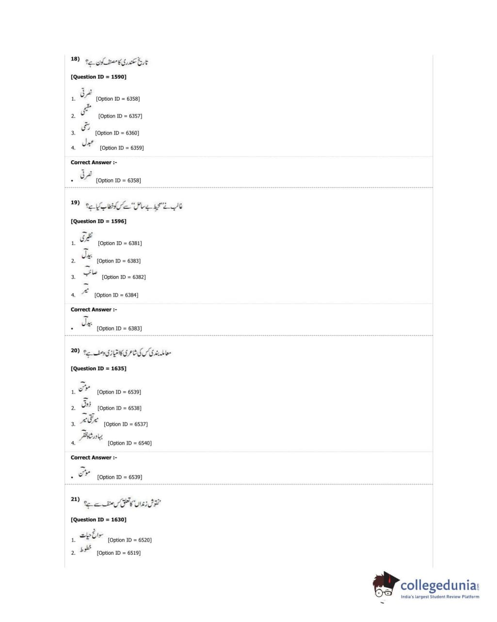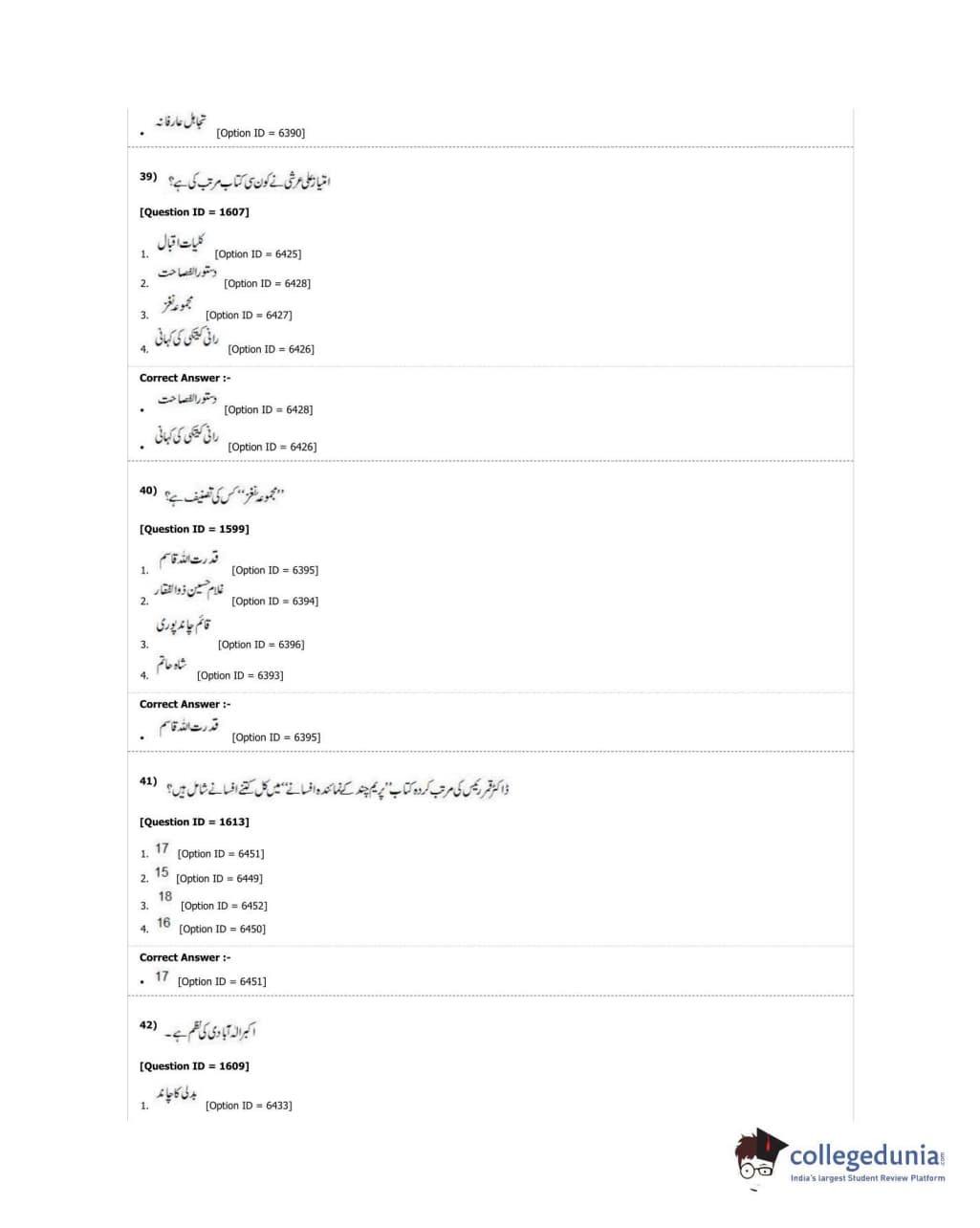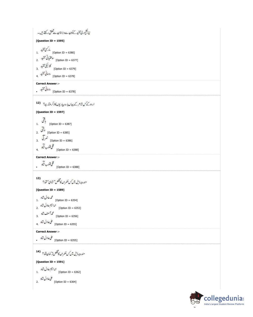 DUET 2018 M.Phil./Ph.D. in Urdu Question paper with answer key pdf conducted on June 21, 2018 in Shift 1 is available for download. The exam was successfully organized by University of Delhi. The question paper comprised a total of 50 questions.