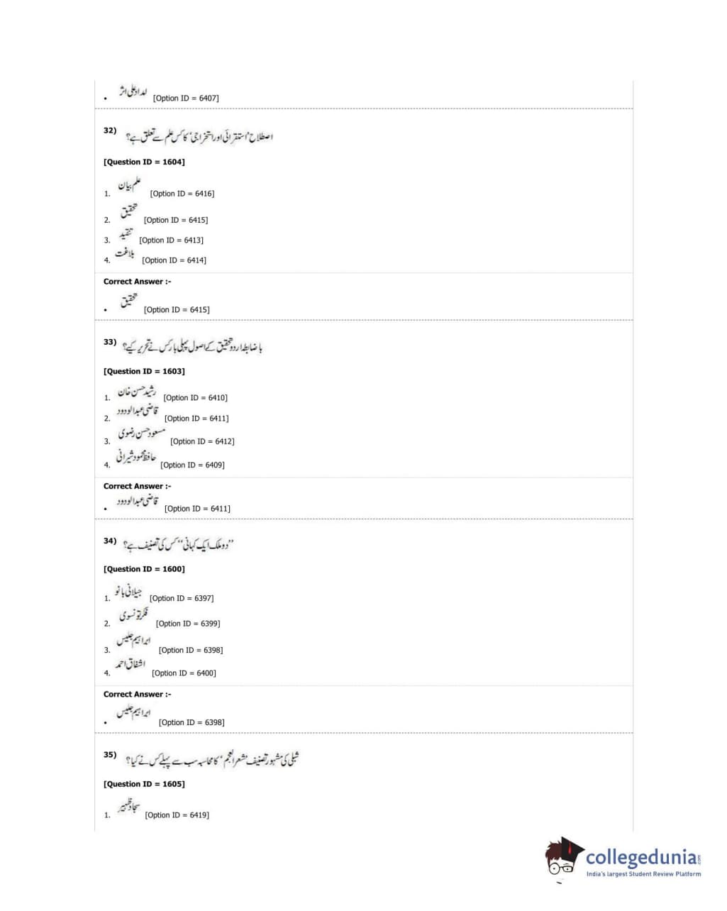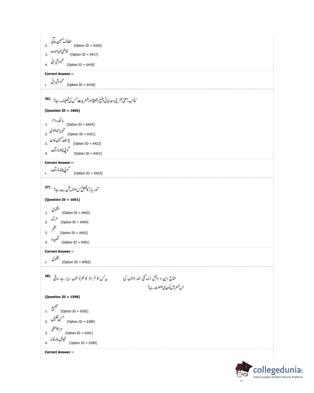 DUET 2018 M.Phil./Ph.D. in Urdu Question Paper with Answer Key PDF Shift 1