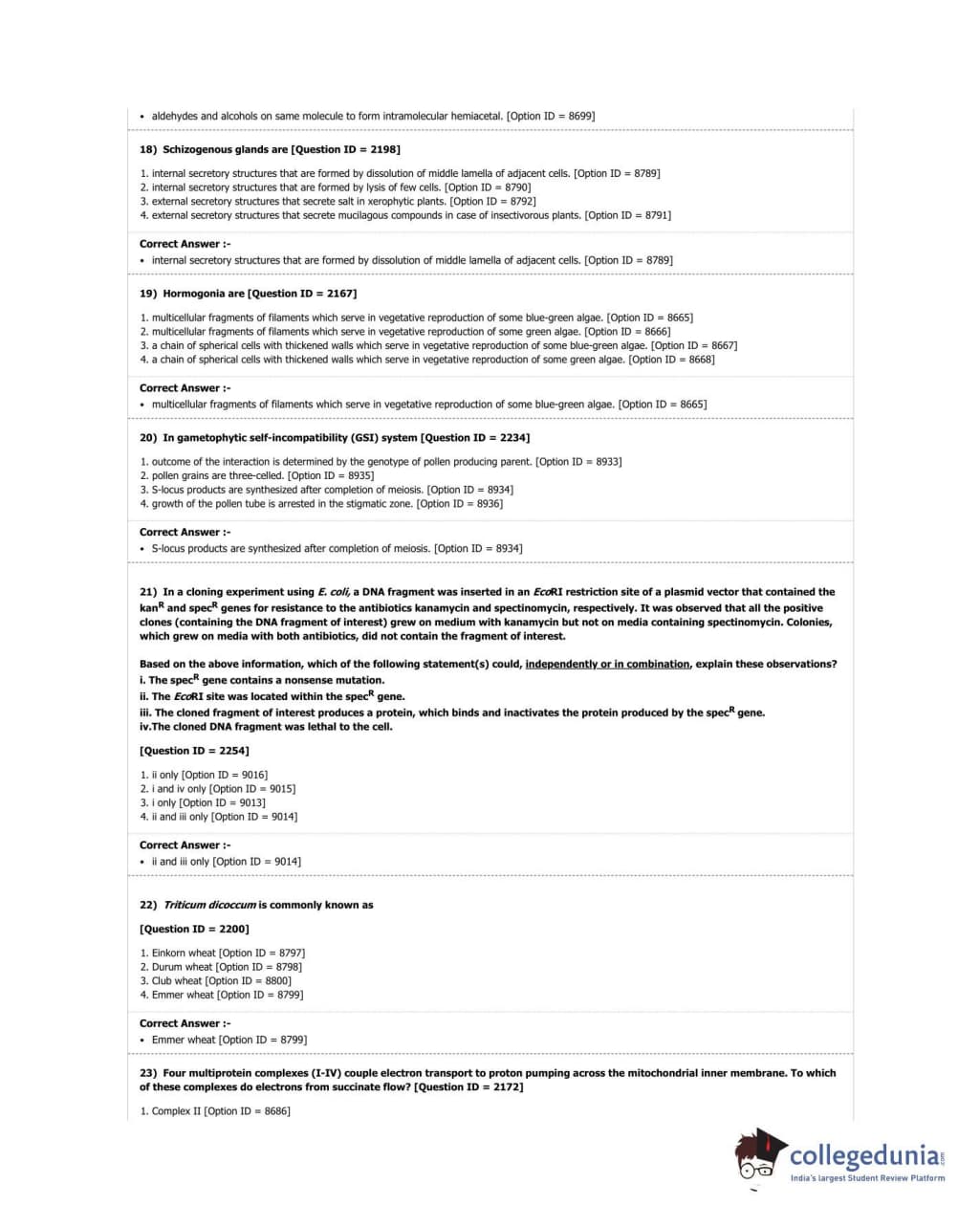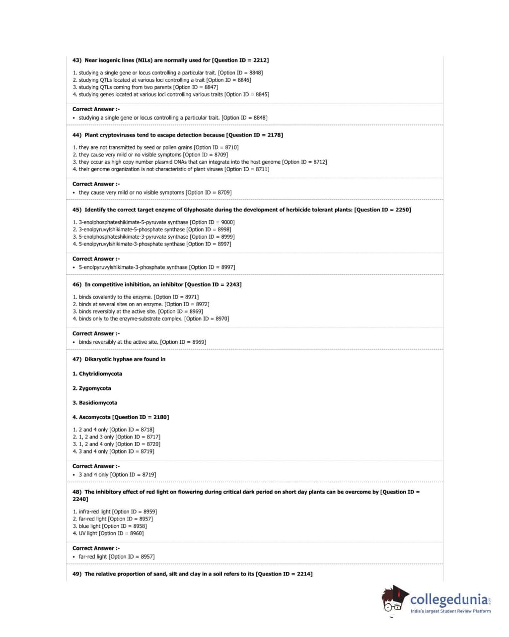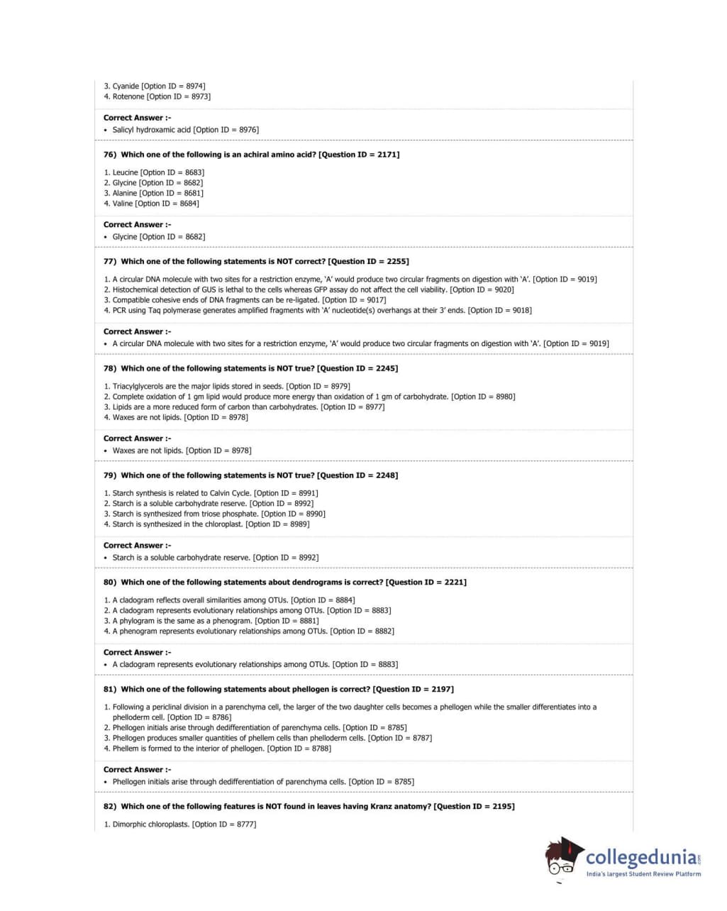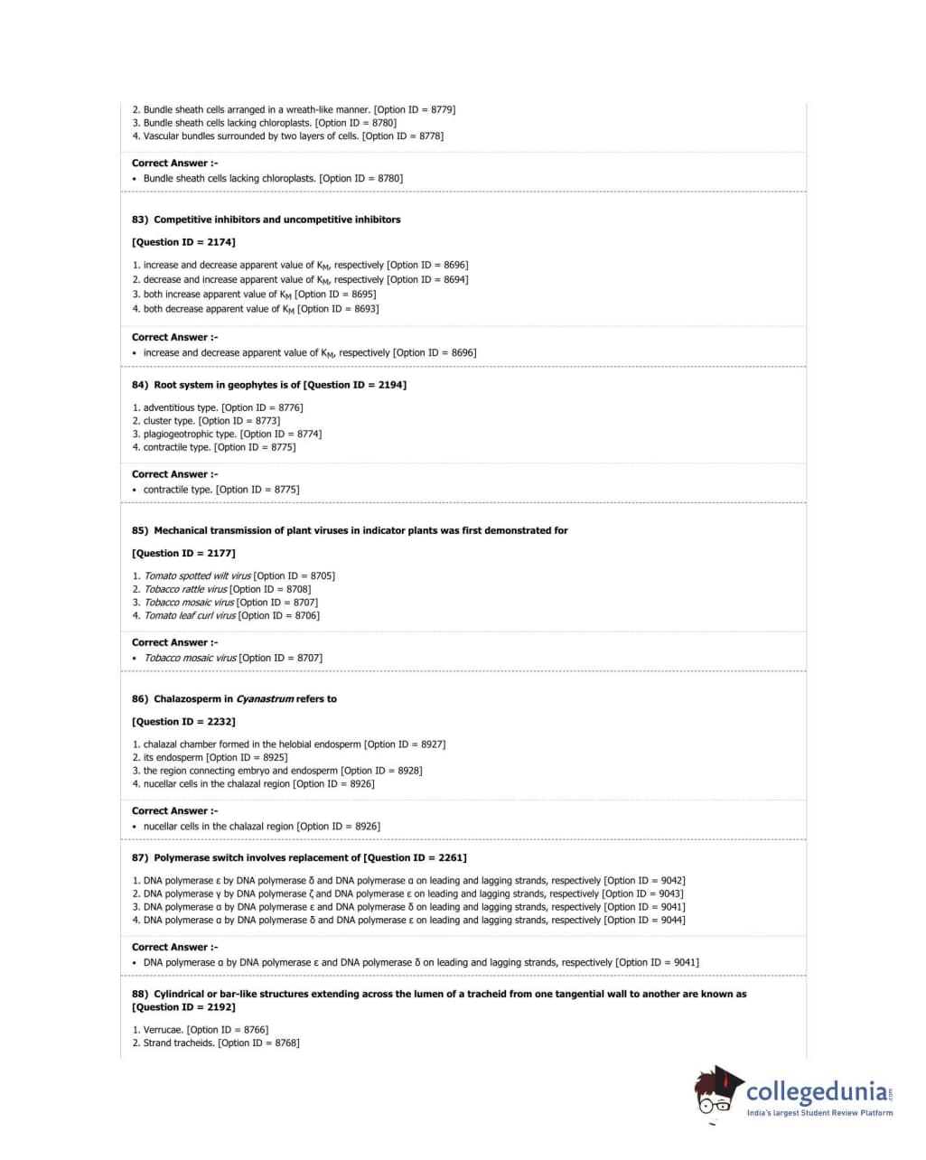 DUET 2018 M.Sc. Botany Question Paper with Answer Key PDF Shift 3