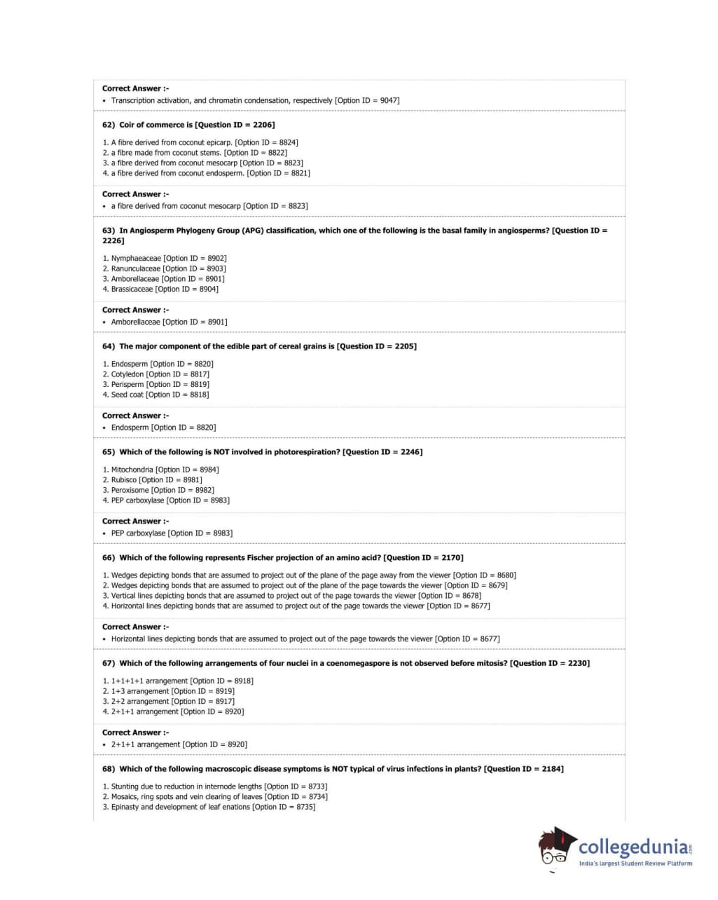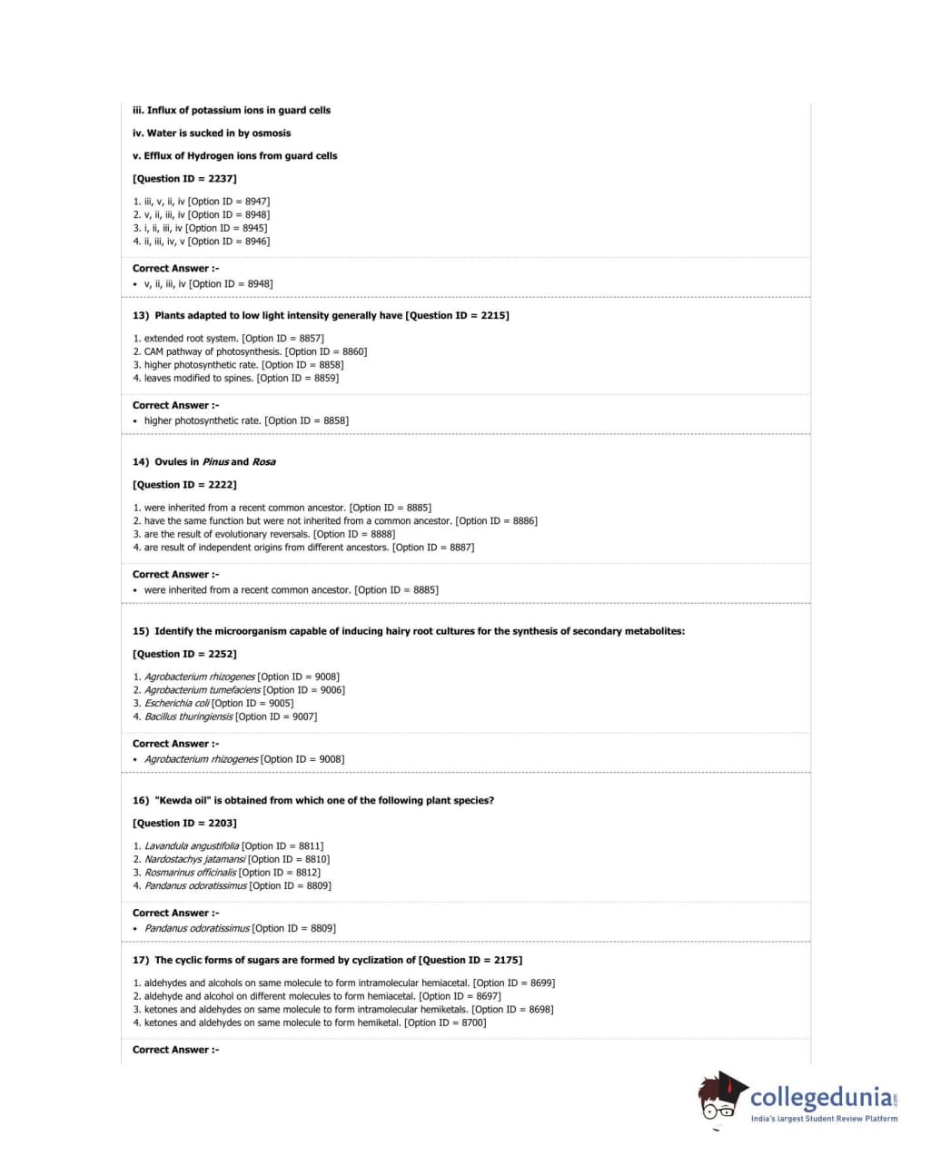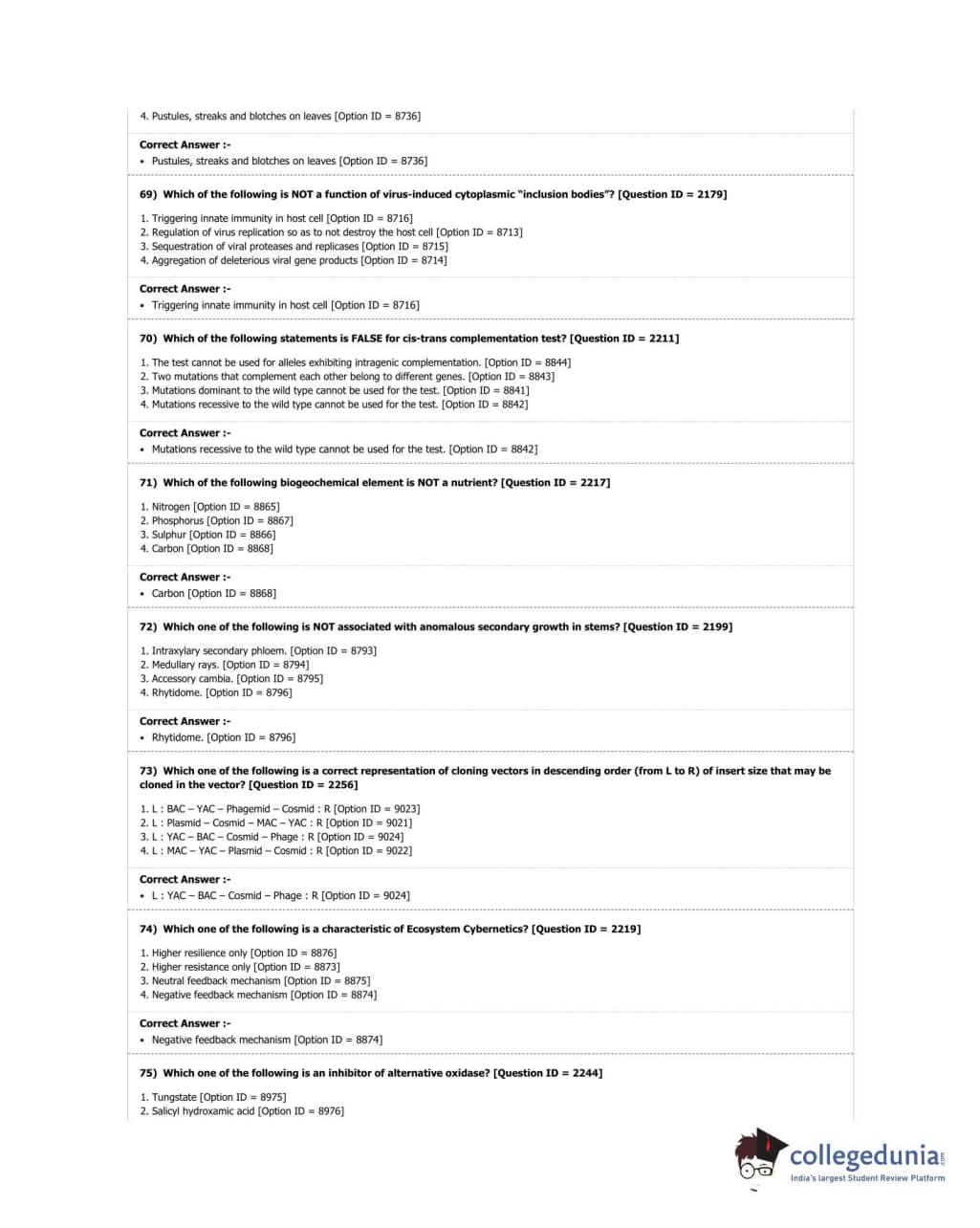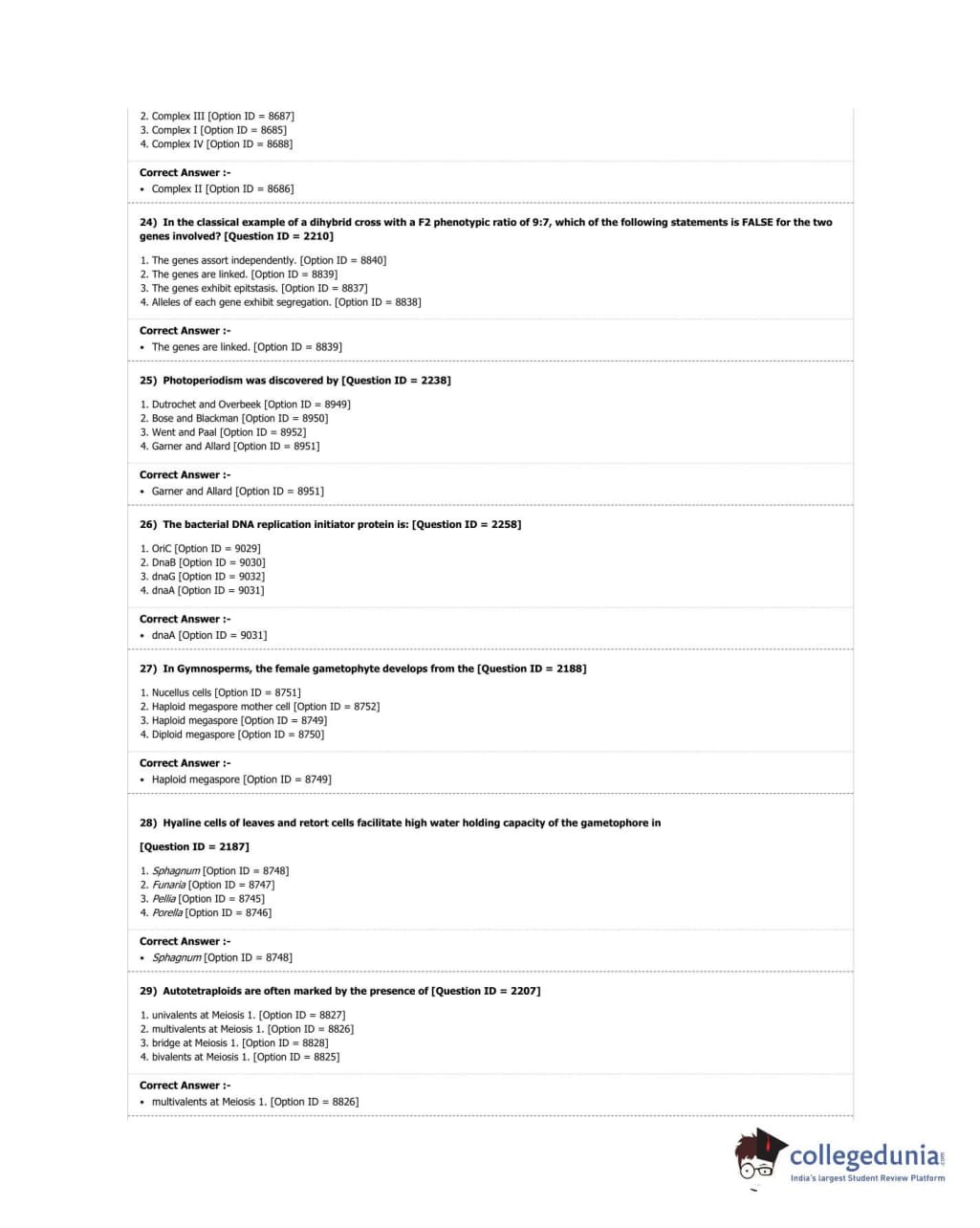 DUET 2018 M.Sc. Botany Question Paper with Answer Key PDF Shift 3