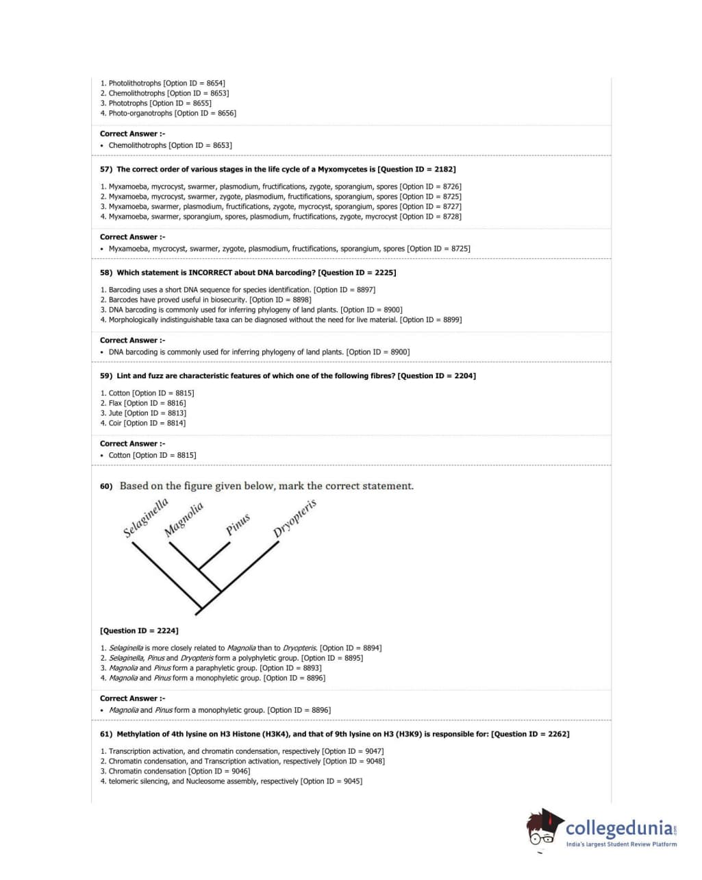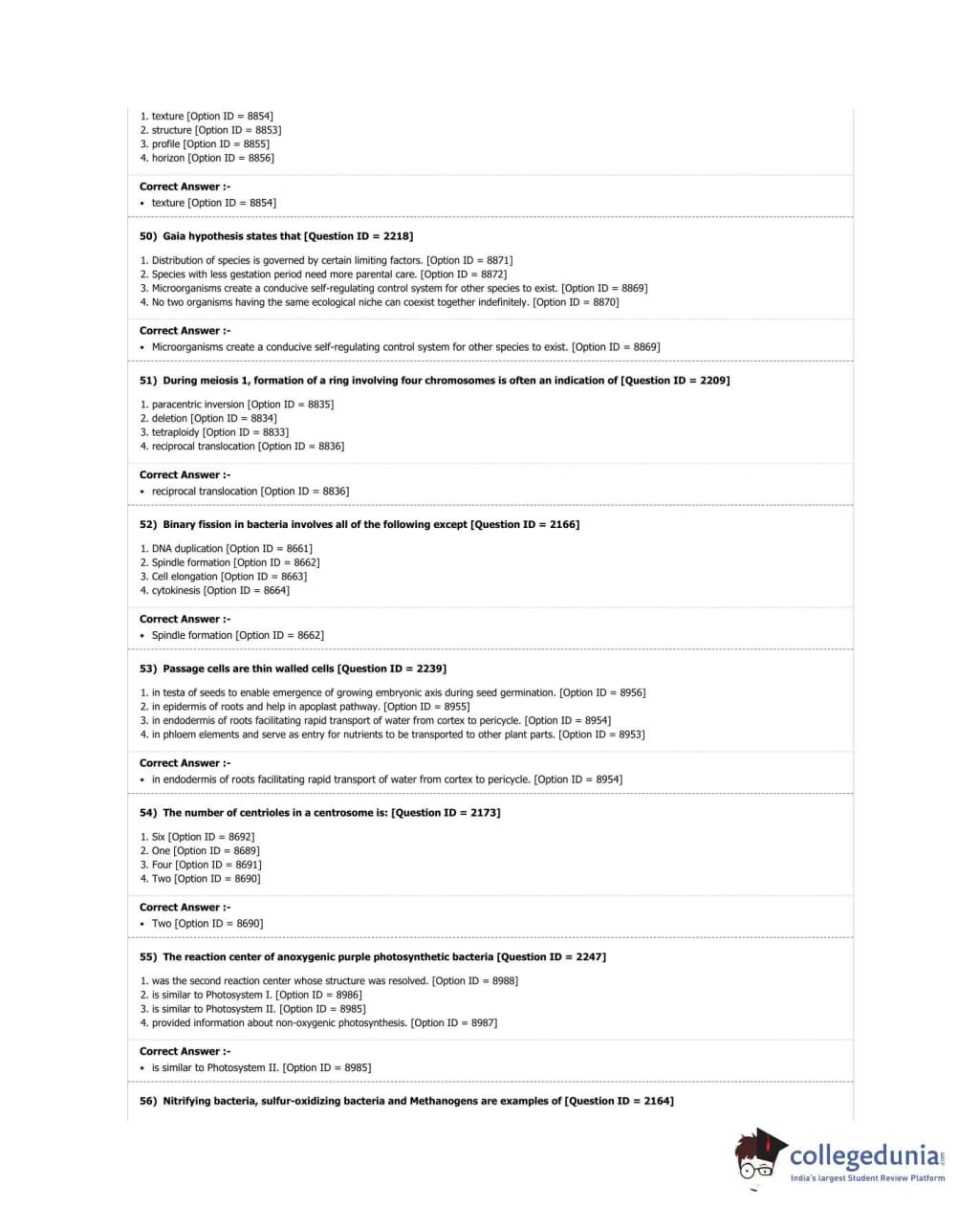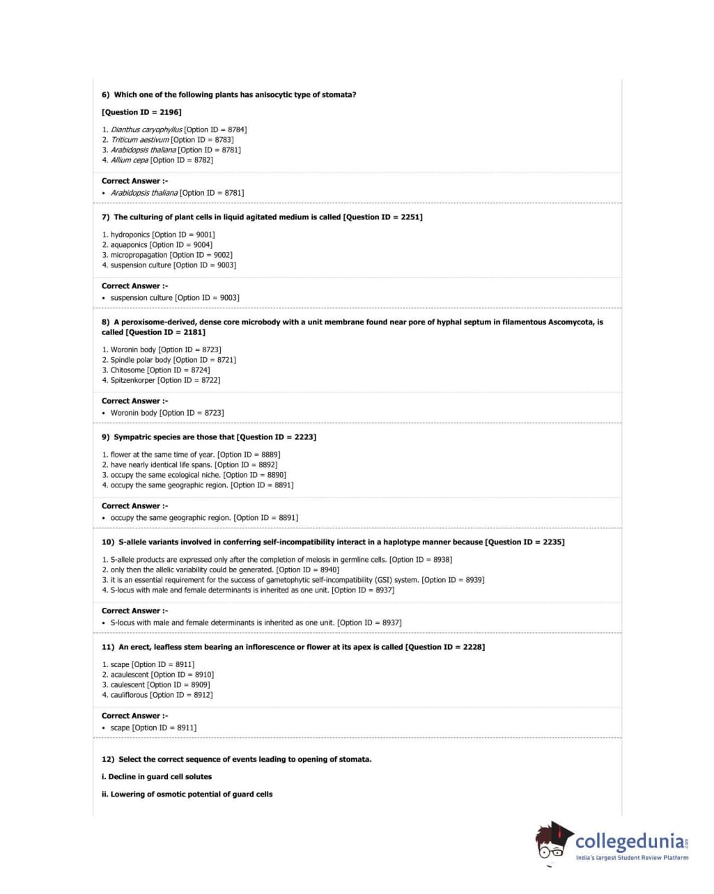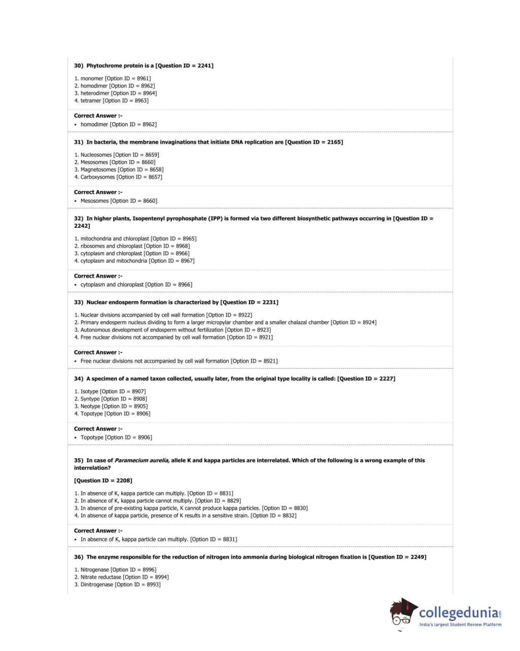 DUET 2018 M.Sc. Botany Question Paper with Answer Key PDF Shift 3