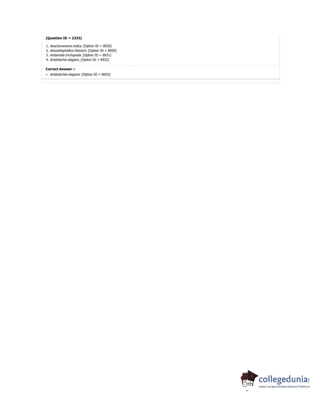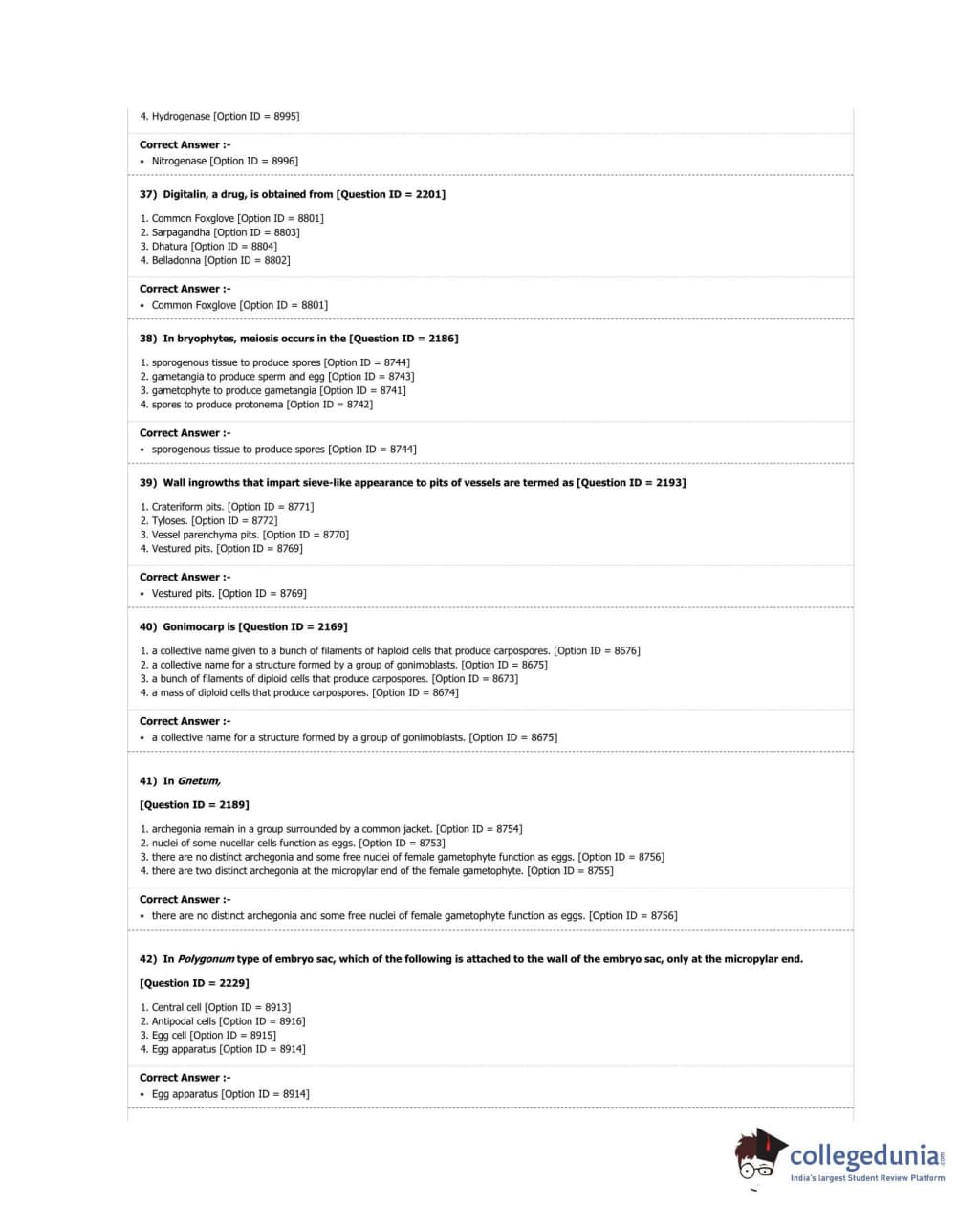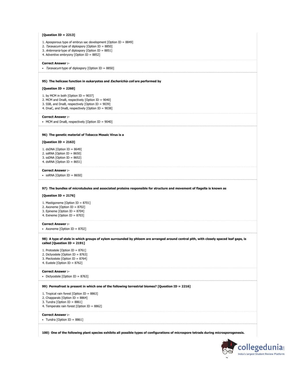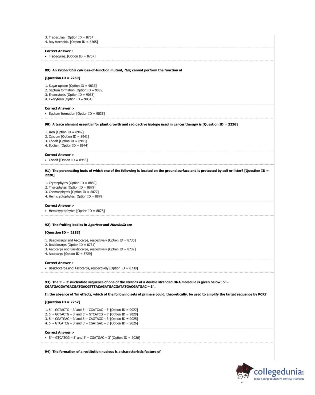 DUET 2018 M.Sc. Botany Question Paper with Answer Key PDF Shift 3