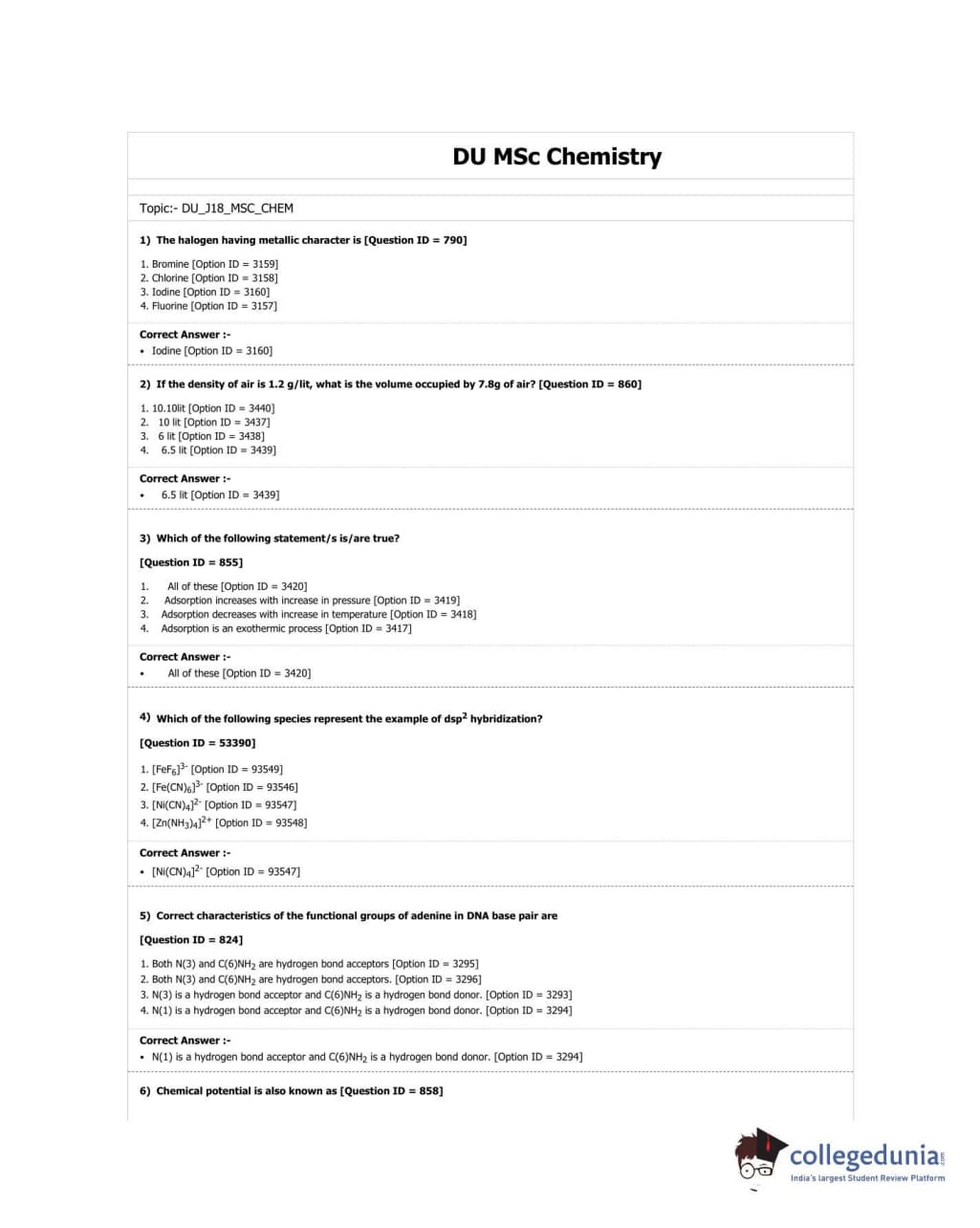 DUET 2018 M.Sc. Chemistry Question paper with answer key pdf conducted on June 18, 2018 in Shift 2 is available for download. The exam was successfully organized by University of Delhi. The question paper comprised a total of 100 questions.