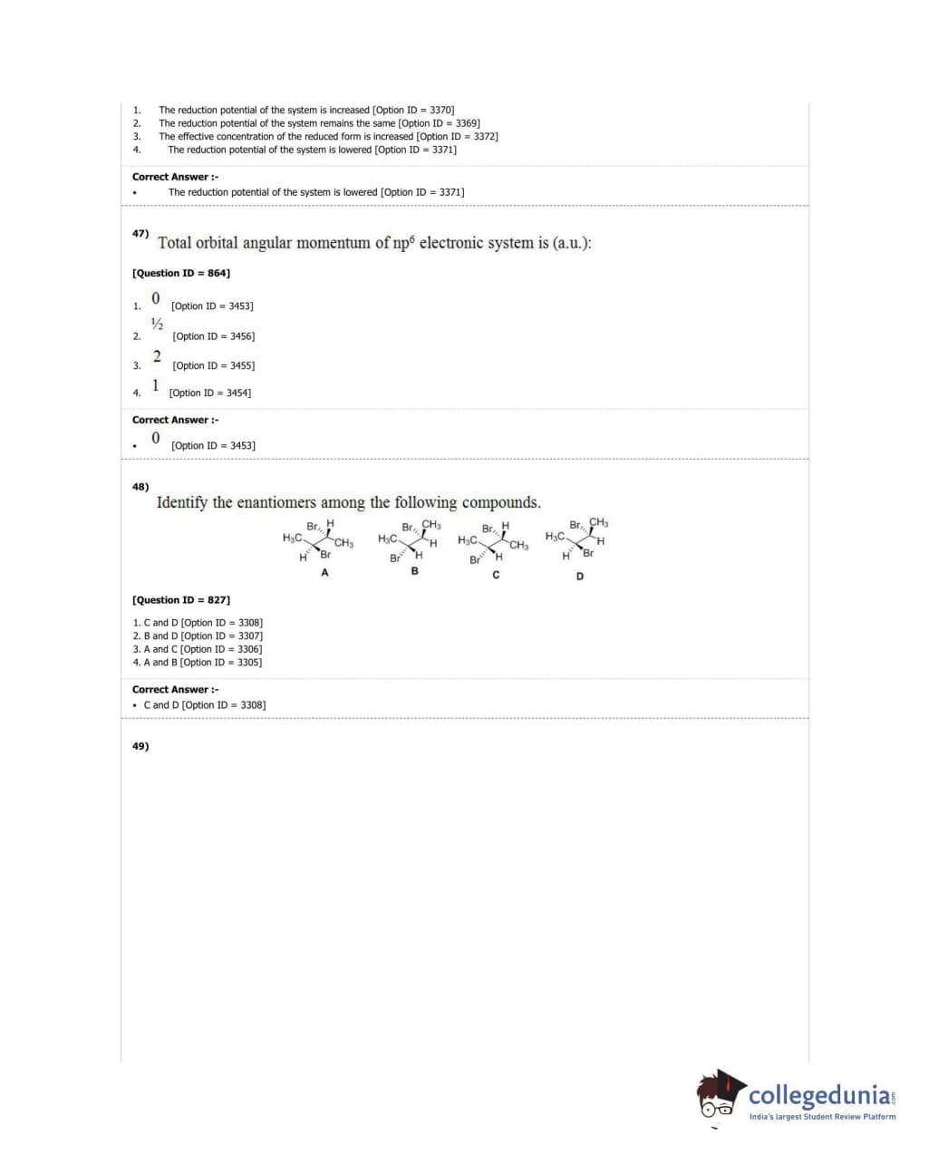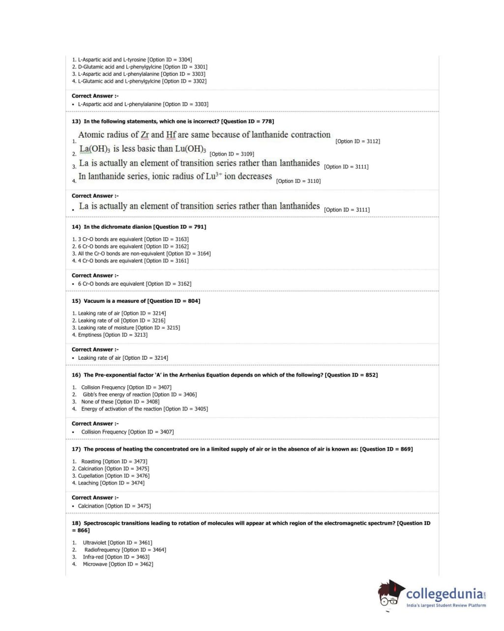 DUET 2018 M.Sc. Chemistry Question Paper with Answer Key PDF Shift 2