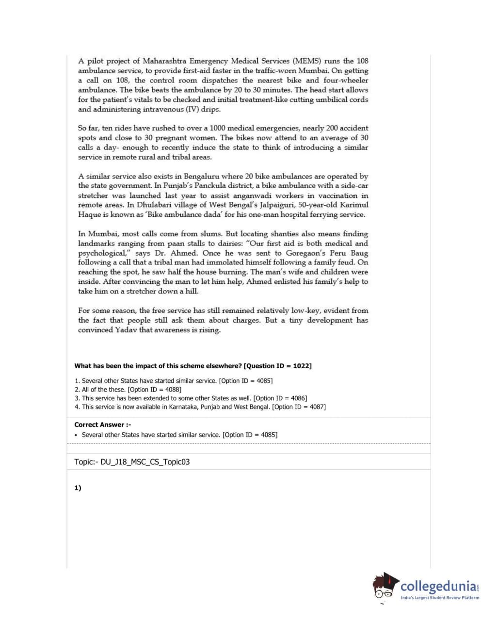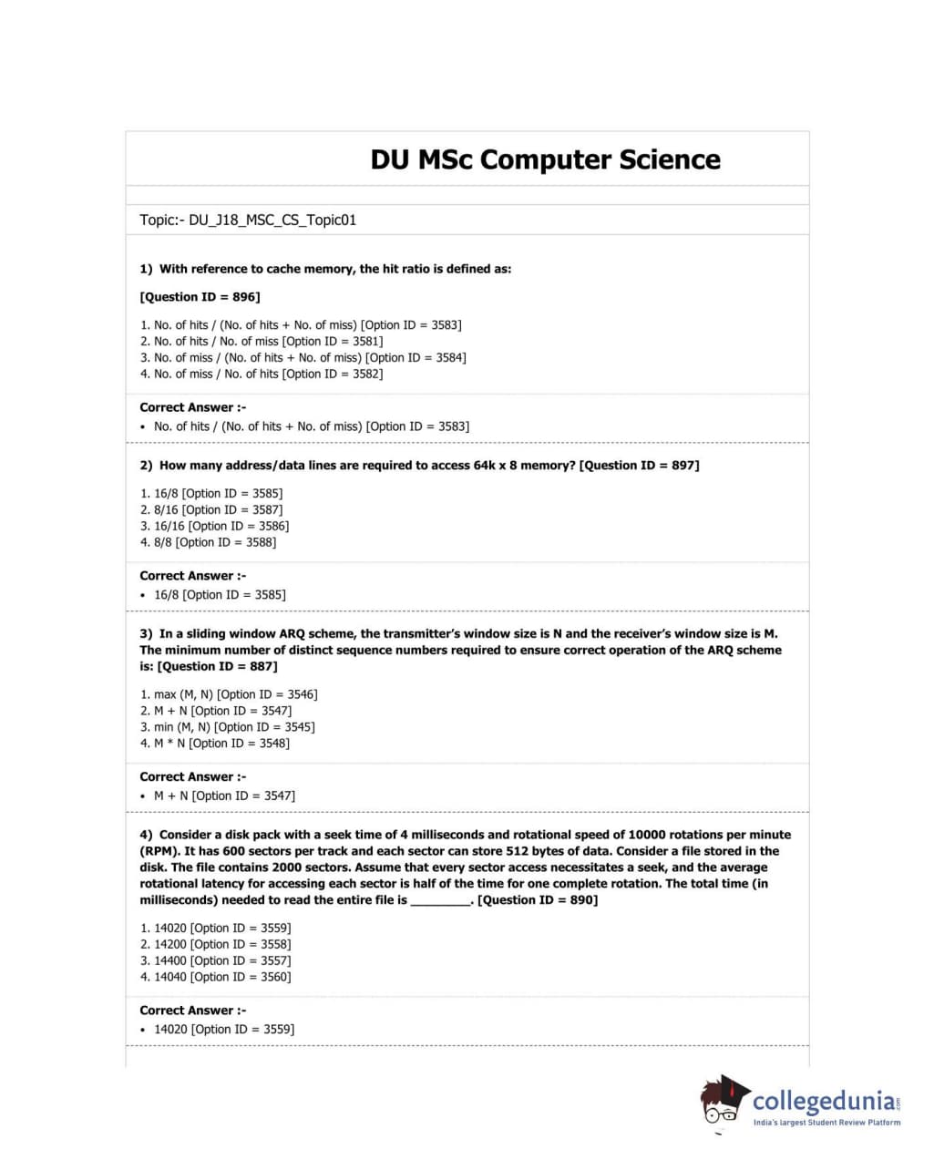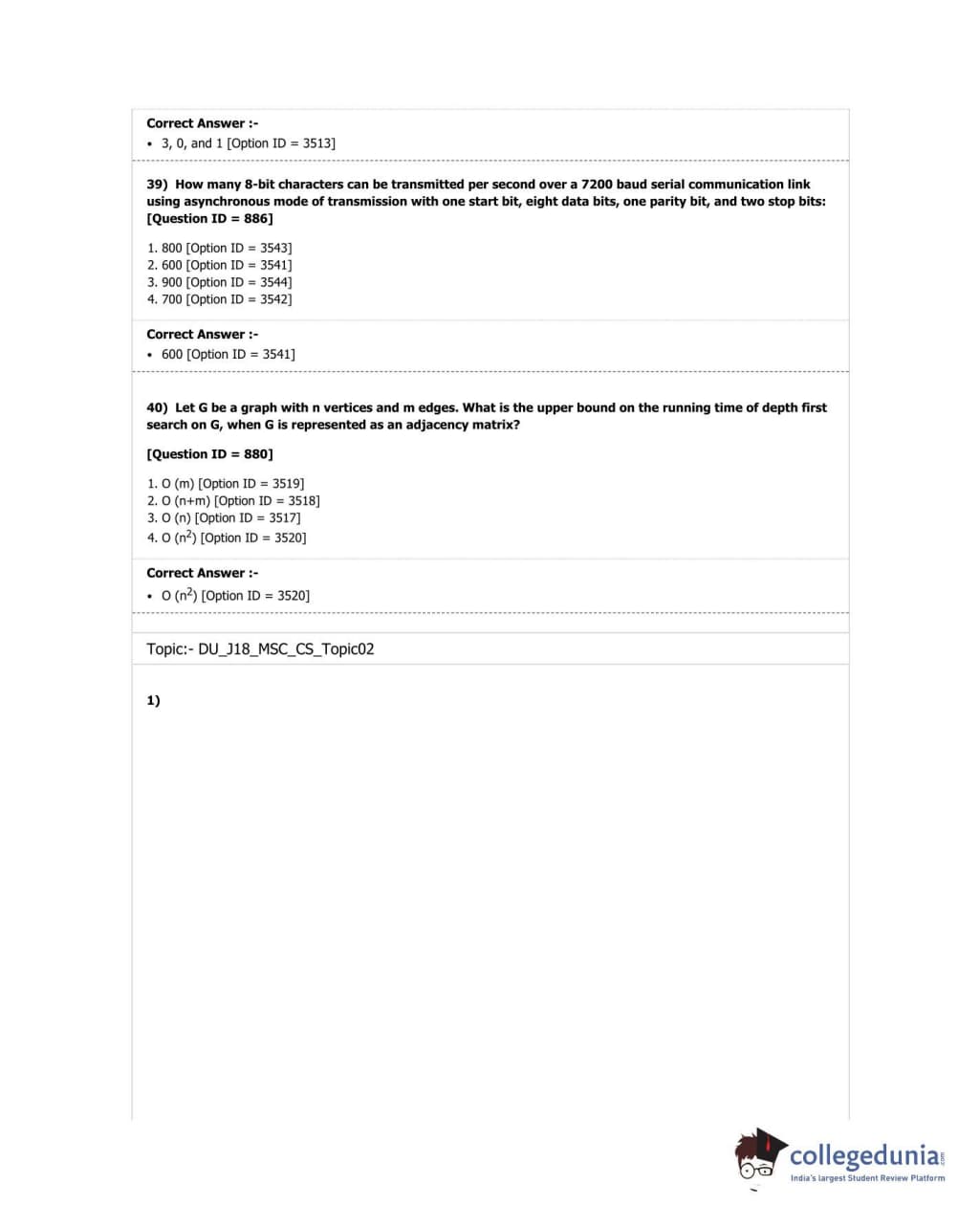 DUET 2018 M.Sc. Computer Science Question paper with answer key pdf conducted on June 17, 2018 in Shift 2 is available for download. The exam was successfully organized by University of Delhi. The question paper comprised a total of 50 questions.