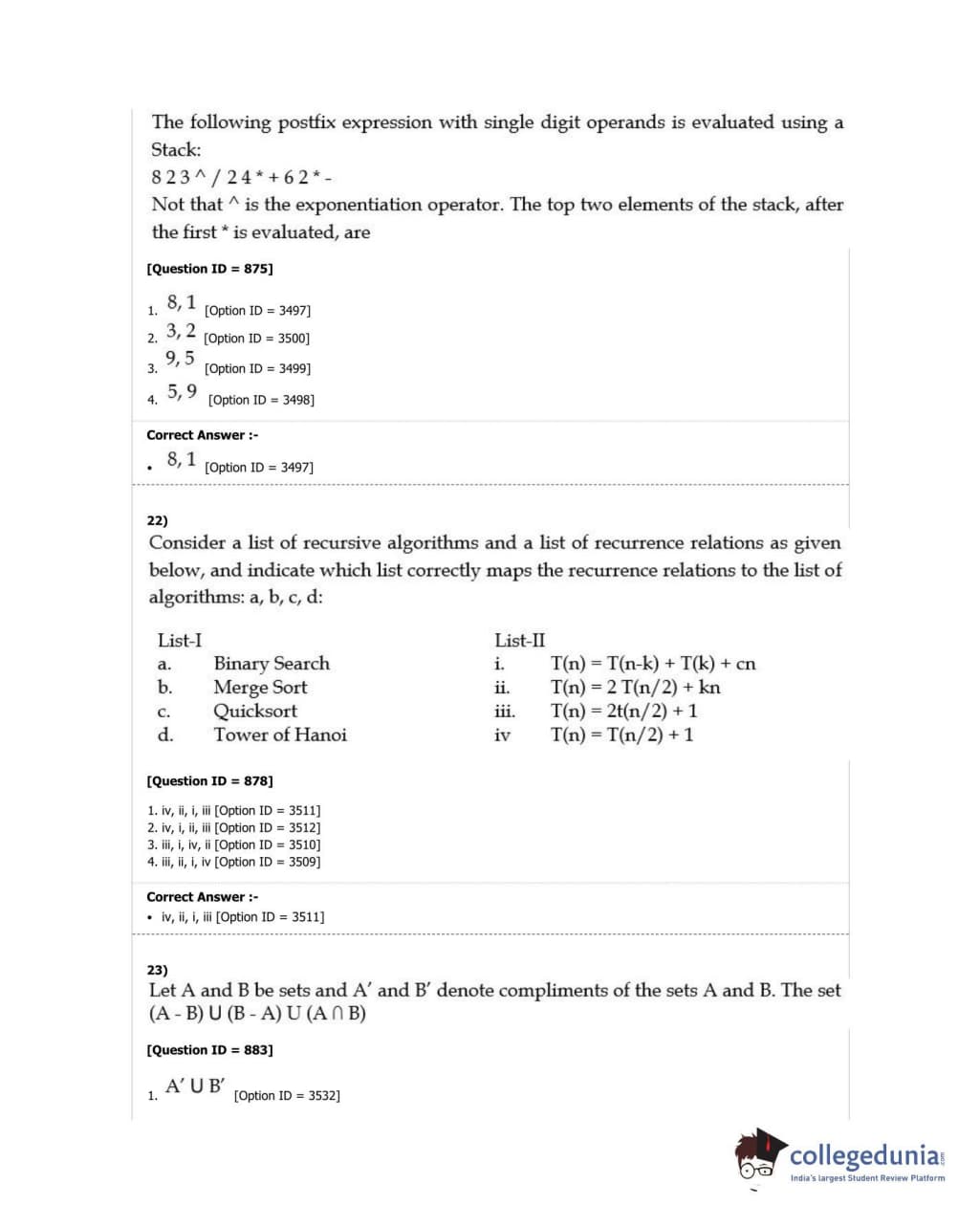DUET 2018 M.Sc. Computer Science Question Paper with Answer Key PDF Shift 2