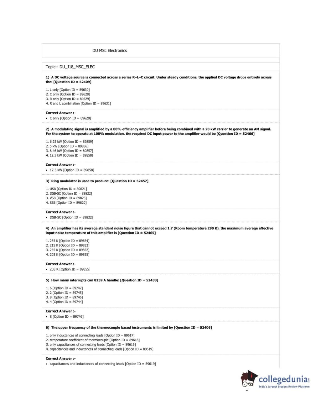 DUET 2018 M.Sc. Electronics Question paper with answer key pdf conducted on June 21, 2018 in Shift 2 is available for download. The exam was successfully organized by University of Delhi. The question paper comprised a total of 100 questions.