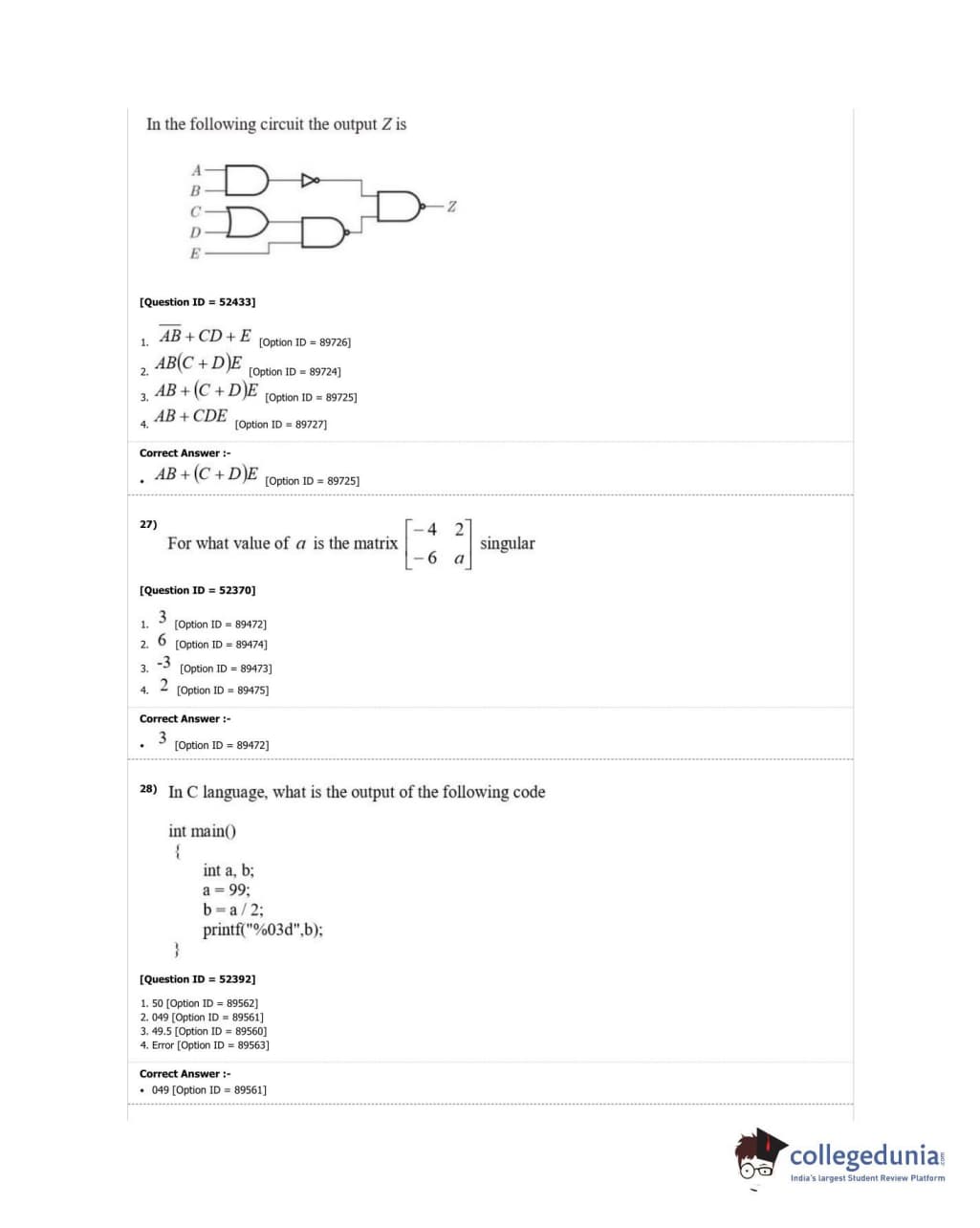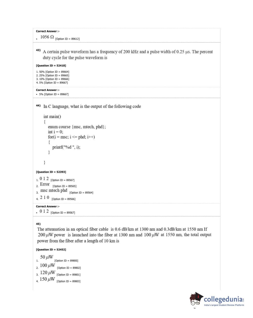 | DUET Subject | Question Paper with Answer Key PDF |