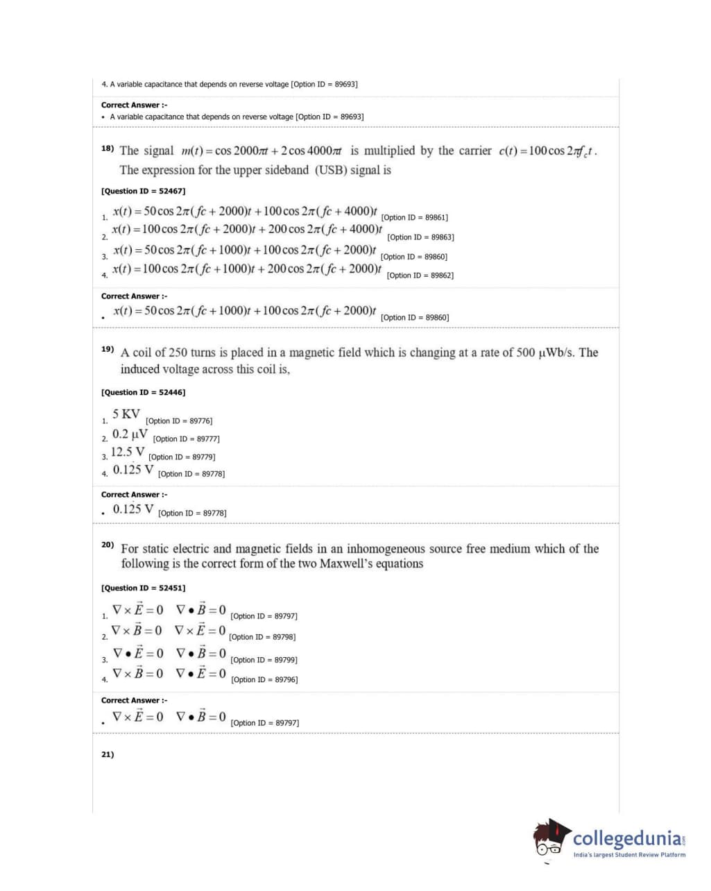 DUET 2018 M.Sc. Electronics Question Paper with Answer Key PDF Shift 2