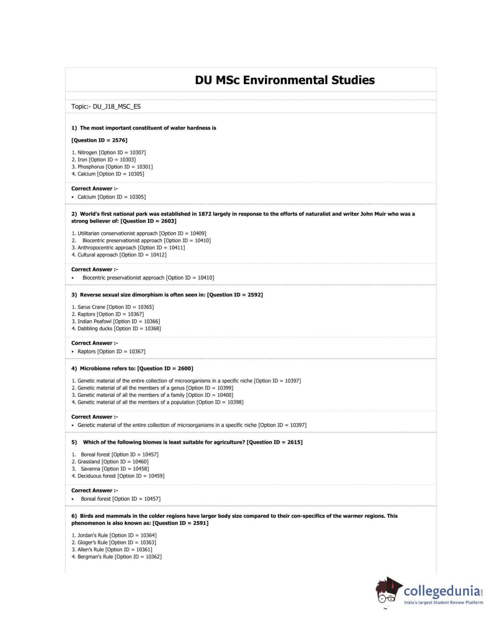 DUET 2018 M.Sc. Environmental Studies Question paper with answer key pdf conducted on June 19, 2018 in Shift 2 is available for download. The exam was successfully organized by University of Delhi. The question paper comprised a total of 50 questions.