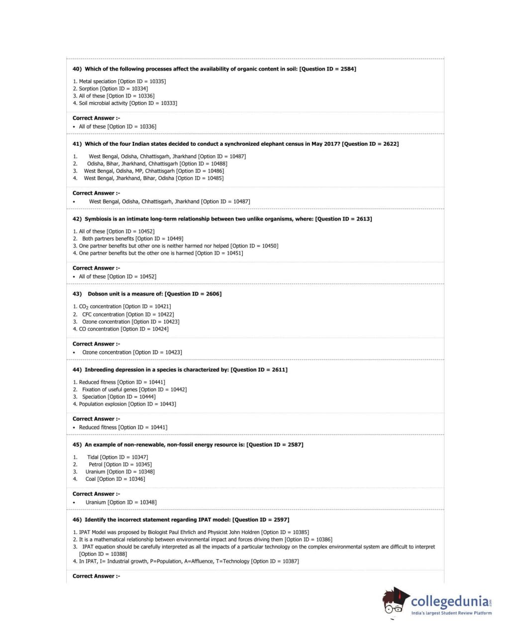 DUET 2018 M.Sc. Environmental Studies Question Paper with Answer Key PDF Shift 2