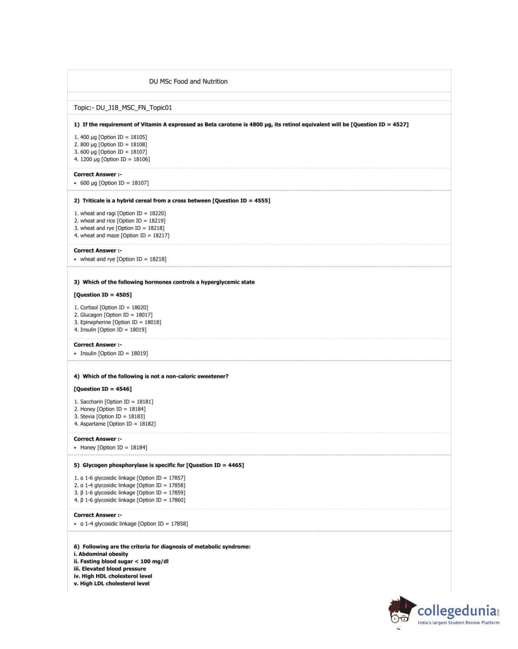 DUET 2018 M.Sc. Food & Nutrition Question paper with answer key pdf conducted on June 21, 2018 in Shift 1 is available for download. The exam was successfully organized by University of Delhi. The question paper comprised a total of 100 questions.