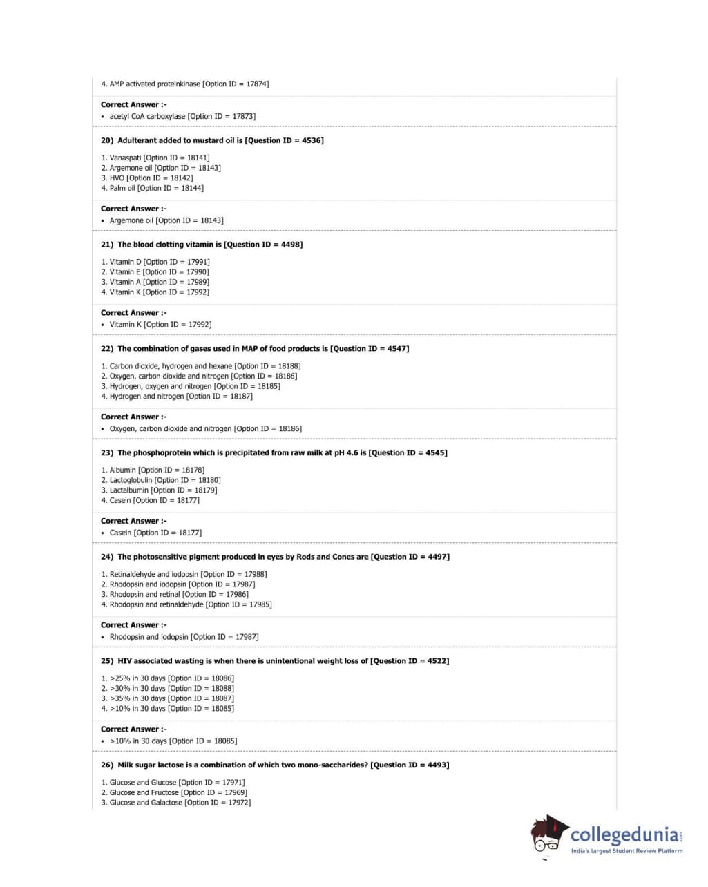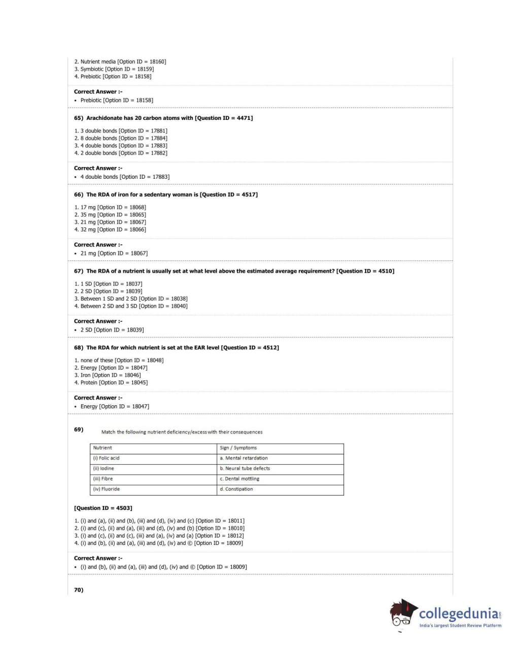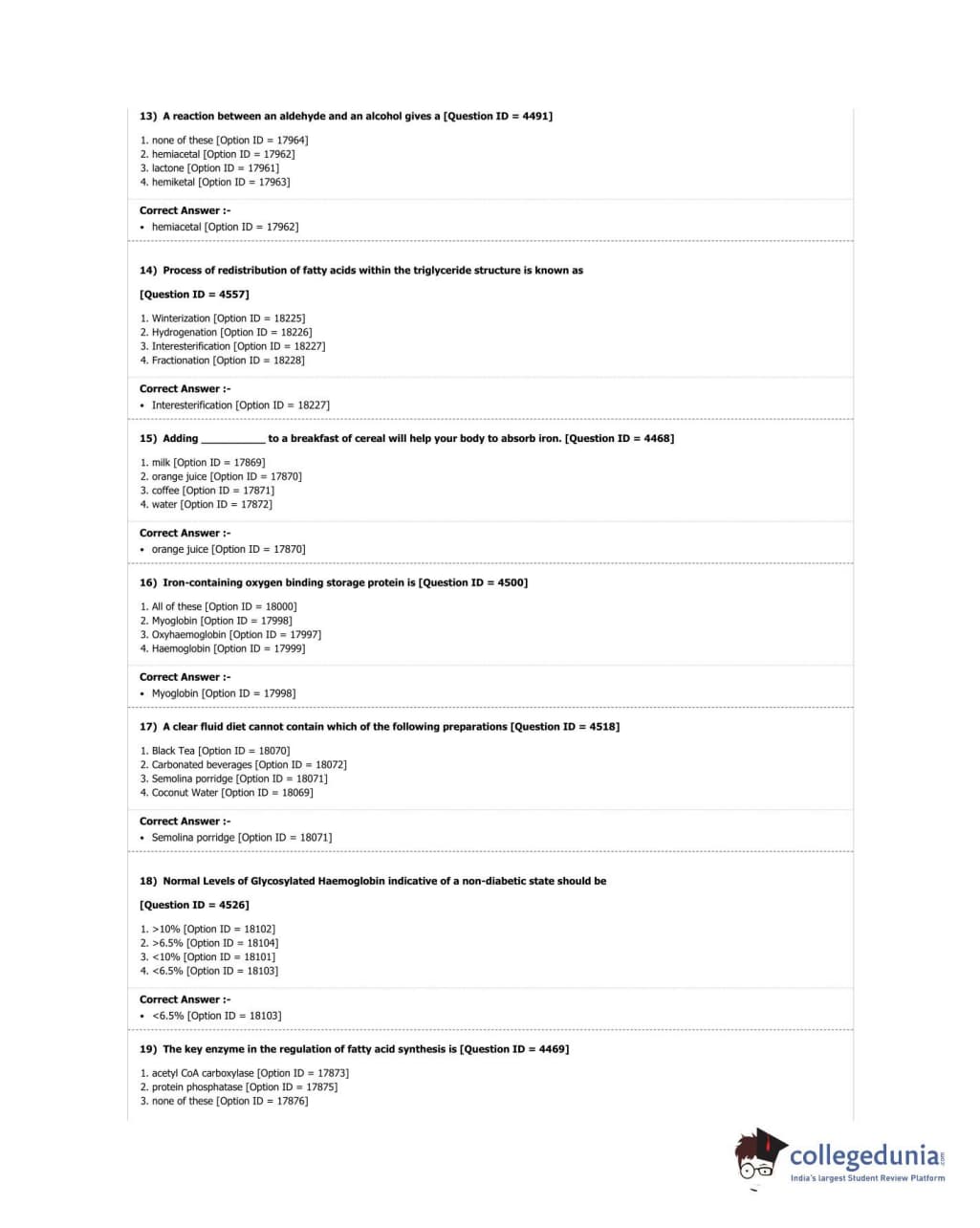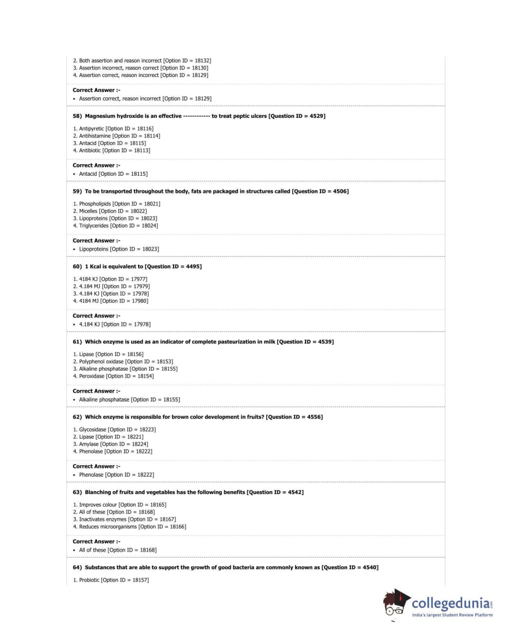 DUET 2018 M.Sc. Food & Nutrition Question Paper with Answer Key PDF Shift 1