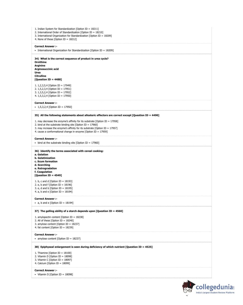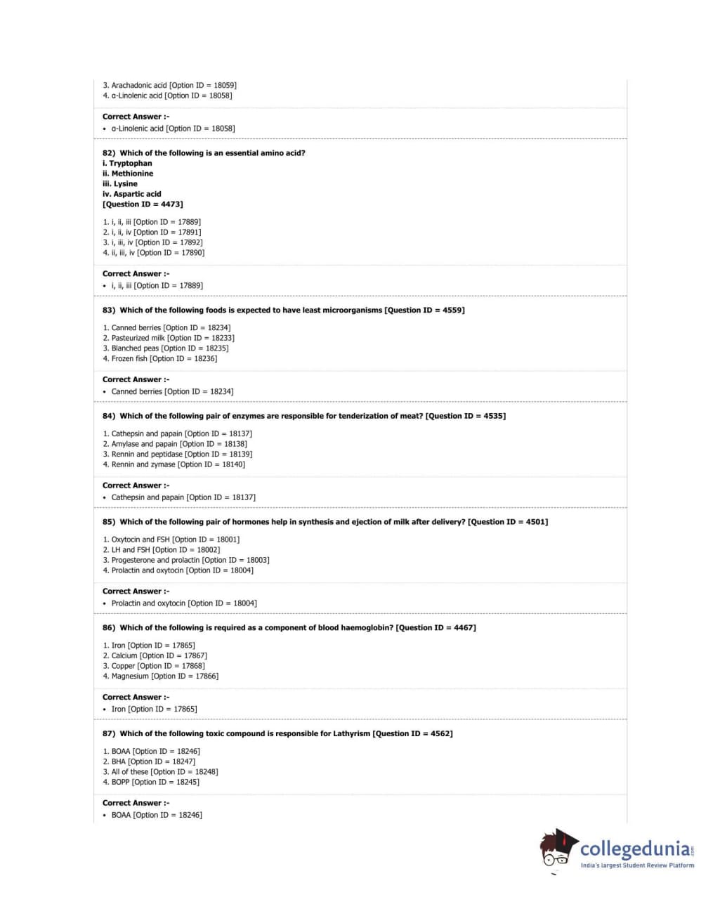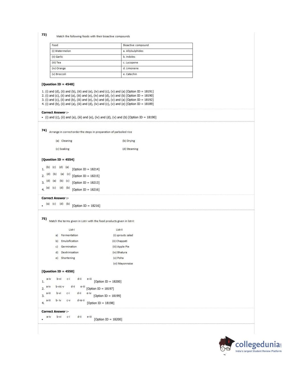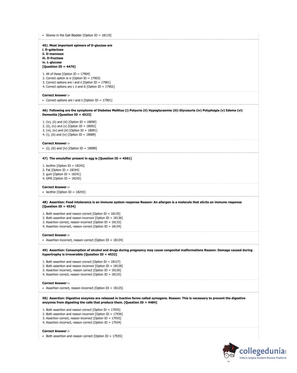 DUET 2018 M.Sc. Food & Nutrition Question Paper with Answer Key PDF Shift 1