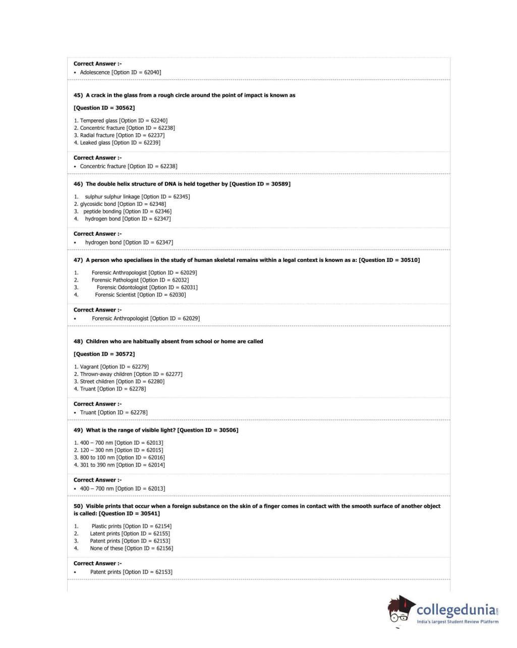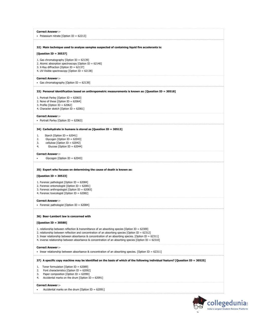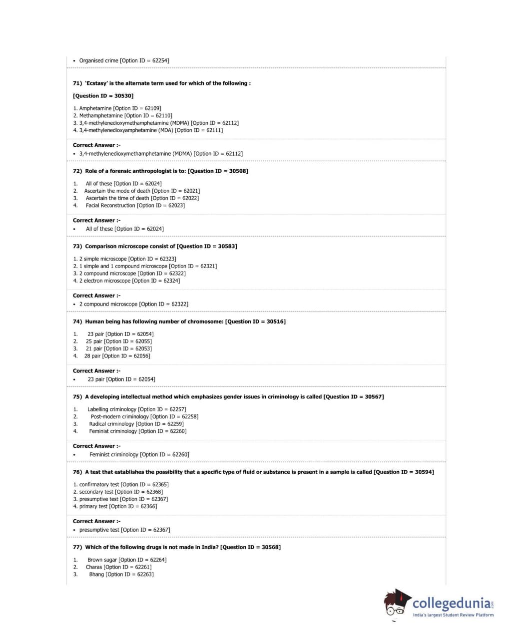 DUET 2018 M.Sc. Forensic Science Question Paper with Answer Key PDF Shift 2
