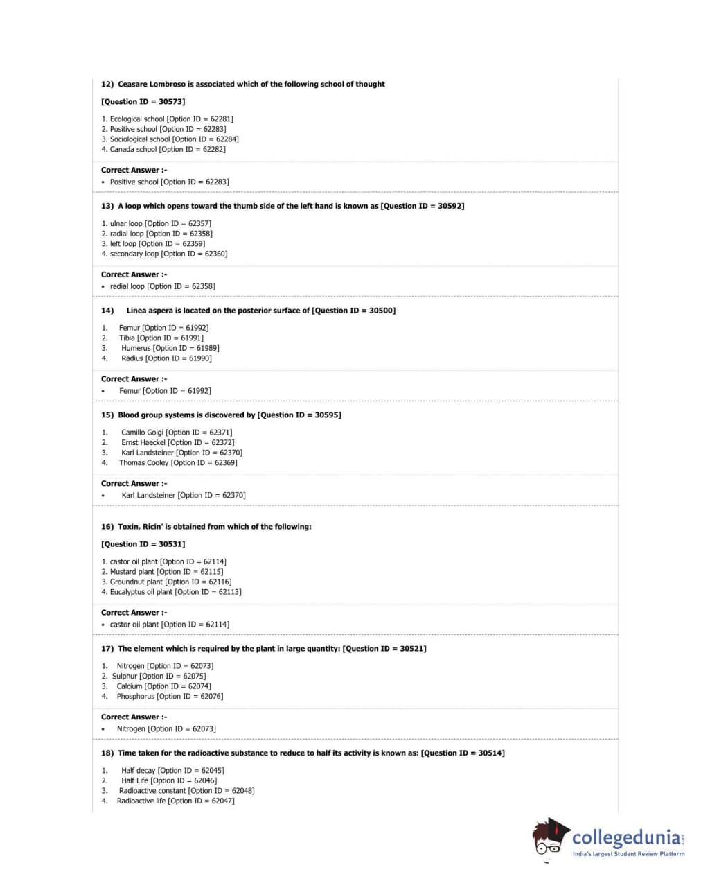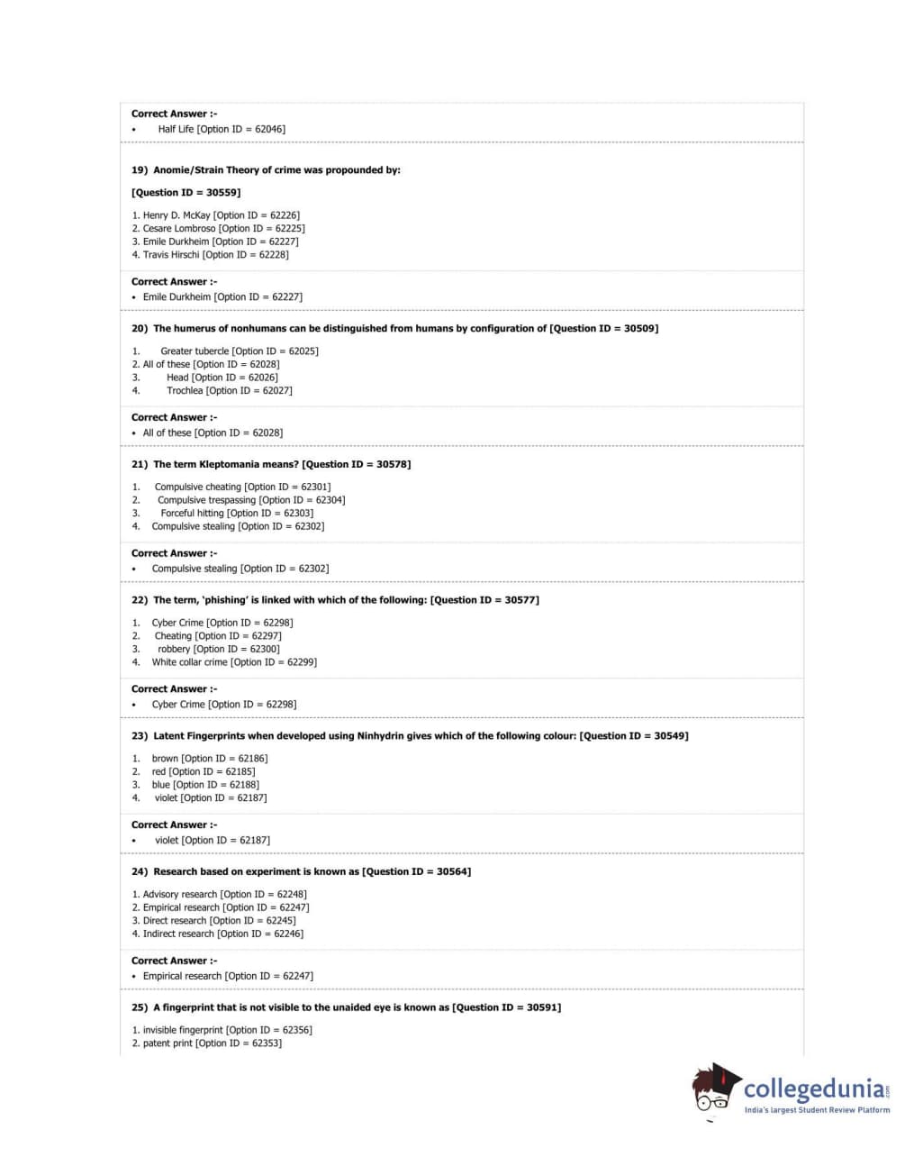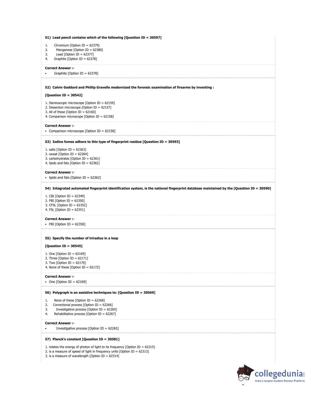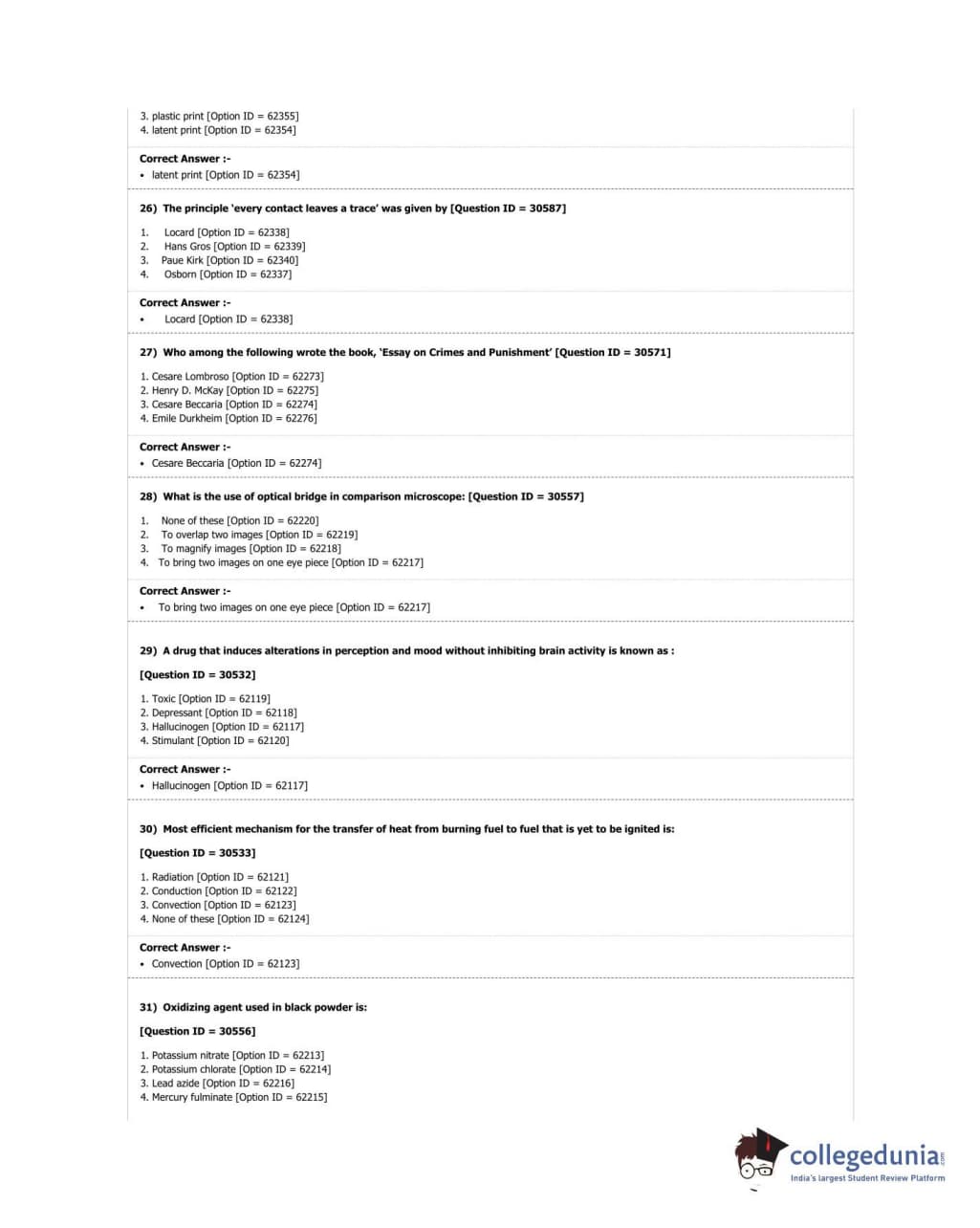 DUET 2018 M.Sc. Forensic Science Question Paper with Answer Key PDF Shift 2