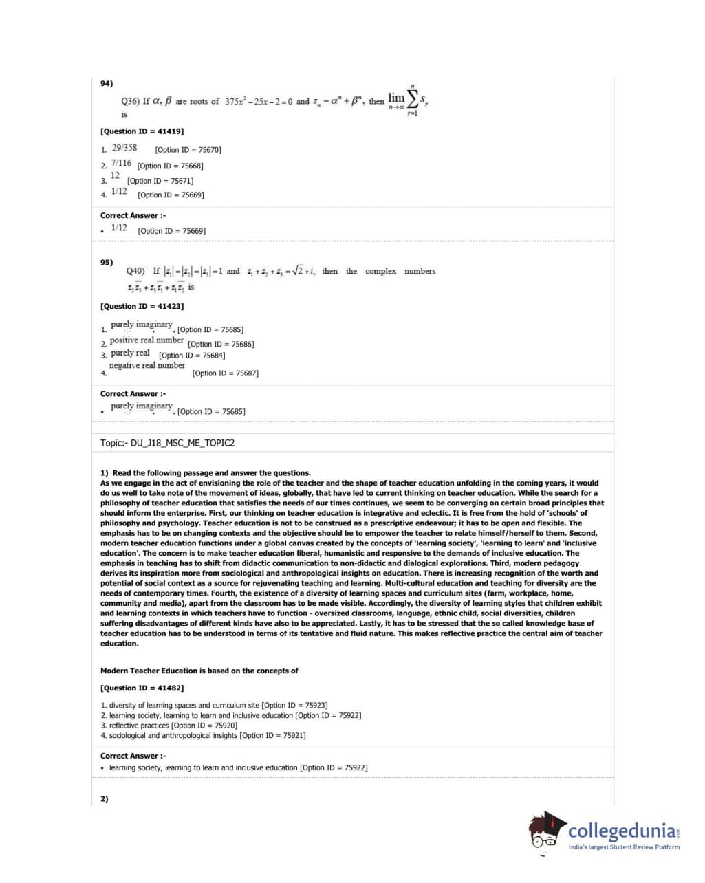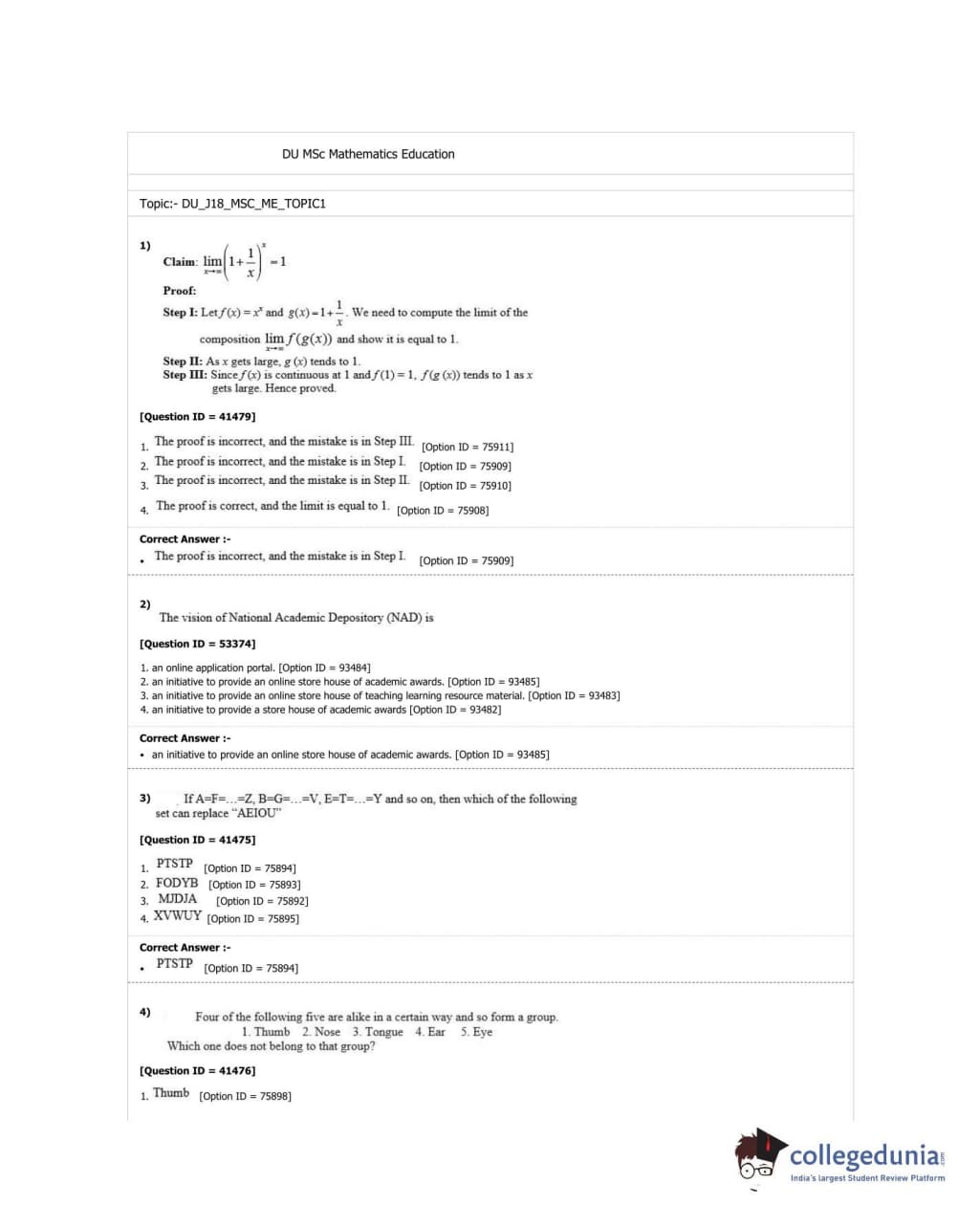 DUET 2018 M.Sc. Mathematics Education (Cluster Innovation Centre) Question paper with answer key pdf conducted on June 20, 2018 in Shift 2 is available for download. The exam was successfully organized by University of Delhi. The question paper comprised a total of 100 questions.