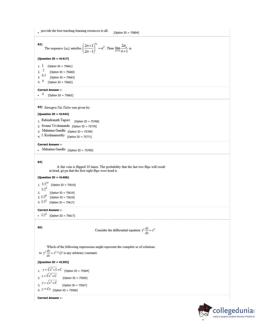 DUET 2018 M.Sc. Mathematics Education Question Paper with Answer Key PDF Shift 2