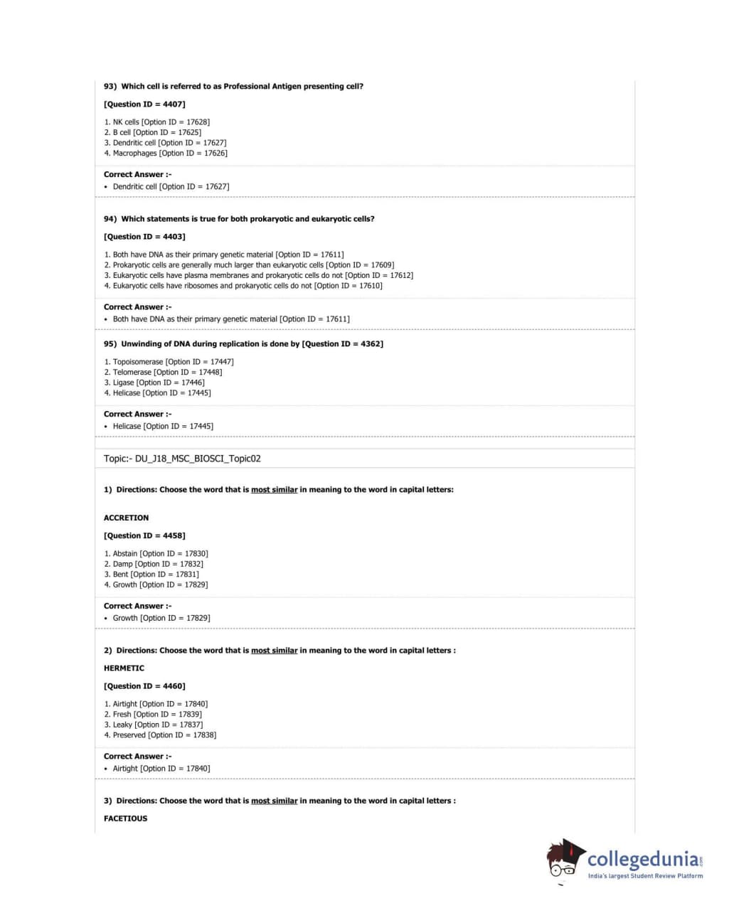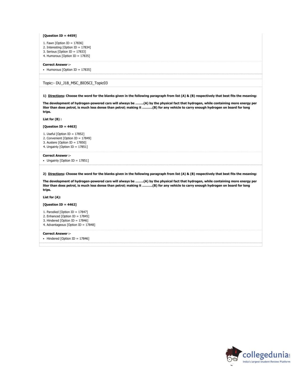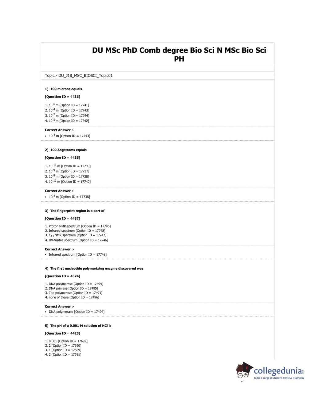 DUET 2018 M.Sc./Ph.D. combined degree in Biomedical Sciences & M.Sc. Degree in Biomedical Sciences (Dr. B.R. A Question paper with answer key pdf conducted on June 19, 2018 in Shift 1 is available for download. The exam was successfully organized by University of Delhi. The question paper comprised a total of 100 questions.