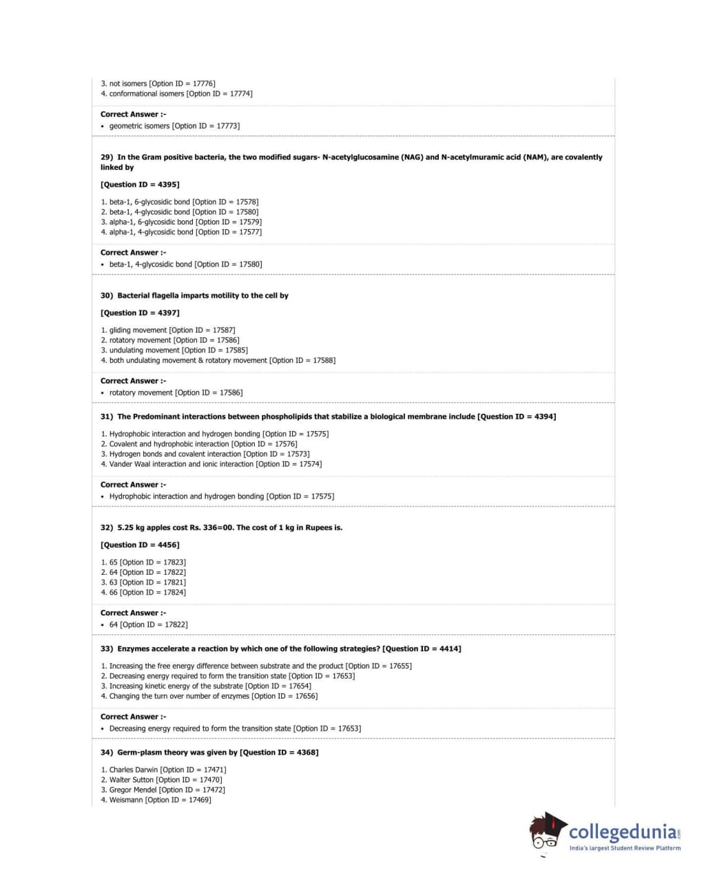DUET 2018 M.Sc./Ph.D. combined degree in Biomedical Sciences Question Paper with Answer Key PDF Shift 1