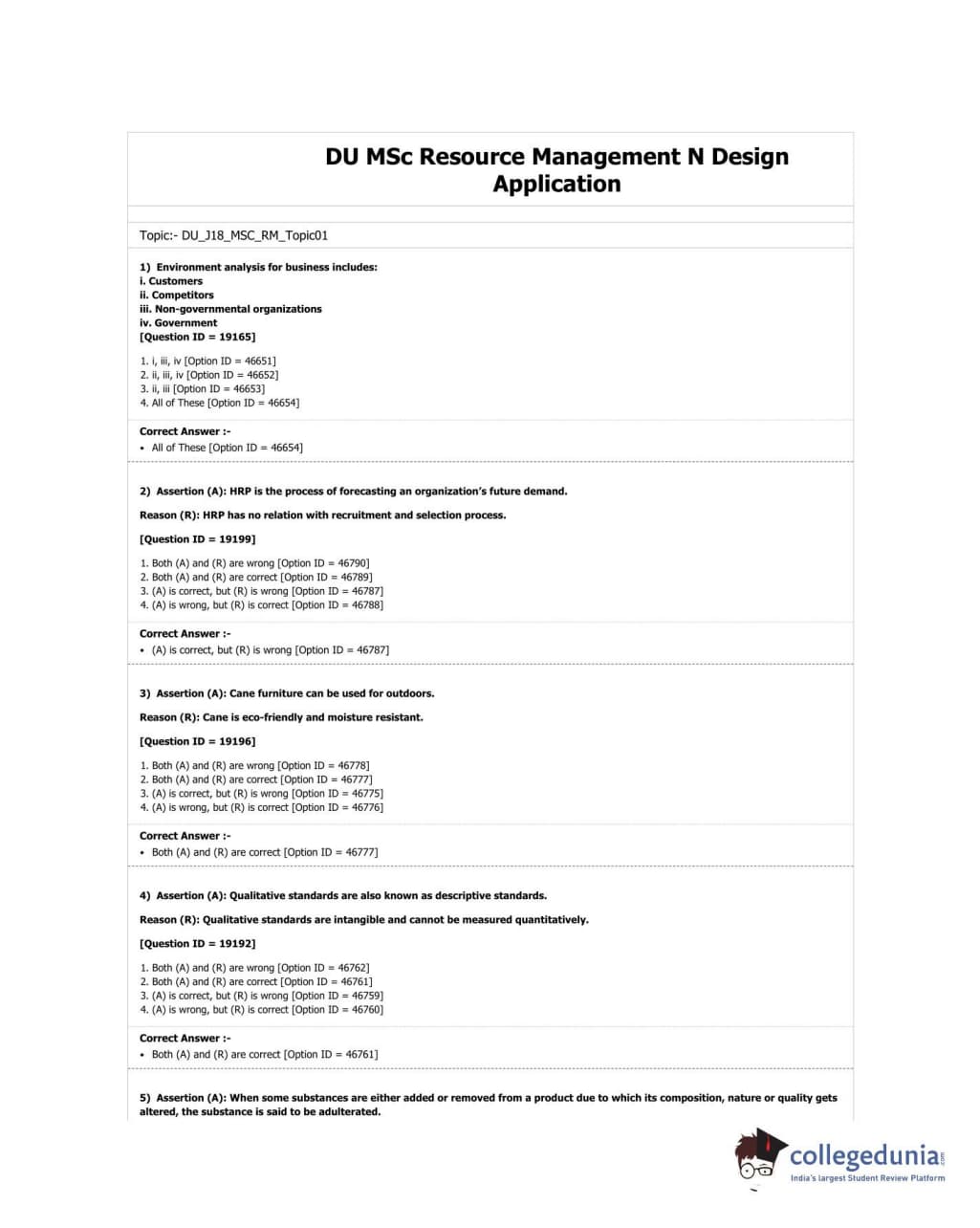 DUET 2018 M.Sc. Resource Management & Design Application (Department of Home Science) Question paper with answer key pdf conducted on June 19, 2018 in Shift 2 is available for download. The exam was successfully organized by University of Delhi. The question paper comprised a total of 100 questions.