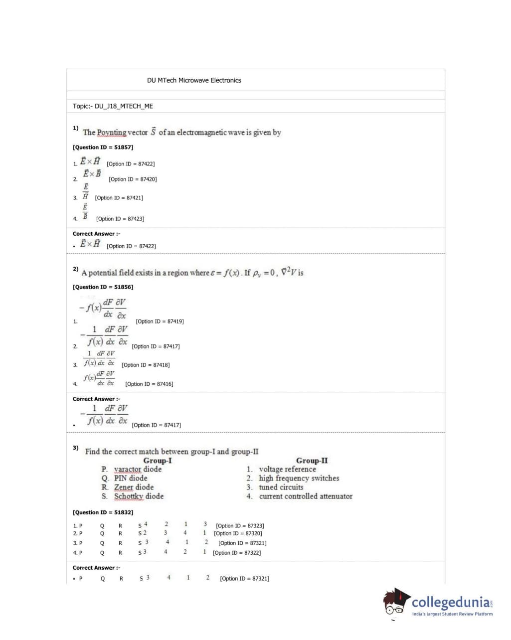DUET 2018 M.Tech. Microwave Electronics Question paper with answer key pdf conducted on June 20, 2018 in Shift 3 is available for download. The exam was successfully organized by University of Delhi. The question paper comprised a total of 100 questions.